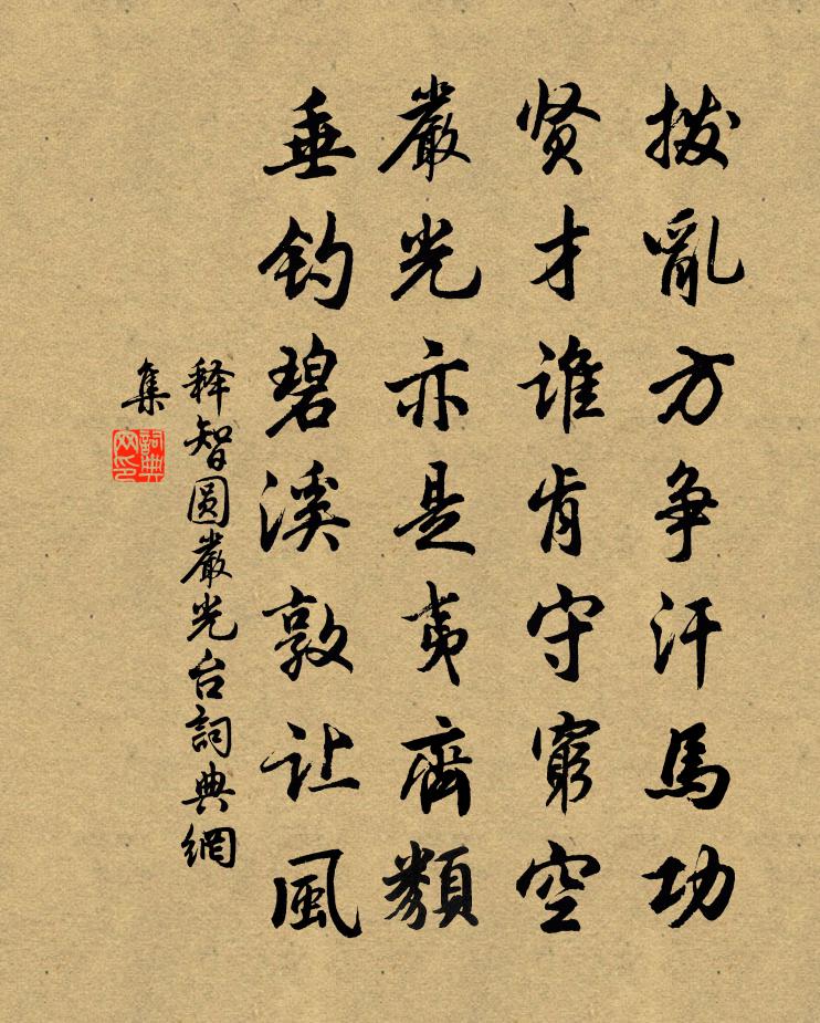 詩詞名句歷史字典書法欣賞書法字典國語詞典說文解字康熙字典古漢語字典標 題 作 者 詩 句 嚴光台作者:釋智圓 朝代:宋代嚴光台原文撥亂方爭汗馬功,賢才誰肯守窮空。嚴光亦是夷齊類,垂釣碧溪敦讓風。詩詞問答問:嚴光台的作者是誰?答:釋智圓問:嚴光台寫於哪個朝代?答:宋代釋智圓嚴光台書法欣賞嚴光台書法作品詩詞推薦至性靈迂僻學術空虛幸逢好古之君獲在藏書之李至〔宋代〕蓬閣多餘暇,優遊味可知。宴酣階擁雪,坐久硯生澌。遇話聞新事,因閒檢舊詩。已成疏懶性,親友莫相嗤。浪淘沙周密〔宋代〕柳色淡如秋。蝶懶鶯羞。十分春事九分休。開盡楝花寒尚在,怕上簾鉤。京洛少年游。誰念淹留。東風吹雨過西樓題龍隱岩方信孺〔宋代〕春波飽微淥,斗柄函空明。方舟貫岩腹,鵝鸛相酬鳴。仰窺穹窿頂,宛轉百怪呈。僅餘鱗甲碎,不見頭角獰。下闖三月三日,自京到華陰,於水亭獨酌,寄裴六、薛八獨孤及〔唐代〕祗役匪遑息,經時客三秦。還家問節候,知到上巳辰。山縣何所有,高城閉青春。和風不吾欺,桃杏滿四鄰。舊友用薛郎所寄示詩三韻晁公溯〔宋代〕阿傳議酒食,察貳更廉空。開瓮鴨頭綠,磨刀魚眼紅。報功他日在,食淡暫時同。富貴行自致,聖時無道窮。南湖送徐二十七西上劉長卿〔唐代〕家在橫塘曲,那能萬里違。門臨秋水掩,帆帶夕陽飛。傲俗宜紗帽,乾時倚布衣。獨將湖上月,相逐去還歸。雲穴山居閻彥昭〔宋代〕著我閒身短短籬,青山一角壓書帷。黏碑摹得古人帖,塗壁續成前日詩。有約看花傾竹葉,欲談揮麈折松枝。偶然罷縣解歸途中聞子規三首曾豐〔宋代〕輕舍柴桑悔欲追,雖無所激亦謀歸。子規大似相知淺,猶慮淵明未見機。醉吟二首楊萬里〔宋代〕三春草草眼中過,未抵三冬樂事多。燭焰雙了紅再合,酒花半蕾碧千波。孤寒霜月儂相似,跌宕雪風誰奈何。道是許秀才至辱李蘄州絕句問斷酒之情因寄杜牧〔唐代〕有客南來話所思,故人遙枉醉中詩。暫因微疾須防酒,不是歡情減舊時。平政橋華岳〔宋代〕建水合流三百里,直下富沙如捻指。溪東披拽纜過西,千丈春風怒濤起。香輪不解碾清江,造舟貫索成河梁。年年春日小園即事十首方回〔宋代〕閒園草劃欠樓台,一紀干戈夢裡回。盡失牡丹三百本,新移初見一枚開。吾雛白居易〔唐代〕吾雛字阿羅,阿羅才七齡。嗟吾不才子,憐汝無弟兄。撫養雖驕呆,性識頗聰明。學母畫眉樣,效吾詠詩聲。我齒讀通鑑雜興孫應時〔宋代〕莫怪新亭泣楚囚,王公原不辨中州。石頭門外千年恨,他日相思一涕流。次韻孔武仲到官後見寄蘇轍〔宋代〕舉楫同千里,繫舟時一言。共嗟蓬作屋,願就席為門。行役身先困,征商思益昏。僅同登壟斷,何止服車轅。游山陸游〔宋代〕南出平橋十里余,湖山處處可成圖。水邊更覺梅花瘦,雲外誰憐雁影孤。時喚行僧同煮茗,亦逢樵叟問迷途。破裘伏承君儀使郎中寵示佳付謹次嚴韻張徽〔宋代〕飛鳥影穿紅燭去,寒蟾光落素琴來。三數寺通溪畔路,好從僧借流時杯。送客宿九日山釋善珍〔宋代〕石灶斷苔紋,摩挲吊隱君。風吹遊子袂,月照古人墳。舊事殘碑在,荒祠流水分。永懷山忽冥,紅葉墜秋雲。冰柱劉叉〔唐代〕師乾久不息,農為兵兮民重嗟。騷然縣宇,土崩水潰。畹中無熟谷,壟上無桑花。王春判序,百卉茁甲含葩。有客編集拙詩成一十五卷因題卷末戲贈元九李二十白居易〔唐代〕一篇長恨有風情,十首秦吟近正聲。每被老元偷格律,苦教短李伏歌行。世間富貴應無分,身後文章合有名。莫怪名句推薦仕宦當作執金吾,娶妻當得陰麗華。范曄《後漢書·本紀·皇后紀上》 信命者,亡壽夭;信理者,亡是非;信心者,亡逆順;信性者,亡安危。列子及其弟子《列子·力命》 分手脫相贈,平生一片心。孟浩然《送朱大入秦》 誠知此恨人人有,貧賤夫妻百事哀。元稹《遣悲懷三首·其二》 梅似雪,柳如絲。試聽別語慰相思。辛棄疾《鷓鴣天·送歐陽國瑞入吳中》 仁不異遠,義不辭難班固《漢書·紀·武帝紀》 寵柳嬌花寒食近,種種惱人天氣。李清照《念奴嬌·春情》 憐君片雲思,一棹去瀟湘。杜牧《送薛種游湖南》 一輪秋影轉金波,飛鏡又重磨。辛棄疾《太常引·建康中秋夜為呂叔潛賦》 白日放歌須縱酒,青春作伴好還鄉。杜甫《聞官軍收河南河北》