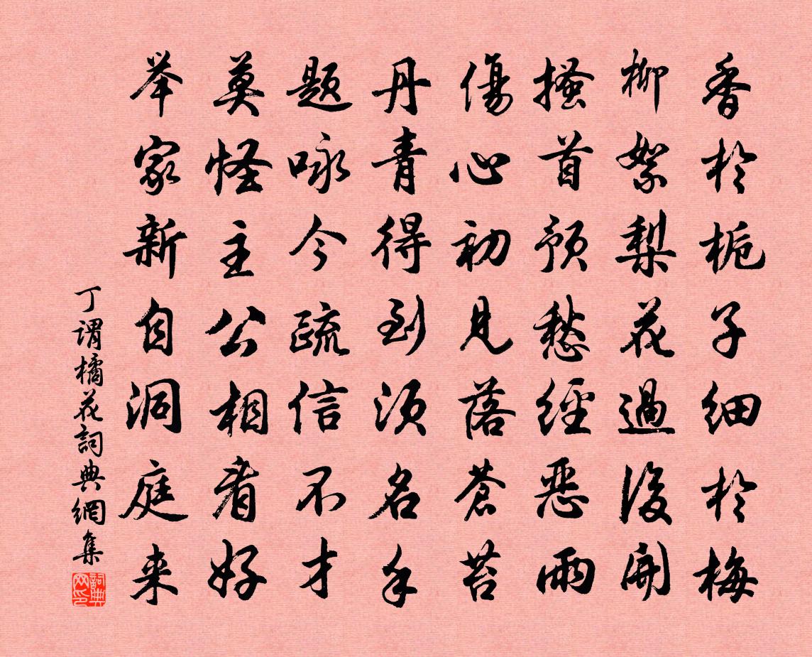 詩詞名句歷史字典書法欣賞書法字典國語詞典說文解字康熙字典古漢語字典標 題 作 者 詩 句 橘花作者:丁謂 朝代:宋代橘花原文香於梔子細於梅,柳絮梨花過後開。搔首預愁經惡雨,傷心初見落蒼苔。丹青得到須名手,題詠今疏信不才。莫怪主公相看好,舉家新自洞庭來。詩詞問答問:橘花的作者是誰?答:丁謂問:橘花寫於哪個朝代?答:宋代丁謂橘花書法欣賞橘花書法作品詩詞推薦聞子規石介〔宋代〕月上半峰峰樹碧,子規啼苦月無色。壯士耳邊都不聞,兒女眼中淚自滴。古人出處非關身,處兮事親出事君。服勤雜詠一百首戴良女劉克莊〔宋代〕竹笥並練帔,何妨托妾身。若逢夫婿問,向道乃翁貧。送邢子強還洛晁說之〔宋代〕行樂洛城為第一,蹔勞使節持還家。橋頭鋪遍中秋月,樓上吹殘九日花。誰聽高談擒虎豹,且容濁酒傲煙霞。從君送林大年寺丞宰蒙城先歸餘杭逋之侄孫梅堯臣〔宋代〕東方有奇士,隱德珠在淵。川壑為之媚,草樹為之妍。歿來十五載,獨見諸孫賢。煌煌出仕途,皎皎如淮蠙。今為山居雜詩九十首曹勛〔宋代〕平生不能棋,遇棋亦輙喜。從來號萬戶,知生不救死。多見國手說,得先乃妙理。更有末後著,此著知者幾。踏莎行黃機〔宋代〕雲樹參差,煙蕪平遠。沙頭只欠飛來雁。西風方做一分秋,淒涼已覺難消遣。窗底燈寒,帳前香暖。迴腸偏學車輪冬日同王茂翁聯句二首白玉蟾〔宋代〕風箭射壁縫,寒稜入被單。幽棲悄無夢,神思靜常安。紙帳懸冰簾,霜華結玉盤。窗外竹敲竹,壇前旛動旛。青燈焚裘佚名〔宋代〕今主臨前殿,懲奢爇異裘。忽看陽焰發,如睹吉光流。麗彩辭宸扆,余香在御樓。火隨餘燼滅,氣逐遠煙浮。素樸代陳思王京洛篇鮑照〔南北朝〕鳳樓十二重。四戶八綺窗。繡桷金蓮花。桂柱玉盤龍。珠簾無隔露。羅幌不勝風。寶帳三千所。為爾一朝容。揚芬塞上柳開〔宋代〕鳴骹直上一千尺,天靜無風聲更乾。碧眼胡兒三百騎,盡提金勒向雲看。慈恩寺有感 時杓直初逝,居敬方病。白居易〔唐代〕自問有何惆悵事,寺門臨入卻遲回。李家哭泣元家病,柿葉紅時獨自來。送鍾員外(賦風)王沂〔唐代〕靜追蘋末興,況復值蕭條。猛勢資新雁,寒聲伴暮潮。過山雲散亂,經樹葉飄颻。今日煙江上,征帆望望遙。寄蜀中薛濤校書王建〔唐代〕萬里橋邊女校書,枇杷花里閉門居。掃眉才子於今少,管領春風總不如。自桃川至辰州絕句四十有二趙蕃〔宋代〕反照入江雷殷然,直疑飛雨墮談間。不知吹落何方去,突兀猶余雲涌山。和秦壽之春晚偶成八絕王之道〔宋代〕花外霏微雨弄晴,亂紅狼藉過清明。傷春正苦無聊甚,接接欣聞噪鵲聲。句繆鑒〔宋代〕既能事漢識真主,何必下齊求假王。示惠靈為僧釋智愚〔宋代〕惠性何如見性通,要教靈驗顯吾宗。剩地揚下墜腰石,笑捧衣盂繼祖風。出常山界使回有寄杜荀鶴〔唐代〕自小即南北,未如今日離。封疆初盡處,人使卻回時。開口有所忌,此心無以為。行行復垂淚,不稱是男兒。漁樵問答歌唐寅〔明代〕漁翁舟泊東海邊,樵夫家住西山里。兩人活計山水中,東西路隔萬千里。忽然一日來相逢,滿頭短髮皆蓬鬆。盤桓再和前韻答賦五首魏了翁〔宋代〕群蜻海上迎機舞,雙雁天邊避弋飛。犖犖此心天與吸,滔滔斯世我誰歸。名句推薦桃花塢裏桃花庵,桃花庵裏桃花仙。唐寅《桃花庵歌》 酒伴來相命,開尊共解酲。孟浩然《春中喜王九相尋 / 晚春》 持斧伐遠揚,荷鋤覘泉脈。王維《春中田園作》 數人世相逢,百年歡笑,能得幾回又。何夢桂《摸魚兒·記年時人人何處》 先行其言而後從之。孔子弟子《論語·為政篇》 思君令人老,歲月忽已晚。佚名《行行重行行》 而今燈漫掛。不是暗塵明月,那時元夜。蔣捷《女冠子·元夕》 我愛山中春,蒼崖鳥一聲。元鵬《山中四詠》 三顧頻煩天下計,兩朝開濟老臣心。杜甫《蜀相》 違山十里,蟪蛄之聲,猶在於佚名《孔子家語·子路初見》