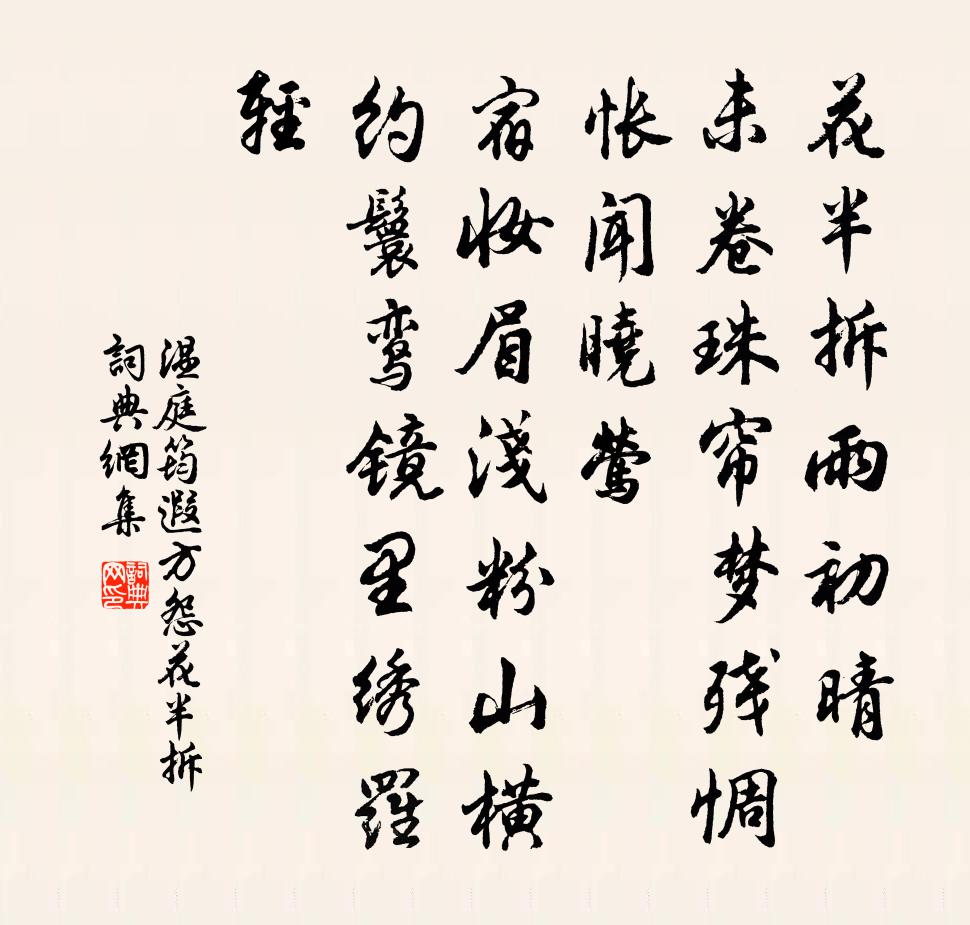 溫庭筠詞抒寫男女情事,多是以女性口吻代言女子的相思戀情,以女性形象的華美艷麗及相思情意為其審美特徵,精緻地描摹女性艷麗華貴的容貌、服飾、起居、心態等。此詞即為這類作品。其具體創作時間未得確證。