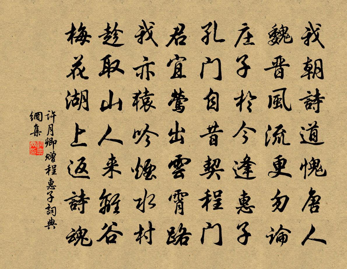 詩詞名句歷史字典書法欣賞書法字典國語詞典說文解字康熙字典古漢語字典標 題 作 者 詩 句 贈程惠子作者:許月卿 朝代:宋代贈程惠子原文我朝詩道愧唐人,魏晉風流更勿論。莊子於今逢惠子,孔門自昔契程門。君宜鶯出雲霄路,我亦猿吟煙水村。趁取山人來離谷,梅花湖上返詩魂。詩詞問答問:贈程惠子的作者是誰?答:許月卿問:贈程惠子寫於哪個朝代?答:宋代許月卿贈程惠子書法欣賞贈程惠子書法作品詩詞推薦和李雁湖晚春即事八首吳泳〔宋代〕長鯨鬚響海波翻,澤雉何由肯畜樊。步障連空鞋一屋,不如蕭散半山園。陸贄徐鈞〔宋代〕鋤奸抗疏反招疑,一斥忠州勢亦危。只集名方無著述,不為良相且良醫。勉劉申歐陽修〔宋代〕有司精考核,中第為公卿。本基在積習,優學登榮名。吾子齒尚少,加勤無自輕。努力圖樹立,庶幾終有成。春日有感三首危稹〔宋代〕情知老卻流鶯了,爭奈狂如蛺蝶可。尚有紫薇紅藥在,佳人休唱怨春歌。愁劇忽失笑蒲壽宬〔宋代〕愁劇忽失笑,不覺心夷然。量珠成斗笑不賣,鎔金為海愁不煎。蜜蜂與蓼蟲,生死甘苦緣。今也不為樂,人有幾百歸舟三絕王柏〔宋代〕幸脫塵氛入帝城,又攜幽恨滿歸程。雁行不整關心事,深媿漢人千慮輕。感遇二十五首張耒〔宋代〕繅絲未緣魚,有絲生網心。弦木以為弧,鳥獸不安林。大鈞本無事,物類亦愔愔。誰令一機駭,萬變起相尋。焚木秋日徙倚門外久之陸游〔宋代〕舍前煙水似瀟湘,白首歸來愛故鄉。五畝山園郁桑柘,數椽茅屋映菰蔣。翻翻小繖船歸郭,渺渺長歌月滿塘。卻掩趙承遠雲扃鄒登龍〔宋代〕聞道幽居好,棲雲結數椽。庭深關竹雨,衣潤染茶煙。嵐氣生朝壁,湍聲入夜弦。半生飛動意,未得痼林泉。白頭翁鳥張鎡〔宋代〕檜叢叢囀愜新晴,巧好春林百鳥聲。羽輩誤教推皓首,細聽多是少年情。絕句漫興九首·其一杜甫〔唐代〕隔戶楊柳弱裊裊,恰似十五女兒腰。謂誰朝來不作意,狂風挽斷最長條。安公子晁端禮〔宋代〕帝里重陽好。又對短髮來吹帽。滿目風光還似舊,奈樽前人老。暗憶當年,伴侶同傾倒。夸俊游、爭買千金笑。到游葛嶺瑪瑙寺瞻孤山尊者像張煒〔宋代〕柳風吹蘭衿,蘚暈識芒履。尋幽古招提,偶識尊者墓。斷碣眠蒼雲,慈容修香霧。孤山豈無詩,未若壁間句。六言山居釋紹曇〔宋代〕兩耳爐焚柏子,一拳不養菖蒲。客至莫談塵事,略寒溫外跏趺。游峨眉十一首馮時行〔宋代〕緬想如天遠,由來路不賒。快穿靈運屐,徑造普賢家。仰睇雲霄遠,回觀錦繡華。老難持淨戒,細細酌流霞。游越釋文珦〔宋代〕吳客來游古越都,緬懷前事更踟躕。高峰篆刻空秦望,遺廟丹青尚禹謨。佛屋幾遷王令宅,官租半入賀家湖。日斜代書詩一百韻寄微之白居易〔唐代〕憶在貞元歲,初登典校司。身名同日授,心事一言知。[貞元中,與微之同登科第,俱授秘書省校書郎,始相識也詠梅雜詩張道洽〔宋代〕萬里閒關庾嶺回,嶺頭曾見此花來。遠遊何似在家好,屋角玲瓏一樹開。頌古四十四首釋師範〔宋代〕紅輪決定沉西去,未審魂靈往那方。哭慟一聲無處避,櫂頭親見本爺娘。已亥雜詩 240龔自珍〔清代〕濯罷鮫綃鏡檻涼,無端重試午時妝。新詩急記銷魂事,分與胭脂一掬湯。名句推薦福輕乎羽,莫之知載;禍重乎地,莫之知避。莊子《莊子·內篇·人間世》 無由持一碗,寄與愛茶人。白居易《山泉煎茶有懷》 棘枝風哭酸,桐葉霜顏高。孟郊《秋懷十五首》 浮生只合尊前老。雪滿長安道。舒亶《虞美人·寄公度》 雲開遠見漢陽城,猶是孤帆一日程。盧綸《晚次鄂州》 槐柳野橋邊,行塵暗馬前。齊己《送人游塞》 淇水昨送淚沾巾,紅妝宿昔已應新蕭子顯《春別詩四首·其三》 鴻雁不堪愁里聽,雲山況是客中過。李頎《送魏萬之京》 因其材以取之,審其能以任之,用其所長,掩其所短吳兢《貞觀政要·卷三·論擇官》 舟覆乃見善游,馬奔乃見良御。劉安及其門客《淮南子·說林訓》