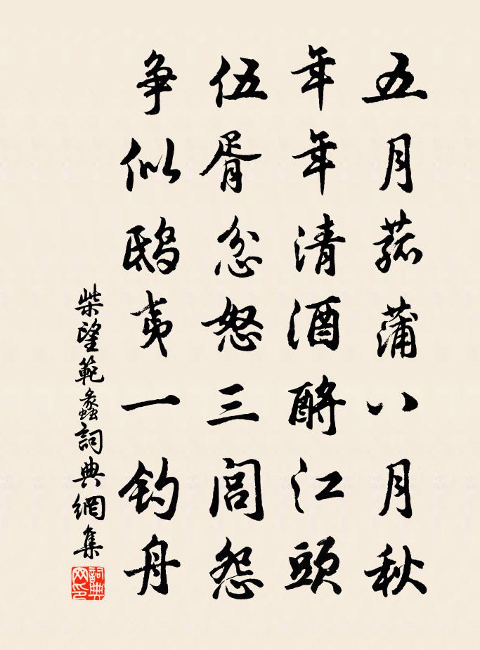 詩詞名句歷史字典書法欣賞書法字典國語詞典說文解字康熙字典古漢語字典標 題 作 者 詩 句 范蠡作者:柴望 朝代:宋代范蠡原文五月菰蒲八月秋,年年清酒酹江頭。伍胥忿怒三閭怨,爭似鴟夷一釣舟。詩詞問答問:范蠡的作者是誰?答:柴望問:范蠡寫於哪個朝代?答:宋代柴望范蠡書法欣賞范蠡書法作品詩詞推薦會稽秋日觀山陳鑒之〔宋代〕荒勝音流不,蠹葉風颼颼。前山與幽人,亭亭共清秋。遠近日明晦,隱見雲去留。木末一叟歸,犬鳴茅舍幽。憶昔句陳傅良〔宋代〕密葉自成金罽飾,亂英誰輯紫茸香。巴南郡齋雨中偶看長曆是日小雪有懷昔年朝謁因成八韻羊士諤〔唐代〕夷落朝雲候,王正小雪辰。緬懷朝紫陌,曾是灑朱輪。氣耿簪裾肅,風嚴刻漏頻。暗飛金馬仗,寒舞玉京塵。豸角挽梁元功諫議曾幾〔宋代〕豈弟更三郡,題評冠一鄉。繩愆御史疏,補闕諫臣章。直嘆牙弦絕,明嗟魏鑒亡。皇情應震悼,追賁盛龍光。香菌出括蒼山谷中其味香滑絕妙昔嘗欲獻之壽姜特立〔宋代〕薰蒸應地德,香滑異園蔬。天花非爾倫,金芝恐其餘。雅宜齋庖薦,不受羊羹污。將欲獻天子,誰為達區區。臨邛試士程公許〔宋代〕沉沉鎖棘春風晚,漠漠重簾書景移。白佇曉寒疑夢事,袖間猶記默淋漓。嘉禾百詠梧桐涇張堯同〔宋代〕落落梧桐樹,何年作鳳鳴。試看千古翠,流盡一溪聲。別外甥楊克一二首張耒〔宋代〕澤國授衣早,今辰絺紵單。孤城遠目斷,秋水去帆寒。相見不再少,此生何日閒。殷勤換美酒,要對蟹螫盤。水調歌頭利登〔宋代〕日月換飛澗,風雨老孤松。千岩萬壑秋重,白氣接長空。一笑掀髯徐起,蒼佩腰間相照,猶自涌晴虹。桑海幾番覆別諸親友二首錢時〔宋代〕良會難逢萬事非,彌旬繾卷思清微。家山一夜梅花發,月霽風光夜欲歸。書元可扇方岳〔宋代〕南薰殿上薰風老,雨便飛來占取涼。書帶香眠愁杳渺,雲侵清簟竹方床。過楊樂道宅西桃花盛開蔡襄〔宋代〕城隈繞舍似山家,舍下新桃已放花。無限幽香風正好,不勝狂艷日初斜。自憐馬上空愁望,誰向樽前與醉夸。京國鵲踏枝·幾日行云何處去馮延巳〔唐代〕幾日行云何處去?忘卻歸來,不道春將暮。百草千花寒食路,香車系在誰家樹?淚眼倚樓頻獨語。雙燕來時,陌上贈南豐宰趙虛齋二章利登〔宋代〕有口寧食薇,有身寧衣褐。居然觀八荒,獨立招皓月。清風亦知人,蕭蕭動幽樾戲書旅況方回〔宋代〕垢癢頻搔虱欠烘,泥行草宿嘆匆匆。欲紉衣苦無針線,每煮羹難得菜蔥。險惡固宜防賊盜,愚頑莫可恕奴僮。閒人聖號雅二篇趙湘〔唐代〕皇宅斯道,汗汗浩浩。賢俊茀茀,鐘鼓考考。爰煦爾赤,爰妥其老。樂只萬國,寧德攸寶。雨中花/夜行船晁端禮〔宋代〕倦貳文昌,樂請左符,雙旌去指東藩。有腰金新寵,晝錦榮觀。獨步文章,家傳素業,世寶青氈。動歡聲和氣,里留守府酬皇甫曙侍御彈琴之什竇庠〔唐代〕青瑣晝無塵,碧梧陰似水。高張朱弦琴,靜舉白玉指。洞簫又奏繁,寒磬一聲起。鶴警風露中,泉飛雪雲里。泠泠念奴嬌(題馬嵬圖)程武〔宋代〕蜀江城遠,想連雲危棧,接天窮處。惆悵煙塵回首地,雙闕觚稜猶故。龍扈星聯,羽林風肅,未放鸞駣去。不堪掩解蹀躞(商調)周邦彥〔宋代〕候館丹楓吹盡,面旋隨風舞。夜寒霜月,飛來伴孤旅。還是獨擁秋衾,夢餘酒困都醒,滿懷離苦。甚情緒。深念凌名句推薦不知香積寺,數里入雲峰王維《過香積寺》 前度綠陰載酒,枝頭色比舞裙同。王沂孫《慶清朝·榴花》 城中桃李愁風雨,春在溪頭薺菜花。辛棄疾《鷓鴣天·陌上柔桑破嫩芽》 波漂菰米沉雲黑,露冷蓮房墜粉紅杜甫《秋興八首》 五月天山雪,無花只有寒。李白《塞下曲六首·其一》 明君制民之產,必是仰足以事父母,俯足以畜妻子;樂歲終身飽,凶年免於死亡。孟子《孟子·梁惠王章句上·第八節》 為其所難者,必得其所欲焉;未聞為其所欲,而免其所惡者也。墨子《墨子·01章 親士》 興亡千古繁華夢,詩眼倦天涯。張可久《人月圓·山中書事》 聲樂之入人也深,其化人也速。荀子《荀子·樂論》 疏是枝條艷是花,春妝兒女競奢華。曹雪芹《詠紅梅花得“花”字》
