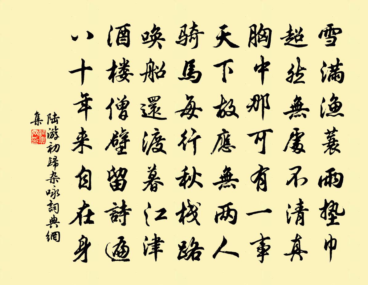 雪滿漁蓑雨墊巾,超然無處不清真。胸中那可有一事,天下故應無兩人。