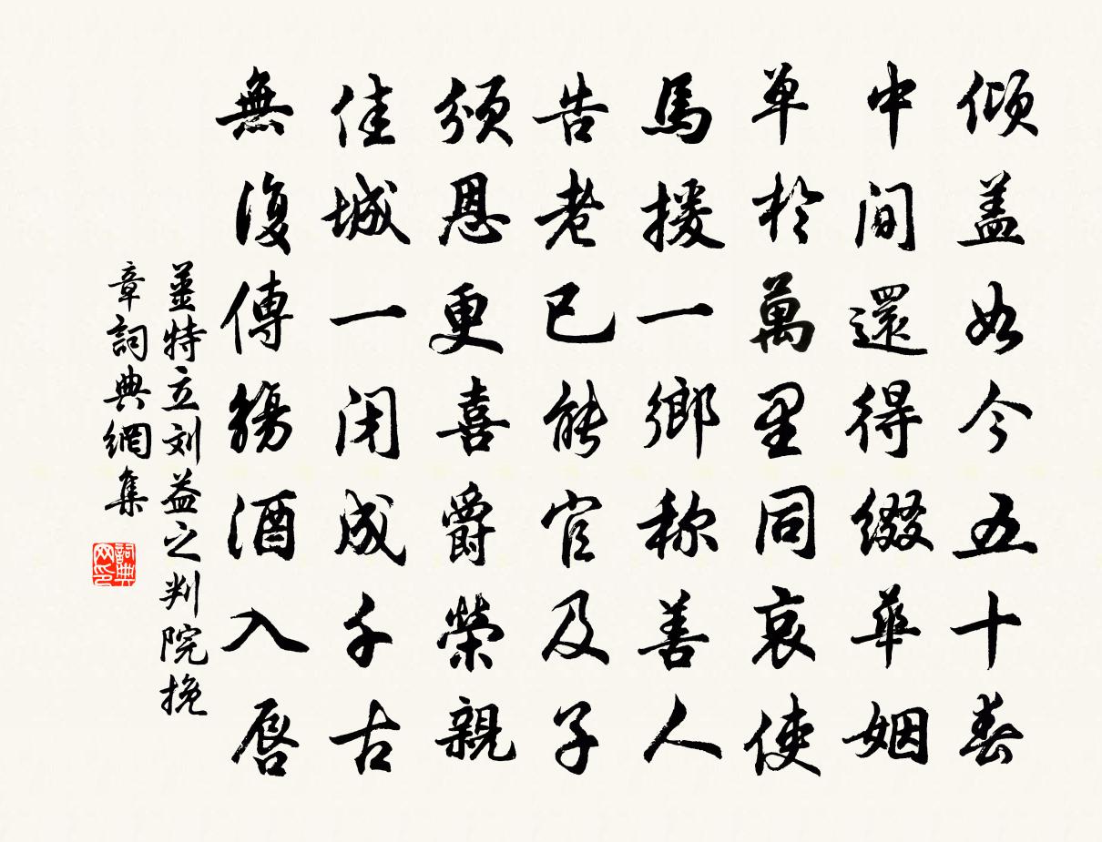 詩詞名句歷史字典書法欣賞書法字典國語詞典說文解字康熙字典古漢語字典標 題 作 者 詩 句 劉益之判院挽章作者:姜特立 朝代:宋代劉益之判院挽章原文傾蓋如今五十春,中間還得綴華姻。單于萬里同哀使,馬援一鄉稱善人。告老已能官及子,頒恩更喜爵榮親。佳城一閉成千古,無復傳觴酒入唇。詩詞問答問:劉益之判院挽章的作者是誰?答:姜特立問:劉益之判院挽章寫於哪個朝代?答:宋代姜特立劉益之判院挽章書法欣賞劉益之判院挽章書法作品詩詞推薦漳南十詠圓山廟蔡襄〔宋代〕風雅遺芬岳有神,此山靈祀越千春。彩毫佳句言猶在,翠剡新詞意未真。絕頂黑林長帶雨,曲崖飛磴不留塵。瘴雲岩桂鄧肅〔宋代〕雨過西風作晚涼,連雲老翠出新黃。清芬一日來天闕,世上龍涎不敢香。五祖送六祖渡江並船子接夾山贊釋了惠〔宋代〕一葉舟離港口,一橈外無可有。子不知羞,父不覺醜。醜惡羞慚,萬年不朽。豈不見黃梅路上數株松,帶雨含煙,送文暢師北游韓愈〔唐代〕昔在四門館,晨有僧來謁。自言本吳人,少國小城闕。已窮佛根源,粗識事輗軏。攣拘屈吾真,戒轄思遠發。薦紳空谷有幽蘭陳郁〔宋代〕空谷有幽蘭,取極倚白石。清晨作奇共,凡卉各跼蹐。公子偶相值,□枝置錦席。敷榮忽變倅,色不貸一夕。信知臨別送張諲入蜀李頎〔唐代〕出門便為客,惘然悲徒御。四海維一身,茫茫欲何去。經山復歷水,百恨將千慮。劍閣望梁州,是君斷腸處。孤雲孫倅書尾附二詩曹勛〔宋代〕南徐作別抵閩鄉,三見春風換眾芳。若對舊遊知識問,為言羈旅鬢成霜。項羽陸游〔宋代〕八尺將軍千里騅,拔山扛鼎不妨奇。范增力盡無施處,路到烏江君自知。寄榮子雍三首張耒〔宋代〕蒼蒼老柏古南禪,裊裊修篁泮水灣。此地笑談惟我共,百年交友得君難。已甘心向詩書老,會與身圖雲水閒。年少浣溪沙趙磻老〔宋代〕懶畫娥眉倦整冠。筍苞來點鏡中鬟。承恩容易報恩難。鬒髮未饒青箬笠,素鱗行簇水晶盤。流觴元自不相干。短歌行釋文珦〔宋代〕憶蜍游中林,鳥鳴蘭蕙芳。重來豈雲久,草木倏已黃。乙鳥始辭去,群鴻復南翔。天道有代謝,人生安得常。促促若楫請贊釋妙倫〔宋代〕貌兮蘚石,形兮雲松。口捷如啞,耳聰若聾。布重綱無明山上,盪一楫惱海中。吽,五日後也有個弄脫空,水底放謁金門譚宣子〔宋代〕銀漏滴。午夜平康巷陌。雙掩獸環人語寂。餘香無處覓。回首舊遊蹤跡。紺碧染衣猶濕。一餉沉吟誰會得。月明春對仙華雪懷方鳳〔宋代〕仙華萬仞石離離,山上嶄嶄萬壑危。雪與梅花俱在望,琴攜野鶴轉相隨。清如和靖西湖夜,興如王猷剡上時。我欲追用徐廉使參政子方申屠侍御致遠張御史鵬飛方回〔宋代〕七十翁非浪走時,夜窗自恨賦歸遲。睡稀枕上無春夢,吟苦樓前有月知。茅索願追田畯喜,瓜薪遙念室人悲。卻須題和伯僑吳松雪霽圖三首羅椅〔宋代〕暖來日曬冰滑,恨極天寒竹修。雲開梵鐸相訴,水活漁船自流。賜梨李泌與諸王聯句李亨〔唐代〕先生年幾許,顏色似童兒。——潁王夜抱九仙骨,朝披一品衣。——信王不食千鍾粟,唯餐兩顆梨。——益王天生再依韻梅堯臣〔宋代〕一嫁異域去,不復臨鏡台。念昔辭家時,豈為單于來。適遐固亦命,配醜非由媒。始欲並日月,今嗟隨風埃。仆侍木犀四首趙蕃〔宋代〕人言山水鍾人物,我道英靈屬此花。枯死猶堪作香供,不同桃李混泥沙。訪陳廷瑞有感劉宰〔宋代〕間維有常度,曜靈無停輈。翩翩葉辭柯,過眼綠已稠。弱榦不盈尺,忽已高岑樓。念昔過庭日,朋來悉良儔。我年名句推薦江山留勝跡,我輩復登臨。孟浩然《與諸子登峴山》 白馬繞旌旗,悲鳴相追攀。李白《豫章行》 占得杏梁安穩處,體輕唯有主人憐,堪羨好因緣。牛嶠《憶江南·銜泥燕》 石澗凍波聲,雞叫清寒晨。李賀《自昌谷到洛後門》 一溪煙柳萬絲垂,無因系得蘭舟住。周紫芝《踏莎行·情似遊絲》 月色入高樓,相思兩處愁。秋瑾《菩薩蠻·寄女伴》 人心似鐵,官法如爐。佚名《增廣賢文·上集》 不積跬步,無以致千里;不積小流,無以成江海。李昉、李穆、徐鉉《太平御覽·學部·卷一》 殘月臉邊明,別淚臨清曉牛希濟《生查子·春山煙欲收》 知者不惑,仁者不憂,勇者不懼。孔子弟子《論語·子罕篇》