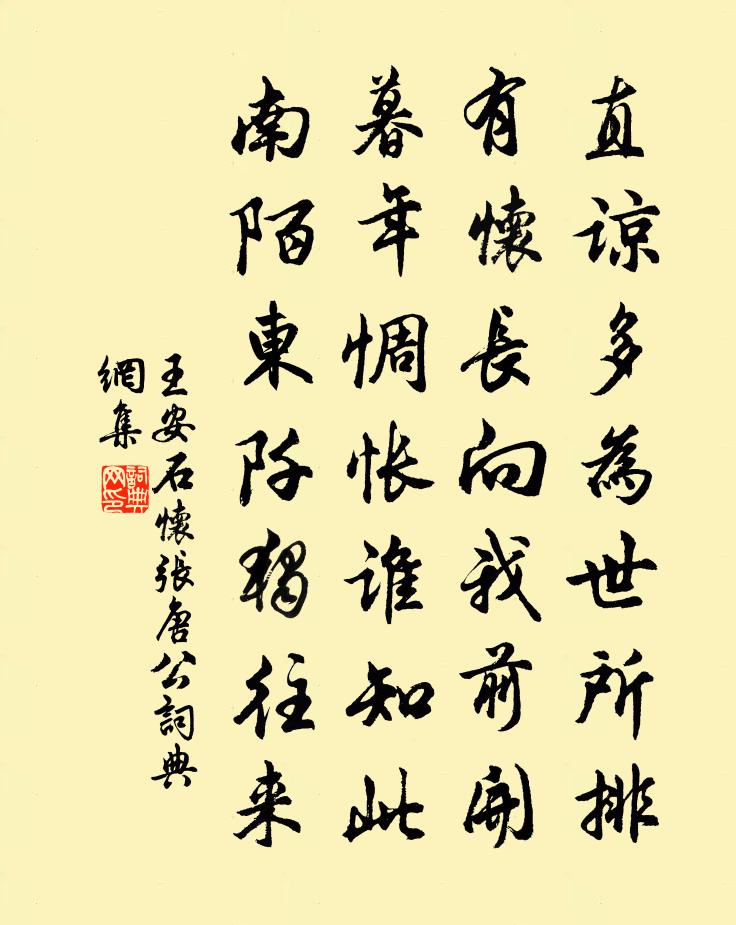詩詞名句歷史字典書法欣賞書法字典國語詞典說文解字康熙字典古漢語字典標 題 作 者 詩 句 懷張唐公作者:王安石 朝代:宋代懷張唐公原文直諒多為世所排,有懷長向我前開。暮年惆悵誰知此,南陌東阡獨往來。詩詞問答問:懷張唐公的作者是誰?答:王安石問:懷張唐公寫於哪個朝代?答:宋代問:王安石的名句有哪些?答:王安石名句大全王安石懷張唐公書法欣賞懷張唐公書法作品詩詞推薦自勉陸游〔宋代〕學詩當學陶,學書當學顏;正復不能到,趣鄉已可觀。養氣要使完,處身要使端;勿謂在屋漏,人見汝肺肝。節義際從子伯恭不遇丘葵〔宋代〕我行獨踽踽,聊復尋諸孫。諸孫名有役,誰復相溫存。彼茁者汀蘆,上有鷦鷯喧。衡門可棲遲,清風自妍暄。汲井菩薩蠻(秋)朱淑真〔宋代〕秋聲乍起梧桐落,蛩吟唧唧添蕭索。欹枕背燈眠,月和殘夢圓。起來鉤翠箔,何處寒砧作。獨倚小闌乾,逼人風露次韻石湖居士游虎丘陳造〔宋代〕山靈知我欲巾車,岫幌雲扃已袚除。竹葆松幢平幾席,碧煙紅影認林廬。飯分禪供清無敵,飲屬詩流興有餘。莫話端午前一日阻風鄱陽湖觀競渡楊萬里〔宋代〕惡風夜半阻歸船,端欲留人作勝緣。千里攜家觀競渡,五湖新漲政黏天。棹翻波浪山如雪,醉殺兒郎喜欲顛。得去玉溪梅株柯殊絕宣和間用事者嘗圖以進竟不報虞儔〔宋代〕玉溪得得探芳期,孤負詩人盡醉歸。訊息向來空驛使,畫圖老去惜明妃。香魂月墮驚春夢,翠袖天寒怯暮暉。蜂蝶悲風曲白玉蟾〔宋代〕山風淒冷山木悲,虎不敢嘯鬼夜啼。溪聲暗繞蒼苔路,翠羽絲毛寒不棲。幽人此時樓上立,葉照松梢露珠泣。有酒挽制乾二首王邁〔宋代〕曾見端平進士評,邱君磊落榜中英。忘形爾汝同年集,馳志伊吾即日行。舉子能談真將略,元戎誇得好門生。可憐次韻虞永康廬居生芝魏了翁〔宋代〕河南富貴花,人與譜姓氏。惟茲三秀者,不譜亦名世。肖形草木均,出處哲人似。無然而致之,朝菌何異此。廣陵扶風歌劉琨〔魏晉〕朝發廣莫門,暮宿丹水山。左手彎繁弱,右手揮龍淵。顧瞻望宮闕,俯仰御飛軒。據鞍長嘆息,淚下如流泉。系馬紹興二十八年祀圜丘學士院〔宋代〕赫赫巍巍,及時純熙。昊天成命,後則受之。登邁邃古,光被聲詩。有幣陟配,孫謀所貽。挽司馬季若知郡孫應時〔宋代〕越絕枌榆社,吳陵松竹間。相親逾骨肉,海見豁心顏。契闊今生死,蕭條舊往還。春風數行淚,吹度鏡湖山。黃鶴洞中仙 贈程三王丹桂〔元代〕人似當風燭。誰肯心回顧。目下恩情緊絆牽,豈覺於身苦。幸有修仙路。散散閒閒做。到處逍遙任自由,功滿蓬瀛出守桐廬道中十絕范仲淹〔宋代〕有病甘長廢,無機苦直言。江山藏拙好,何敢望天閽。上趙茶馬度正〔宋代〕仙源奕葉滿皇州,人物於今第一流。蹈履詩書宗孔孟,扶持日月繼伊周。更觀河滸盤根出,已自風雩向上求。異說曉出淨慈寺送林子方楊萬里〔宋代〕畢竟西湖六月中,風光不與四時同。接天蓮葉無窮碧,映日荷花別樣紅。賦花王起〔唐代〕花。點綴,分葩。露初裛,月未斜。一枝曲水,千樹山家。戲蝶未成夢,嬌鶯語更夸。既見東園成徑,何殊西子同早雪章甫〔宋代〕賤夫流落來淮海,兩紀悠然忘凍餒。烏薪白粲不論錢,近歲山林禁樵採。去年差官打炭窯,淮民畏事誰敢燒。官軍池上早春,即事招夢得白居易〔唐代〕老更驚年改,閒先覺日長。晴熏榆莢黑,春染柳梢黃。雲破山呈色,冰融水放光。低平穩船舫,輕暖好衣裳。白角磨崖碑周繕〔宋代〕筆跡因難泯,詞華詎可磨。二賢名不朽,千古著山阿。名句推薦國君好仁,天下無敵焉。孟子《孟子·盡心章句下·第四節》 殷勤花下同攜手。更盡杯中酒。美人不用斂蛾眉。葉夢得《虞美人·雨後同乾譽才卿置酒來禽花下作》 飛來山上千尋塔,聞說雞鳴見日升。王安石《登飛來峰》 中歲頗好道,晚家南山陲王維《終南別業》 俯視洛陽川,茫茫走胡兵。李白《古風·其十九》 雨雪自飛千嶂外,榆林只隔數峰西。朱彝尊《出居庸關》 昨夜東風入武陽,陌頭楊柳黃金色。李白《早春寄王漢陽》 春風來不遠,只在屋東頭。于謙《除夜太原寒甚》 霜草蒼蒼蟲切切,村南村北行人絕。白居易《村夜》 莫道讒言如浪深,莫言遷客似沙沉。劉禹錫《浪淘沙九首》