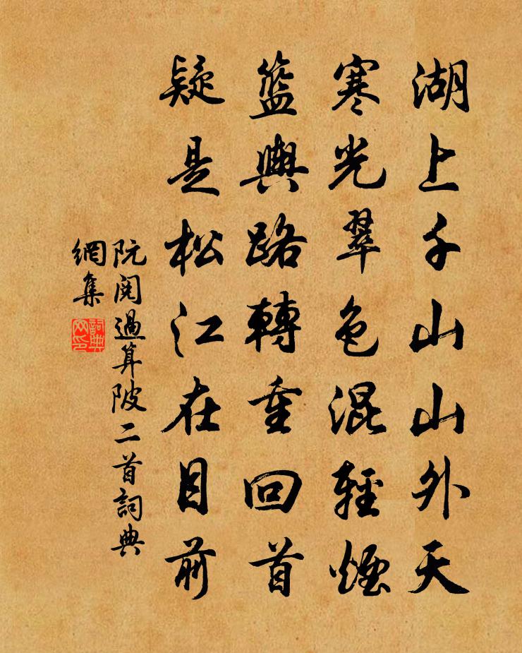 詩詞名句歷史字典書法欣賞書法字典國語詞典說文解字康熙字典古漢語字典標 題 作 者 詩 句 過算陂二首作者:阮閱 朝代:宋代過算陂二首原文湖上千山山外天,寒光翠色混輕煙。籃輿路轉重回首,疑是松江在目前。詩詞問答問:過算陂二首的作者是誰?答:阮閱問:過算陂二首寫於哪個朝代?答:宋代阮閱過算陂二首書法欣賞過算陂二首書法作品詩詞推薦酬樂天詠老見示劉禹錫〔唐代〕人誰不願老,老去有誰憐。身瘦帶頻減,發稀冠自偏。廢書緣惜眼,多炙為隨年。經事還諳事,閱人如閱川。細思秋日舟中題胡彭舉秋江卷鍾惺〔明代〕望遠寫秋江,秋意無起止。何曾見寸波,竟紙皆秋水。煙中過寒山,江淨翻如紙。空色有無間,身在秋江里。禪人請贊釋師範〔宋代〕似牛無角,似驢欠尾。突個形容,誠難比擬。無所思,無所為,臥月眠雲誰得知。怨詩江總〔隋代〕採桑歸路河流深。憶昔相期柏樹林。奈許新縑傷妾意。無由故劍動君心。句史虛白〔唐代〕風雨揭卻屋,全家醉不知。即事六絕鄧深〔宋代〕舊年不雪新年雪,今日非春明日春。滕六勾芒真劣相,寒溫相語作比鄰。臥病聞吉中孚拜官寄元秘書昆季李端〔唐代〕漢家采使不求聲, * 文章道欲行。毛遂登門雖異賞,韓非入傳濫齊名。雲歸暫愛青山出,客去還愁白髮生。年少嘉泰三年皇后冊寶十三首佚名〔宋代〕瑤冊玉寶,爛然瑞輝。旁翼絳節,上承紫微。璆鳴朝佩,徐出赤扉。登進坤極,益彰典徽。觀下湖漁者盛烈〔宋代〕漁舠逗曉來相續,短笆亂割春塘淥。須留一半還詩翁,要看早晚鴛鴦浴。梧桐樹牧常晁〔元代〕謾騰騰,無造作。任意逍遙隨飲啄。真箇清平樂。喉手幸無名利索。萬里孤雲並野鶴。這般誰知覺。和潘德久韻袁說友〔宋代〕曾讀桐江路上題,斯文便合請君司。向來吳會連朝語,晚歲揚州七字詩。憂世自憐聞道晚,論心猶恨結交遲。帆檣用評字韻和答府教授十二弟晁補之〔宋代〕君詩飄舉似鴻驚,書入揚州子弟評。聖世由來升俊造,少年已自得聲名。六經正可三冬足,萬里聊堪一日行。更約寄道士張明真田況〔宋代〕澹靜姿儀簡曠縱,結庵深對大茅峰。坐忘世故愁應少,道斷人情語亦慷。萬里信音憑鶴到,一廚煙火倩猿供。歲時雷峰董嗣杲〔宋代〕五極浮屠透泬寥,黃皮園上梵坊遙。當時雷就家曾棄,前代皇妃跡已銷。鈴帶水風傳古衕,燈分山月照長橋。根基卜運算元董穎〔宋代〕春淺借和風,吹綠庭皋樹。依約屏間出紫雲,入閣風流處。便做鐵心腸,也為梅花語。欲去東君更挽留,巧棧煙霞郊廟歌辭。夕月樂章。肅和佚名〔唐代〕測妙為神,通微曰聖。坎祀貽則,郊禋展敬。璧薦登光,金歌動映。以載嘉德,以流曾慶。詠鐘山楊備〔宋代〕周子無心隱姓名,裂荷焚芰使猿驚。不能高枕雲中臥,瑣悄貪它墨綬榮。伯益以玉舟相酬酢席上口占二絕劉學箕〔宋代〕元正講憶詎能忘,便辱留連設酒漿。笑指一船春盎盎,稽山應未愧知章。瑤台第一層趙仲御〔宋代〕嶰管聲催。人報導、嫦娥步月來。鳳燈鸞矩,寒輕廉箔,光泛樓台。萬年春未老,更帝鄉日月蓬萊。從仙仗,看星陳山謁吳越五王分祠劉熺〔宋代〕海村崇祖祀,吳越舊王家。里老稱遺澤,文孫避俗嘩。玉金榮帶印,俎豆薦葵{上艹下左木右且}。欲補迎春曲,名句推薦文章是山水化境,富貴乃煙雲幻形。王永彬《圍爐夜話·第一二二則》 荒煙涼雨助人悲,淚染衣襟不自知。王安石《送和甫至龍安微雨》 小雨空簾,無人深巷,已早杏花先賣。史達祖《夜行船·正月十八日聞賣杏花有感》 雖有戈矛之刺,不如恭儉之利也。荀子《荀子·榮辱》 力微休負重,言輕莫勸人。佚名《增廣賢文·上集》 老圃好栽培,菊花五月開。顧太清《菩薩蠻·端午日詠盆中菊》 蕃甲鎖蛇鱗,馬嘶青冢白。李賀《塞下曲》 花間一壺酒,獨酌無相親。李白《月下獨酌四首·其一》 微雨眾卉新,一雷驚蟄始。韋應物《觀田家》 寫不了相思,又蘸涼波飛去。朱彝尊《長亭怨慢·雁》