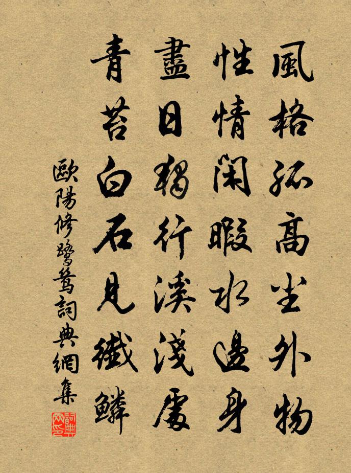 詩詞名句歷史字典書法欣賞書法字典國語詞典說文解字康熙字典古漢語字典標 題 作 者 詩 句 鷺鷥作者:歐陽修 朝代:宋代鷺鷥原文風格孤高塵外物,性情閒暇水邊身。盡日獨行溪淺處,青苔白石見纖鱗。詩詞問答問:鷺鷥的作者是誰?答:歐陽修問:鷺鷥寫於哪個朝代?答:宋代問:歐陽修的名句有哪些?答:歐陽修名句大全歐陽修鷺鷥書法欣賞鷺鷥書法作品詩詞推薦湖上成絕句呈劉伯聲四首張耒〔宋代〕野岸北風歸客愁,浮煙不動雨颼颼。圍成野色縈紆岸,點破湖光三四鷗。捧賜佛照禪師號敕黃示眾釋德光〔宋代〕天書親自日邊平,一道神光遍九垓。為瑞為祥恩力大,直教枯木解花開。贈夏肯甫葉適〔宋代〕自識賢尊熟,常將遠到期。忽傳千古信,虛抱一生穎。恨菊來何久,愁梅去轉遲。應留起春蟄,詞落未堪悲。次韻立春後余寒二首李流謙〔宋代〕挾冷朝陽未吐光,小池猶有夜來霜。東君自識沈潛意,誰道陰柔解變剛。踏莎行 黛眉顰色 復古詩集五王國器〔元代〕淡掃春痕,輕籠芳靨。捧心不效吳宮怨。楚梅酸蹙翠尖纖,湘煙碧聚愁萋*。紺羽寒凝,月鉤金灩。鶯吭咽處微偷舟中雜紀 其七王冕〔元代〕九日今朝是,淒淒多朔風。黃葉渾未落,烏柏最先紅。對景情何已,懷人夢不通。稻粱今歲薄,無奈北征鴻。首尾吟邵雍〔宋代〕堯夫非是愛吟詩,安樂窩中半醉時。因月因花因興詠,代書代簡代行移。池中既有雙魚躍,天際寧無一雁飛。無限偈十三首釋法泰〔宋代〕一雁度長空,影落寒江水。水無沉影心,雁無遺蹤意。蹤影兩相忘,憑何為的旨。籬邊金菊黃,江上芙蓉翠。頌一百則釋重顯〔宋代〕六識無功伸一問,作家曾共辨來端。茫茫急水打毬子,落處不停誰解看。寄宗上人華岳〔宋代〕我為扣閽拘狴犴,汝將吟筆換袈裟。別來猶記松窗外,一掬清泉自點茶。懷寄周元翁十首賀鑄〔宋代〕周郎有史才,班馬可並驅。紛紛讒諂人,畏君筆削誅。我恨接君晚,要亦君之徒。沈痾積歲月,顧此留須臾。志我滿江紅(劉守解任)佚名〔宋代〕歸去來兮,要待足、何時是足。榮對辱、飲河鼴鼠,無過滿腹。浴月朝霞紅賽錦,排雲晚岫青如玉。更修筠、與合滿江紅(壽壑相)張榘〔宋代〕淮海波澄,湛桂影、半規涼月。又還是、中秋相近,垂弧時節。綸誥飛來宸眷重,彩衣著處慈顏悅。注紫清、花露逢漳州崔使君北歸張蠙〔唐代〕在郡多殊稱,無人不望回。離城攜客去,度嶺擔猿來。障寫經冬蕊,瓶緘落暑梅。長安有歸宅,歸見鎖青苔。王聖美三子補中廣文生黃庭堅〔宋代〕王家人物從來遠,今見諸孫總好賢。 * 定知魚尾進,一鳴已作雁行連。愧無藻監能推轂,願卷囊書當贈錢。歸去首尾吟邵雍〔宋代〕堯夫非是愛吟詩,詩是堯夫揮塵時。每見賓朋須欵曲,更和言語不思惟。方將與物同休戚,何暇共人爭是非。天地老境陸游〔宋代〕平生百不遂,惟有老如期。眼澀觀書夜,心衰把酒時。僧分新掘藥,客誦舊題詩。四十年前我,回看定是誰?送智京長老智京普融上足也胡寅〔宋代〕人生如浮雲,片片隨所起。值遇初偶然,解散亦俄爾。識君湘水頭,凝袂衡岳里。十年去何住,新化五百里。乘興題方海豐詩卷劉克莊〔宋代〕詩境高吟太白倫,梧州下筆李潮親。今觀天馬非凡種,肯厭家雞問外人。力大鰲來吞釣餌,心專虱看似車輪。盛年臨江仙佚名〔宋代〕欣遇月圓先兩日,稱觴對二陽來。名句推薦算遺蹤、猶有枕囊留,相思物。吳文英《滿江紅·劉朔齋賦菊和韻》 易求無價寶,難得有心郎。魚玄機《贈鄰女 / 寄李億員外》 青冥浩蕩不見底,日月照耀金銀台。李白《夢遊天姥吟留別 / 別東魯諸公》 榆柳蕭疏樓閣閒,月明直見嵩山雪。孟郊《洛橋晚望》 知人者智,自知者明。勝人者有力,自勝者強。知足者富。強行者有志。老子《老子·道經·第三十三章》 堪笑楚江空渺渺,不能洗得直臣冤。文秀《端午》 念故人,千里至此共明月。寇準《踏莎行·寒草煙光闊》 皎皎窗中月,照我室南端。潘安《悼亡詩三首》 險韻詩成,扶頭酒醒,別是閒滋味。李清照《念奴嬌·春情》 來日綺窗前,寒梅著花未。王維《雜詩三首 / 雜詠三首》