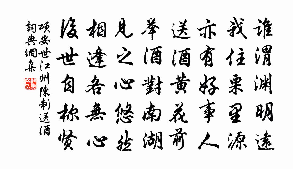 詩詞名句歷史字典書法欣賞書法字典國語詞典說文解字康熙字典古漢語字典標 題 作 者 詩 句 江州陳制送酒作者:項安世 朝代:宋代江州陳制送酒原文誰渭淵明遠,我住栗里源。亦有好事人,送酒黃花前。舉酒對南湖,見之心悠然。相逢各無心,後世自稱賢。詩詞問答問:江州陳制送酒的作者是誰?答:項安世問:江州陳制送酒寫於哪個朝代?答:宋代項安世江州陳制送酒書法欣賞江州陳制送酒書法作品詩詞推薦以詩句詠梅朔云為斷蜂蝶信方蒙仲〔宋代〕風月本無窮,台觀亦□惡。妙處吾能言,卻恐兒輩覺。奉和御製兗州景靈宮太極觀牌登路夏竦〔宋代〕崇丘紫館集繁禎,躬勒璿題耀筆精。藻衛森沉登廣路,彩雲搖褭入層城。高侔曲密分都號,遠法陽寥紀殿名。真祖閒遊陸游〔宋代〕游遍名山日月長,結廬歸占水雲鄉。醉中即是逃名地,閒外應無度世方。檜蜜滿脾余小苦,木苗浥露有奇香。肺腸送張宗益工部知相州文同〔宋代〕學術深沉久未施,晚登台省世方知。詩章好奏周文廟,字法宜磨魏武碑。禁掖便當提大筆,名藩猶自擁高麾。應憐次韻子瞻游孤山訪惠勤惠思蘇轍〔宋代〕鳥依山,魚依湖,但有所有無所無。輕舟沿泝窮遠近,肩輿上下更傳呼。翩然獨往不攜孥,兼擅魚鳥兩所娛。困依蝶戀花·和漱玉詞王士禎〔清代〕涼夜沉沉花漏凍,欹枕無眠,漸覺荒雞動。此際閒愁郎不共,月移窗罅春寒重。 憶共錦衾無半縫,郎似桐花,病中王銍〔宋代〕久知身是幻,況復病相侵。古寺松篁瘦,山空雨雪深。定知書不達,豈有客相尋。伴我殘燈火,應知夜夜心。含笑花陳景沂〔宋代〕此花枝葉山礬類,氣味雖殊本共行。鐵下青門瓜魄變,否因李白酒魂香。紫唇半吐胭脂重,素臉初開玉色裝。懊惱句戚明瑞〔宋代〕老槐陰下吹箜篌。西江月梁安世〔宋代〕南國秋光過二,賓鴻未帶初寒。洞中駝褐已嫌單。洞口猶須揮扇。夕照千峰互見,晴空萬象都還。羨他漁艇系澄灣句石仙〔宋代〕深邃門牆三楚外,清虛池館五峰前。蟾宮曲·雪薛昂夫〔元代〕天仙碧玉瓊瑤,點點揚花,片片鵝毛。訪戴歸來,尋梅懶去,獨釣無聊。一個飲羊羔紅爐暖閣,一個凍騎驢野店溪賞花醉吟姜特立〔宋代〕七十衰翁雙鬢杭,每遇花時拚醉倒。今年只是去年花,故宮何似今吾老。空中日月籠中鳥,萬古賢愚塵一窖。尋思題君山觀招真閣六首李呂〔宋代〕雙蔓正排空,雲是玉真府。采芝何許入,忽此駕修羽。失調名佚名〔宋代〕雙鳳釵頭,爭帶御書符。用強甫蒙仲韻十首劉克莊〔宋代〕久矣設羅無客至,居然執簡尚予從。微辭幸不遭陽虎,幾諫誰能諒觸龍。竊曼倩桃無復味,聞安期棗有誰逢。殘年宗教院劉鑄〔宋代〕雨過江山麗,春深筍蕨肥。扶藜蒼蘚破,移榻亂雲飛。詠史下荀彧陳普〔宋代〕河濟太山猶是漢,匆匆把作賊關中。久知天下無劉氏,不料人間有孔融。再和適莊韻王柏〔宋代〕客從東方來,喜甚屐折齒。鼎烹石乳精,談笑秋月里。中有八十翁,宴坐維摩椅。遁澤瑚璉器,玉瓚間罍洗。立齋臨江仙孫居敬〔宋代〕摘索枝頭何處玉,吹來萬里春風。須臾陸地遍芙蓉。珠簾和氣撲,一笑奪爐紅。文字紅裙相間出,主人鐘鼎仙翁。名句推薦劇辛樂毅感恩分,輸肝剖膽效英才。李白《行路難三首》 明眸皓齒誰復見,只有丹青余淚痕。蘇軾《虢國夫人夜遊圖》 以卵投石也。盡天下之卵,其石猶是也,不可毀也墨子《墨子·47章 貴義》 誰憐一片影,相失萬重雲?杜甫《孤雁 / 後飛雁》 三人行,必有我師焉。擇其善者而從之,其不善者而改之。孔子弟子《論語·述而篇》 遙望洞庭山水色,白銀盤裡一青螺劉禹錫《望洞庭》 掩妾淚,聽君歌。李白《夜坐吟》 紅葉滿寒溪,一路空山萬木齊。納蘭性德《南鄉子·秋暮村居》 慘慘柴門風雪夜,此時有子不如無。黃景仁《別老母》 憶共錦衾無半縫,郎似桐花,妾似桐花鳳。王士禎《蝶戀花·和漱玉詞》
