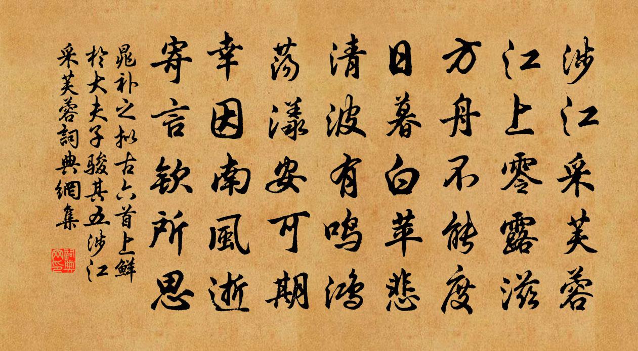 涉江采芙蓉,江上零露滋。方舟不能度,日暮白苹悲。