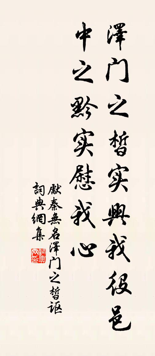 詩詞名句歷史字典書法欣賞書法字典國語詞典說文解字康熙字典古漢語字典標 題 作 者 詩 句 澤門之皙謳作者:先秦無名 朝代:先秦澤門之皙謳原文澤門之皙。實興我役。邑中之黔。實慰我心。詩詞問答問:澤門之皙謳的作者是誰?答:先秦無名問:澤門之皙謳寫於哪個朝代?答:先秦問:澤門之皙謳是什麼體裁?答:樂府先秦無名澤門之皙謳書法欣賞澤門之皙謳書法作品詩詞推薦符十五郎求頌釋正覺〔宋代〕圓虛里許得真游,離水犀通一點秋。機應無私登鳥道,妙同明月靜隨流。漫成曹逢時〔宋代〕學書須學顏真卿,作詩須作陶淵明。其它泚筆本骫骳,便有風骨非天成。送張知錄葉適〔宋代〕門閥飛龍後,家聲入館前。身饒太常長,客欠廣文氈。流落無先譽,遭逢有宿緣。炎洲路多少,謾數去鴻邊。送人王建〔唐代〕河亭收酒器,語盡各西東。回首不相見,行車秋雨中。句朱元瑜〔宋代〕嚼梅香襲齒,攀柳綠藏巾。送河東提刑張太博范仲淹〔宋代〕憶守姑蘇日,見君已驚人。翩翩幕中畫,落落席上珍。強記及敏力,一一精如神。洎余領西帥,密與羌夏鄰。君來賞春宋度宗〔宋代〕珠簾翠幕千門曉,麗日和風萬國春。乍雨乍晴雖莫測,無非天地發生仁。題晝寢宮人圖應制黃泳〔宋代〕御手指嬋娟,春風晝日眠。粉勻香汗濕,髻壓鬢雲偏。柳妬眉間綠,桃驚臉上鮮。夢魂何處是,應繞帝王邊。贈潘齋郎宋祁〔宋代〕吟塘春草奪袍青,蘭玉仙姿出謝庭。刻羽彫章傳雪市,煎波麗賦淹雲溟。逢衣四座開賓榻,采服千金獻壽醽。漢殿昭君怨(游池)張鎡〔宋代〕拂曉拿舟東去,細看荷花垂露。紅綠總吹香,一般涼。會享人天清福,休把兩眉輕蹙。誰道做神仙,戴貂蟬。酬李司直縱諸公冬日游妙喜寺題照、昱二上人房…述皎然〔唐代〕達賢貴貞隱,常懼跡不滅。遂與永公期,遺身坐林樾。華軒何轔轔,為我到幽絕。心境寒草花,空門青山月。潘生臘望玩月陳宓〔宋代〕痴雨頓晴如有約,素娥雖老更多情。何有肯向雪中看,已作新年滿意明。湖州歌九十八首 其七十八汪元量〔宋代〕第九筵開盡帝妃,三宮端坐受金卮。須臾殿上都酣醉,拍手高歌舞雁兒。偶題離亭羅鄴〔唐代〕萬般名利不關身,況待山平海變塵。五月波濤爭下峽,滿堂金玉為何人。謾夸浮世青雲貴,未盡離杯白髮新。誰似唐封泰山樂章。雍和張說〔唐代〕俎豆有馥,粢盛絜豐。亦有和羹,既戒既平。鼓鍾管磬,肅唱和鳴。皇皇我祖,來我思成。黃葉釋文珦〔宋代〕吾心愛黃葉,不翅於南金。九月秋風高,柴門積來深。一一自掇拾,書我白頭吟。吟成意誰與,拄頰對遙岑。賀黎耐交建經史閣趙必象〔宋代〕芹宮地屬淳熙祖,芸閣功成四世孫。千載詩書元氣在,百年文獻故家存。卷還贈券珍公帑,留取芳名榜聖門。當道和歐陽宣德經野步晁補之〔宋代〕溯風何敢祝淮神,青律飛灰氣自醇。顧我衰容唯殢酒,因君佳句始知春。山中桂子年年好,觀里桃英日日新。延對富水曾教授夜飲有作趙文〔宋代〕心齋聽講趁諸生,何意相逢曲豆城。急雨狂風十年夢,青燈白酒故人情。形骸改化悲嘆異,歲月銷磨感慨平。卻恐雜擬梅堯臣〔宋代〕忽聞胡騎渡河水,月魄夜脅陰貂寒。獨侍金輿立城肚,龍蛇不展繞旗竿。名句推薦梅似雪,柳如絲。試聽別語慰相思。辛棄疾《鷓鴣天·送歐陽國瑞入吳中》 自憐人憐,自棄人棄。心無滯礙,害不侵矣。來俊臣《羅織經·保身卷第七》 快意事過非快意,自古敗名因敗事。佚名《增廣賢文·下集》 離一切諸相則名諸佛。鳩摩羅什譯《金剛經·離相寂滅》 那堪疏雨滴黃昏。更特地、憶王孫。歐陽修《少年游·欄乾十二獨憑春》 旅客三秋至,層城四望開。杜審言《登襄陽城》 世事洞明皆學問,人情練達即文章。曹雪芹《紅樓夢·第五回》 白髮書生神州淚,盡淒涼、不向牛山滴劉克莊《賀新郎·九日》 上窮碧落下黃泉,兩處茫茫皆不見。白居易《長恨歌》 道私者亂,道法者治。韓非及後人《韓非子·詭使》