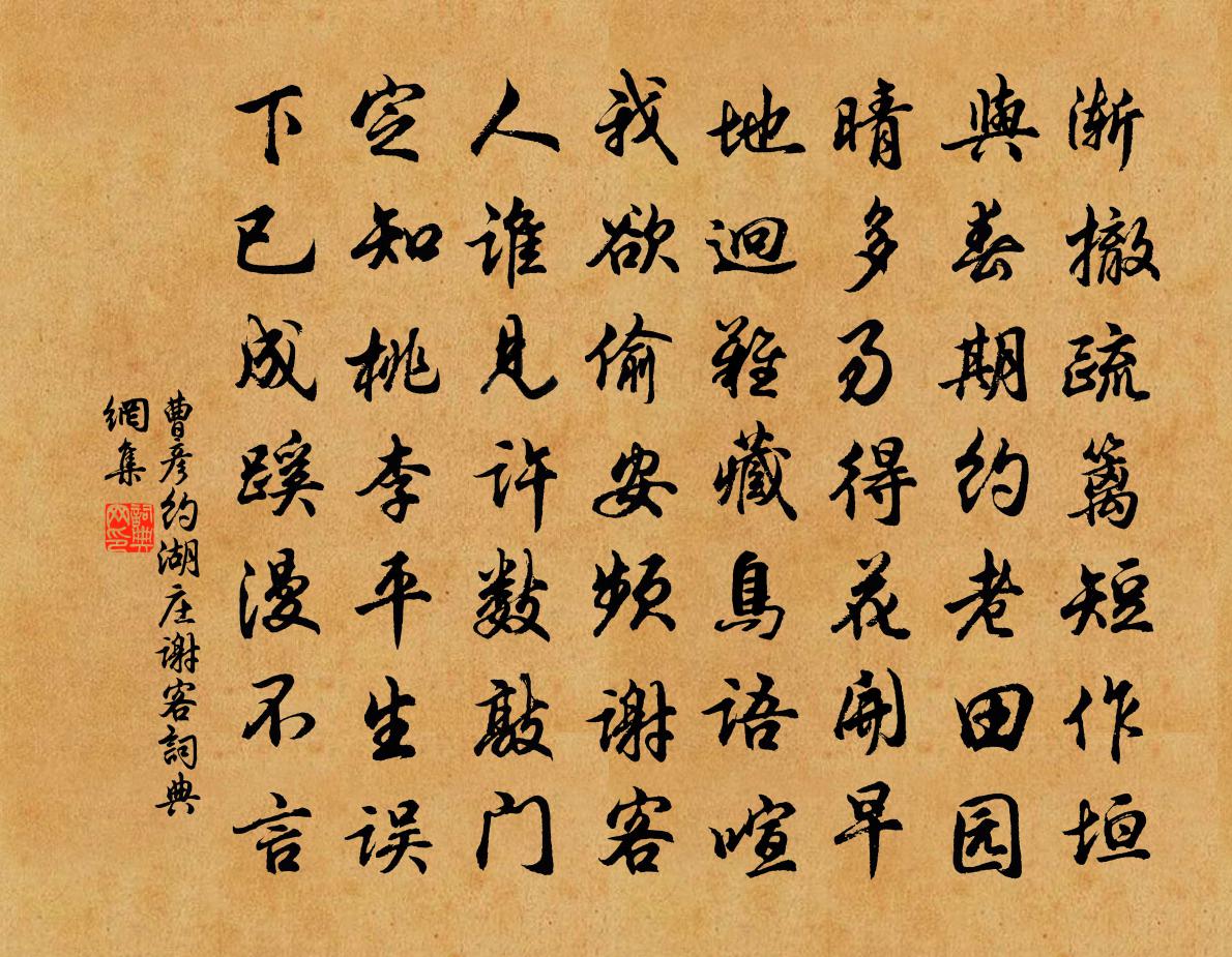 詩詞名句歷史字典書法欣賞書法字典國語詞典說文解字康熙字典古漢語字典標 題 作 者 詩 句 湖莊謝客作者:曹彥約 朝代:宋代湖莊謝客原文漸撤疏籬短作垣,與春期約老田園。晴多易得花開早,地迥難藏鳥語喧。我欲偷安頻謝客,人誰見許數敲門。定知桃李平生誤,下已成蹊漫不言。詩詞問答問:湖莊謝客的作者是誰?答:曹彥約問:湖莊謝客寫於哪個朝代?答:宋代曹彥約湖莊謝客書法欣賞湖莊謝客書法作品詩詞推薦水調歌頭(題永豐楊少游提點一枝堂)辛棄疾〔宋代〕萬事幾時足,日月自西東。無窮宇宙,人是一粟太倉中。一葛一裘經歲,一缽一瓶終日,老子舊家風。更著一杯酒夏日薰風亭作釋智圓〔宋代〕四野炎炎暑氣隆,危亭孤坐與誰同。湖光淡盪涵殘照,鳥影參差沒遠空。訊息浮生憑至理,破除煩暑賴清風。明時古興二首沈徽〔唐代〕蔓草自細微,女蘿始夭夭。夤緣至百尺,榮耀非一朝。敷色高碧嶺,流芳薄丹霄。如何摧秀木,正為餘波漂。莖葉思親五首謝枋得〔宋代〕九十萱親天下稀,十年甘旨誤庭闈。臨行有懇慈心喜,再睹衣冠兒便歸。寄題鄭尚明煮茶軒三首劉子翬〔宋代〕過耳颼颼未歇,裝懷憒憒俄空。它日寧逃水厄,會須一訪髯翁。又次韻子云春日絕句三首韓元吉〔宋代〕春來殘雪自消檐,只有愁人鬢雪添。未省雙鞬談豹略,且聽紅袖唱香奩。採蓮舟薛濤〔唐代〕風前一葉壓荷蕖,解報新秋又得魚。兔走烏馳人語靜,滿溪紅袂棹歌初。孤桐雍陶〔唐代〕疏桐餘一乾,風雨日蕭條。歲晚琴材老,天寒桂葉凋。已悲根半死,復恐尾全焦。幸在龍門下,知音肯寂寥。題鄭氏義門王義山〔宋代〕說到義時須割截,如何氣象得渾全。合非真合皆人者,生與俱生有性焉。友是弟兄常底事,仁於父子本然天。大書題海岳後人煙巒曉景圖唐珙〔元代〕襄陽米友仁,作畫但畫意。須臾筆硯間,淋漓走元氣。相和歌辭。從軍行劉希夷〔唐代〕秋來風瑟瑟,群馬胡行疾。嚴城晝不開,伏兵暗相失。天子廟堂拜,將軍玉門出。紛紛伊洛間,戎馬數千匹。軍門連雨書事陳與義〔宋代〕風伯方安臥,雲師亦少饕。氣連河漢潤,聲到竹松高。老雁猶貪去,寒蟬遂不號。相悲更相識,滿眼楚人騷。題石室庵前竹上朱真靜〔宋代〕十年身與鬼為鄰,曾見岩花幾度春。莫怪柴門終日閉,怕將塵事惱間人。次單君范袖來汪西皋所譔詠秋十章以示因和之陳著〔宋代〕木犀風了桂花風,幾日中閒景不同。惟有黃花偏耐老,飽收霜露玉成功。鷓鴣天(剪彩花送珍省試)劉鼎臣妻〔宋代〕金屋無人夜剪繒。寶釵翻作齒痕輕。臨行執手殷勤送,襯取蕭郎兩鬢青。聽囑付,好看承。千金不抵此時情。明年舟中見獵犬有感宋琬〔清代〕秋水蘆花一片明,難同鷹隼共功名。檣邊飯飽垂頭睡,也似英雄髀肉生。三月三日上忠襄墳,因之行散,得十絕句楊萬里〔宋代〕草藉輪蹄翠織成,花圍巷陌錦韙屏。早來指點遊人處,今在遊人行處行。浮世王翥〔宋代〕浮世惟高忱,平生有敞裘。江花中酒日,巴雨落帆秋。老矣英雄事,愚哉盜賊謀。啼猿長自在,一笑下滄洲。戊子除夕追和陳簡齋除夜一首喻良能〔宋代〕世事年來已飽更,百年今夕兩分平。窗間蠟炬偎人暖,瓶里梅花照眼明。瓦屋三間聊足喜,鬢霜千丈總堪驚。明朝和曾吉父以詩謝鄭顧道送酒二首王洋〔宋代〕文人運化得天然,九醞香醪自日邊。分與詩人澆舌本,不妨石澗一杯泉。名句推薦月上柳梢頭,人約黃昏後。歐陽修《生查子·元夕》 青紫雖被體,不如早還鄉。杜甫《夏夜嘆》 朝為越溪女,暮作吳宮妃。王維《西施詠》 客路相逢難,為樂常不足。蘇軾《送頓起》 天下無指者,生於物之各有名,不為指也。公孫龍《公孫龍子·指物論》 刑稱罪,則治;不稱罪,則亂。荀子《荀子·正論》 修竹傍林開,喬松倚岩列。德隱《新秋晚眺》 塞北梅花羌笛吹,淮南桂樹小山詞。劉禹錫《楊柳枝詞九首·其一》 菀菀黃柳絲,濛濛雜花垂。常建《春詞二首》 信者人之乾也,義者行之節也。劉向《列女傳·貞順傳·陳寡孝婦》
