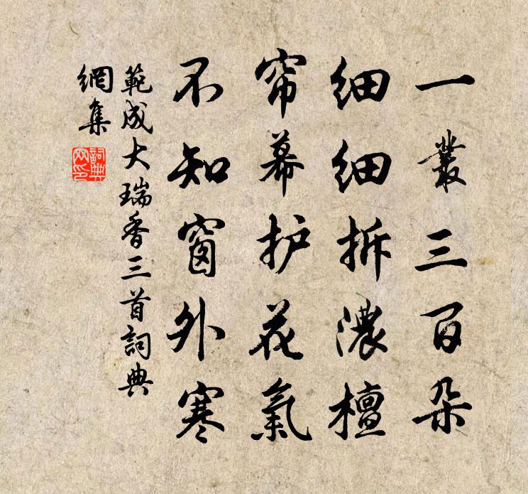 一叢三百朵,細細拆濃檀。簾幕護花氣,不知窗外寒。