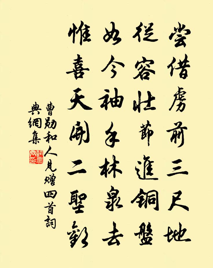 詩詞名句歷史字典書法欣賞書法字典國語詞典說文解字康熙字典古漢語字典標 題 作 者 詩 句 和人見贈四首作者:曹勛 朝代:宋代和人見贈四首原文嘗借虜前三尺地,從容壯節進銅盤。如今袖手林泉去,惟喜天開二聖歡。詩詞問答問:和人見贈四首的作者是誰?答:曹勛問:和人見贈四首寫於哪個朝代?答:宋代曹勛和人見贈四首書法欣賞和人見贈四首書法作品詩詞推薦公燕詩曹植〔魏晉〕公子敬愛客。終宴不知疲。清夜遊西園。飛蓋相追隨。明月澄清影。列宿正參差。秋蘭被長坂。朱華冒綠池。潛魚偶成李彌遜〔宋代〕野水旁邊不擊舟,偶隨波浪信沉浮。如今卻向來時路,預買閒塘著狎鷗。詠牡丹王溥〔宋代〕棗花至小能成實,桑葉雖柔解吐絲。堪笑牡丹如斗大,不成一事又空枝。次韻文潛館中作晁補之〔宋代〕蓬山前臨九軌路,三日街晴案吹土。直廬鑿牖面宮垣,青壁嶄嶄看垂雨。殿閣風斜碧瓦寒,翅濕蒼鳶不能乳。卻思登總持寺閣耿湋〔唐代〕今日登高閣,三休忽自悲。因知筋力減,不及往年時。草樹還如舊,山河亦在茲。龍鍾兼老病,更有重來期。和劉後村雜興胡仲弓〔宋代〕近學時妝越樣新,空遺畎畎處忠臣。燭之武老未為老,劉伯龍貧可是貧。造物不應推若輩,江山亦合助詩人。掛冠隔浦蓮近/隔浦蓮近拍彭元遜〔宋代〕夜寒晴早人起。見柳知新翠。撼樹試花意。兩蜂狂救墮蕊。見著羞懶避。春都在,時節到愁地。屏間字。香痕半掏聞猿李紳〔唐代〕見說三聲巴峽深,此時行者盡沾襟。端州江口連雲處,始信哀猿傷客心。風入松韓玉〔宋代〕柳陰亭院杏梢長。依約巫陽。鳳簫已遠秦樓在,水沈煙暖餘香。臨鏡舞鸞窺沼,倚箏飛雁辭行。醉邊人去自淒涼。哀仲妹劉克莊〔宋代〕壺范班班在里閭,始知列女傳非虛。室無遺桂空花妄,溪有新塋宰樹疏。弟憶雪中聯汝句,兄行雷岸寄家書。自憐僦居小室之西有隙地不滿十步新歲後稍暖每開張耒〔宋代〕蒼蒼老檜已消雪,冉冉煙蕪欲◇妍。圍得青春數畝地,斷將平楚一方天。春風入戶如相覓,新月低窗最可憐。老子和雨崖吳提弄奉母夫人雨中登魯公亭釋道璨〔宋代〕白髮照黃花,薄晚散幽步。何年乘五雲,來自三神嶼。膝下千載人,富貴等儒素。西風天地秋,細雨江城莫。酒酣玉水記方流白居易〔唐代〕良璞含章久,寒泉徹底幽。矩浮光灩灩,方折浪悠悠。凌亂波紋異,縈迴水性柔。似風搖淺瀨,疑月落清流。潛潁和金功叟二首吳芾〔宋代〕君家今歲受恩封,共慶夫夫婦婦同。況遇誕彌尤可樂,願拼沉醉似仙翁。德藝有貴賤孫岩〔宋代〕調弓遣猿悲,削鋸奪神造。伊人天分高,甘以一事老。奈何握寸穎,特自矜粉藻。沈約僅如奴,子建何足道。率爾周十三丈約同馬三丈入青原山賦詩五首以記行趙蕃〔宋代〕渡江不待餉,勝士約三行。夢境故常在,重來年漫更。又成春霧掃,何日野田耕。要向思公問,燈明香縷橫。山下殘夏偶作李山甫〔唐代〕等閒三伏後,獨臥此高丘。殘暑炎於火,林風爽帶秋。聲名何要出,吟詠亦堪休。自許紅塵外,雲溪好漱流。和元遺山四首王奕〔宋代〕西偏顏樂園,屋角接聖境。想當坐忘時,聰明盡黜屏。上植松數株,下種麻千頃。蛛網結秋絲,綿密藏廢井。東連朝中措張綱〔宋代〕前年初對大明宮。寒律轉春風。幾度相關歸夢,催成兩鬢霜蓬。山州歲晚,還逢令節,空記前蹤。莫遣酒兵相向,痴絕和尚贊釋紹曇〔宋代〕淳乎狗淳,沒機狗心。撮莖 * 作翳晴狗藥,鍛黃丹成紅指金。發汾陽怒罵傷人語惡,中曹源蠱毒刻骨冤深。掃狐名句推薦一點殘紅欲盡時。乍涼秋氣滿屏幃。周紫芝《鷓鴣天·一點殘紅欲盡時》 遙望洞庭山水色,白銀盤裡一青螺劉禹錫《望洞庭》 書當快意讀易盡,客有可人期不來。陳師道《絕句·書當快意讀易盡》 巴山重疊相逢處。燕子占巢花脫樹。張先《漁家傲·和程公辟贈》 閒倚博山長嘆,淚流沾皓腕。韋莊《歸國遙·春欲晚》 賞罰不可輕行,用人彌須慎擇。吳兢《貞觀政要·卷三·論擇官》 白日不到處,青春恰自來。袁枚《苔》 今人嗤點流傳賦,不覺前賢畏後生。杜甫《戲為六絕句》 萋萋芳草小樓西,雲壓雁聲低。劉基《眼兒媚·秋思》 早是他鄉值早秋,江亭明月帶江流。王勃《秋江送別二首》