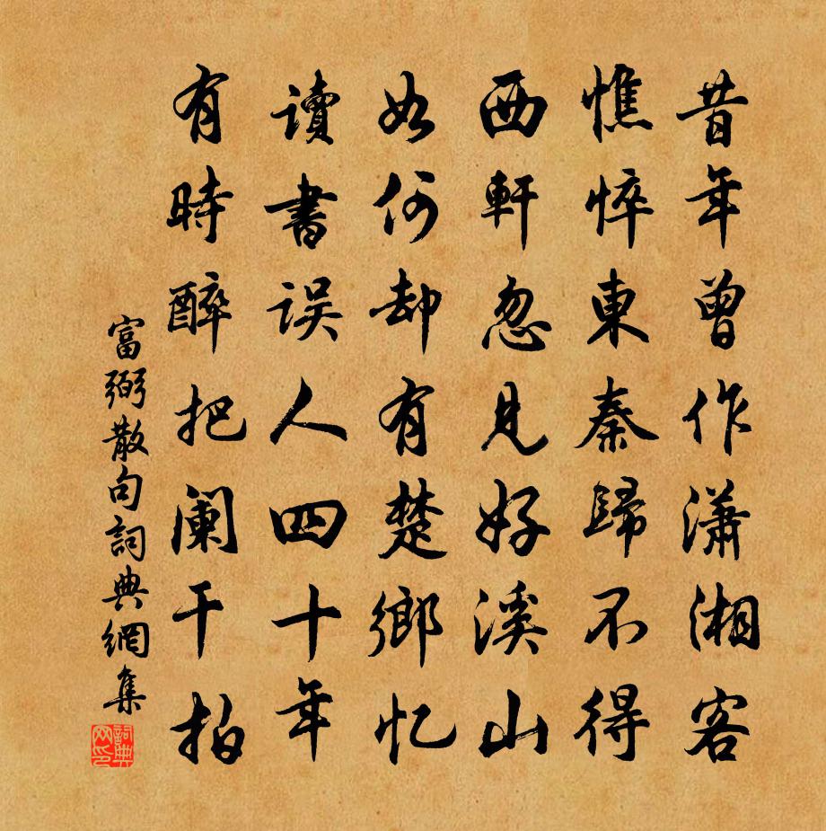 詩詞名句歷史字典書法欣賞書法字典國語詞典說文解字康熙字典古漢語字典標 題 作 者 詩 句 句作者:富弼 朝代:宋代句原文昔年曾作瀟湘客,憔悴東秦歸不得。西軒忽見好溪山,如何卻有楚鄉憶。讀書誤人四十年,有時醉把闌乾拍。詩詞問答問:句的作者是誰?答:富弼問:句寫於哪個朝代?答:宋代富弼句書法欣賞句書法作品詩詞推薦晚春二首陳傅良〔宋代〕莫道春歸事已非,水邊天際綠成圍。隔籬聽得農家語,雨過田田麥含肥。游廬山山陽七詠其三簡寂觀蘇轍〔宋代〕山行但覺鳥聲殊,漸近神仙簡寂居。門外長溪淨客足,山腰苦筍助盤蔬。喬松定有藏丹處,大石仍存拜斗余。弟子秋懷陸游〔宋代〕暮年身世轉悠悠,又向天涯見早秋。昨夜月明今夜雨,關人何事總成愁。法曲獻仙音·聚景亭梅次草窗韻王沂孫〔宋代〕層綠峨峨,纖瓊皎皎,倒壓波痕清淺。過眼年華,動人幽意,相逢幾番春換。記喚酒尋芳處,盈盈褪妝晚。已銷黯陽台路(林鐘商)柳永〔宋代〕楚天晚,墜冷楓敗葉,疏紅零亂。冒征塵、匹馬驅驅,愁見水遙山遠。追念少年時,正恁鳳幃,倚香偎暖。嬉遊慣次韻王適游陳氏園蘇轍〔宋代〕宿雨睛來春已晚,眾花飄盡野猶香。舞雩便可同沂上,飲禊何妨似洛陽。新圃近聞穿沼闊,漲江初喜放舟長。年來送戴徵士還山李端〔唐代〕柔桑錦臆雉,相送到煙霞。獨隱空山里,閒門幾樹花。草生楊柳岸,鳥囀竹林家。不是謀生拙,無為末路賒。續小娘歌十首(選二)元好問〔金代〕其 一山無洞穴水無船,單騎驅人動數千;直使今年留得在,更教何處過明年。其 二雁雁相送過河來,人歌人哭晚步溪上呂祖謙〔宋代〕疎疎屐齒印平堤,露著烏紗客未知。別浦歸舟爭占岸,橫林宿鳥自分枝。開張漁父胸中趣,漏泄騷人句外悲。會與落花趙葵〔宋代〕他鄉桃李為誰栽,逗曉輕紅帶露開。一夜風姨妒顏色,落花無數點蒼苔。尉遲將軍劉威〔唐代〕天仗擁門希授鉞,重臣入夢豈安金。江河定後威風在,社稷危來寄託深。扶病暫將弓試力,感恩重與劍論心。明妃禪人並化主寫真求贊釋正覺〔宋代〕情態雲閒,身心月寒。鼻孔氣出快,髑髏津瀝乾。鱗龍游躍兮雨翻雷吼,鯤鵬變化兮海運風摶。虞美人蘇軾〔宋代〕冰肌自是生來瘦。那更分飛後。日長簾暮望黃昏。及至黃昏時候、轉銷魂。君還知道相思苦。怎忍拋奴去。不辭迢又即事二首劉克莊〔宋代〕放逐誰曾為解驂,自治蕪穢墾山南。西疇會有兩歧麥,東府底須三寸酣。芋美尤於飢後覺,欖甜少待味回參。採薇謹和老人賦牛尾貍二首洪咨夔〔宋代〕北雪佛貍種,西風金狗秋。謀生貪過鼠,逃列喘如牛。糟熟涎奴舌,虀芳點客頭。何時明獵火,吞盡楚青丘。春曉元稹〔唐代〕半欲天明半未明,醉聞花氣睡聞鶯。兒撼起鐘聲動,二十年前曉寺情。)和使君鞏大監秋閱虞儔〔宋代〕金鉦鼙鼓肅秋聲,畫戟油幢照座明。千騎夾營橫槊氣,六花簇隊煥新晴。雍容壇上看儒將,潦倒尊前愧老兵。橫槊夜歸塼街巷書事陸游〔宋代〕近坊燈火如晝明,十里東風吹市聲;遠坊寂寂門盡閉,只有煙月無人行。誰家小樓歌惱儂?餘響縹緲縈簾櫳。苦心外甥三郎刪定和予冠字韻詩極可喜再用其韻作晁說之〔宋代〕趙妹生兒身七尺,倚天劍稱切雲冠。長人自惜聲名達,志士寧令捍格難。墨翟商瞿心總厚,司空城旦術何殘。還將雜詠一百首鼂錯劉克莊〔宋代〕危晁知不免,削楚慮空長。東市哀朝服,西京號智囊。名句推薦外舉不避仇,內舉不避子。韓非及後人《韓非子·外儲說左下》 紅淚偷垂,滿眼春風百事非。納蘭性德《採桑子·當時錯》 大丈夫處其厚,不居其薄;處其實,不居其華。老子《老子·德經·第三十八章》 新知遭薄俗,舊好隔良緣。李商隱《風雨》 長堤春水綠悠悠,畎入漳河一道流。王之渙《宴詞》 童子解吟長恨曲,胡兒能唱琵琶篇。李忱《吊白居易》 南湖秋水夜無煙,耐可乘流直上天。李白《游洞庭湖五首·其二》 明月松間照,清泉石上流。王維《山居秋暝》 千磨萬擊還堅勁,任爾東西南北風。鄭燮《竹石》 燕歌未斷塞鴻飛,牧馬群嘶邊草綠。李益《塞下曲·其一》