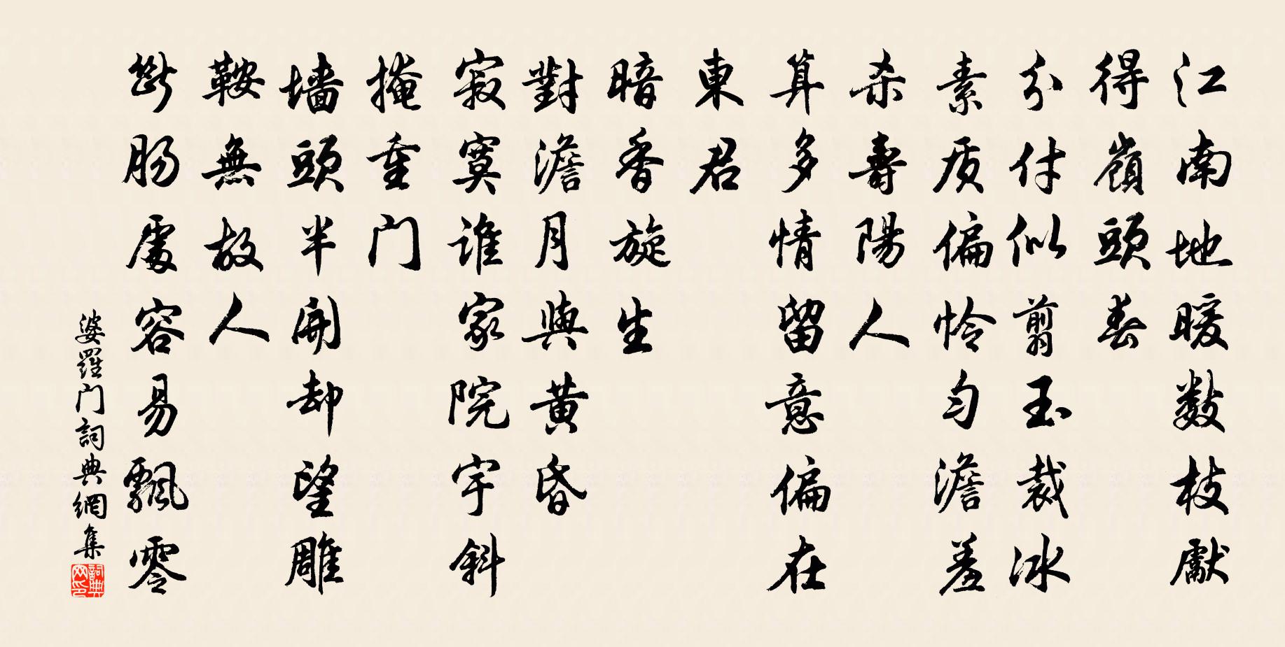 江南地暖,數枝先得嶺頭春。分付似、翦玉裁冰。