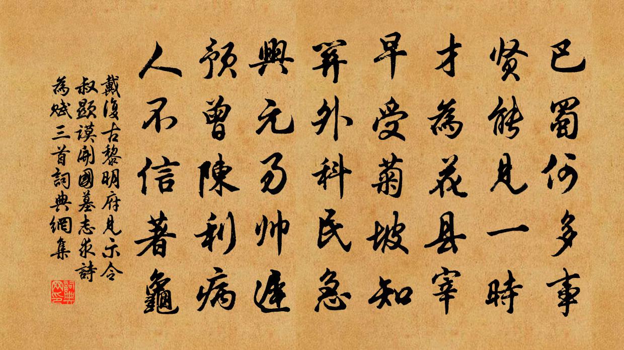 巴蜀何多事,賢能見一時。才為花縣宰,早受菊坡知。