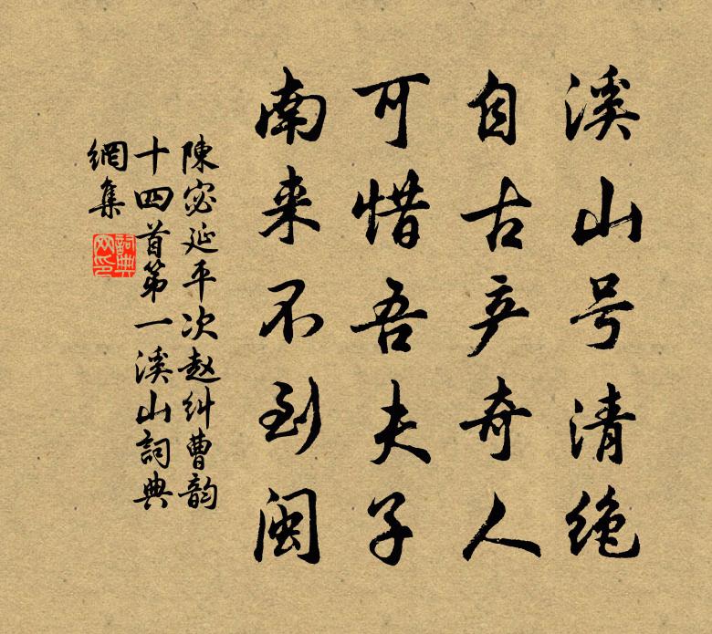 詩詞名句歷史字典書法欣賞書法字典國語詞典說文解字康熙字典古漢語字典標 題 作 者 詩 句 延平次趙糾曹韻十四首第一溪山作者:陳宓 朝代:宋代原文溪山號清絕,自古產奇人。可惜吾夫子,南來不到閩。詩詞問答問:《延平次趙糾曹韻十四首第一溪山》的作者是誰?答:陳宓問:該詩寫於哪個朝代?答:宋代書法欣賞延平次趙糾曹韻十四首第一溪山書法作品詩詞推薦書事十絕曾惇〔宋代〕淮畔風塵自此清,斯人還喜見昇平。田家盡說今年好,要雨雨來晴便晴。臥病雜題陸游〔宋代〕鷗鷺馴亭沼,琴書悅性靈。身叨鄉祭酒,孫為國添丁。煙浦收菰菜,秋山斸茯苓。虛名吾所薄,未應少微星。次韻子瞻二月十日雪蘇轍〔宋代〕春雪漫天密又稀,勾芒失據走靈威。故欺貧窶冬裘盡,巧助遨遊酒盞飛。林下細花添百草,階前輕素剪新機。老農頌古五首釋如琰〔宋代〕示疾毗耶方丈,文殊亦難近傍。看來無藥可醫,只是忌口為上。滿庭芳長筌子〔元代〕老氏真機,如來祖印,明明象帝之先。不生不滅,端的至幽玄。一派清風匝地,迷雲散、皓月當天。君知否,寥寥瀧岡曾豐〔宋代〕堂堂馬鬣封,清淑鞠其中。庚戌歲行遠,熙寧恩數空。石羊委荒草,木鶴矯清風。弔古淒相慨,蒼然十八公。金山修磚岸釋普度〔宋代〕長江萬里涌金鰲,屹立中流氣勢豪。直下放教根腳穩,任教八面起風濤。黃牛峽廟陸游〔宋代〕三峽束江流,崖谷互吐納。黃牛不負重,雲表恣蹴蹋。吳船與蜀舸,有請神必答。誰憐馬遭刵,百歲創未合。柂師贈卜道人二首袁燮〔宋代〕道人遍閱世間人,休咎先知若有神。多少媸妍歸藻鑒,只緣唐許是前身。朝中措史浩〔宋代〕凍雲著地靜無風。簌蔌墜遙空。無限人間險穢,一時為爾包容。憑高試望,樓台改觀,山徑迷蹤。唯有碧江千里,和趙尚書無辯詩吳泳〔宋代〕夫子動以易,孟軻性其天。或毀或沮之,於我何加焉。天地猶有憾,伊人得無言。笑彼狥人者,區區欲求全。郊廟歌辭。周郊祀樂章。感順樂佚名〔唐代〕明君陳大禮,展幣祀圓丘。雅樂聲齊發,祥雲色正浮。論詩三十首·十一元好問〔金代〕眼處心聲句自神,暗中摸索總非真。畫圖臨出秦川景,親到長安有幾人?紀行詩周伯琦〔元代〕東坊尚平地,近嶺晝生寒。拔地數千丈,凌空十八盤。飛泉鳴亂石,危磴護重關。俯視人寰隘,真疑長羽翰。聞鳩有感趙蕃〔宋代〕可憐鳩拙安無棲,雨來逐婦晴呼歸。我行願晴不願雨,憂樂殆與鳩同機。長安通衢多顯位,長江大艑謀崇利。我圖和謝君直新除史館檢閱釋道璨〔宋代〕久矣常峨豸角冠,未應上綴史臣班。名高自是難推去,才大如何愛得閒。齋閣不須垂絳帳,精神留取上蓬山。散人喜雪二首曾鞏〔宋代〕雜雨零初急,因風灑更狂。英華傾月窟,光氣瀉天滿。宛轉花飛密,紆餘舞熊長。化材隨大小,成器任圓方。秀已開元觀閒居,酬吳士矩侍御三十韻(十八時作)元稹〔唐代〕靜習狂心盡,幽居道氣添。神編啟黃簡,秘籙捧朱簽。爛熳煙霞駐,優遊歲序淹。登壇擁旄節,趨殿禮鬍髯。醮起題象耳山寺文同〔宋代〕轉谷索岩路始窮,隔林遙望一門通。溪山俱在見聞外,台殿盡藏懷抱中。像閣罘罳明海日,經幢瓔珞撼天風。勞生感花吳芾〔宋代〕年來老病苦相侵,已是傷春不自禁。那更雨聲長在耳,連朝滴碎惜花心。名句推薦重陽過後,西風漸緊,庭樹葉紛紛。晏殊《少年游·重陽過後》 富貴本無根,盡從勤里得。馮夢龍《醒世恆言·卷三十五》 誰忍窺河漢,迢迢問鬥牛。孟浩然《他鄉七夕》 寧可食無肉,不可居無竹。蘇軾《於潛僧綠筠軒》 醉別西樓醒不記。春夢秋雲,聚散真容易。晏幾道《蝶戀花·醉別西樓醒不記》 渺萬裡層雲,千山暮雪,隻影向誰去?元好問《摸魚兒·雁丘詞 / 邁陂塘》 垂釣板橋東,雪壓蓑衣冷。釋敬安《題寒江釣雪圖》 人間四月芳菲盡,山寺桃花始盛開。白居易《大林寺桃花》 勸君頻入醉鄉來,此是無愁無恨處。晏幾道《玉樓春·雕鞍好為鶯花住》 登車宿遷北,萬頃鋪瓊田。陸文圭《宿遷道中遇雪》