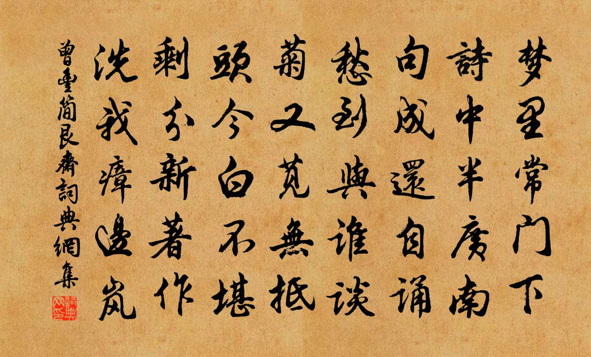 詩詞名句歷史字典書法欣賞書法字典國語詞典說文解字康熙字典古漢語字典標 題 作 者 詩 句 簡艮齋作者:曾豐 朝代:宋代簡艮齋原文夢裡常門下,詩中半廣南。句成還自誦,愁到與誰談。菊又莧無抵,頭今白不堪。剩分新著作,洗我瘴邊嵐。詩詞問答問:簡艮齋的作者是誰?答:曾豐問:簡艮齋寫於哪個朝代?答:宋代曾豐簡艮齋書法欣賞簡艮齋書法作品詩詞推薦滎陽唐高祖太宗石刻像蘇轍〔宋代〕誰言膚寸像,勝力妙人天。欲療眾生病,陰扶濟世賢。身微須覆護,眼淨照幾先。豈為成功報,猶應歷劫緣。寄趙大資蘇泂〔宋代〕劉向拳拳老更忠,外家恩澤盡侯封。分明社稷蒼生計,只在平居畎畝中。石塘歌呈吳侍郎王奕〔宋代〕誰剜太素一拳石,石殼皴皺涵芳塘。塘中清淑族查滓,積成土塊如浮航。三千界分有南贍,休王帝伯更皇王。堯衢暮春閒居示同志權德輿〔唐代〕避喧非傲世,幽興樂郊園。好古每開卷,居貧常閉門。曙鍾來古寺,旭日上西軒。稍與清境會,暫無塵事煩。靜看逍遙詠宋太宗〔宋代〕靈元物象向天涯,古往今來聖事夸。無礙智通精進心,研窮理路互交加。偈頌六十七首釋原妙〔宋代〕急水灘頭泊小舟,切須牢把遮繩頭。驀然繩斷難迴避,直到通身血迸流。古風其四十二李白〔唐代〕搖裔雙白鷗。鳴飛滄江流。宜與海人狎。豈伊雲鶴儔。寄形宿沙月。 沿芳戲春洲。吾亦洗心者。忘機從爾游。過甓社諸湖,進退格,東西長七十里,南北闊楊萬里〔宋代〕為愛淮中掌似平,忽逢巨浸卻心驚。怪來萬頃不生浪,凍合五湖都是冰。碧玉湖寬容我到,白銀地滑沒人行。茲游送楊帥赴詔敖陶孫〔宋代〕謂公目光謝牛背,分視赤子未脫繃。謂公足跡囁龍尾,公守凍壁如痴蠅。看公進退無一可,公欲自判何方憑。邇來批葉翹諫書紙尾王繼鵬〔唐代〕春色曾看紫陌頭,亂紅飛盡不禁愁。人情自厭芳華歇,一葉隨風落御溝。郴江百詠並序郴江阮閱〔宋代〕不分涓滴溉田疇,只有重灘礙巨舟。險似瞿塘並贛水,豈能如鑒瀉清流。和陳希舜濁醪二首又次為謀深遠之作一首陽枋〔宋代〕人心顯者道心微,體認深時始得知。若不沈潛梅至理,雖多言語亦奚為。范百嘉百歲昆仲輓詞二首蘇轍〔宋代〕季子尤高爽,顏家早哭回。白頭生便爾,黃壤遽相催。舊草誰收拾,新松利插栽。悲傷有伯氏,諸子尚嬰孩。拾得古硯姚合〔唐代〕僻面愛古面物,終歲面求不獲。面昨朝得古硯,黃河灘之側。念此黃河中,應有昔人宅。宅亦作流水,斯硯未變易踏莎行王以寧〔宋代〕我自山中,漁樵冷族。一丘一壑平生熟。朅來江海寄餘生,心兵語阱頻奔北。九里靈河,十分光燭。分輝借潤須鄰酬楊侍郎憑見寄劉禹錫〔唐代〕十年毛羽摧頹,一旦天書召回。看看瓜時欲到,故侯也好歸來。論俗十二首劉子翬〔宋代〕愚氓擾潢池,囏難亦常態。簪紳有包藏,事異吁可怪。豺聲久伺亂,鯨戮終何悔。游言張凶焰,巧諜移機會。初如病題二首徐鉉〔唐代〕人間多事本難論,況是人間懶慢人。不解養生何怪病,已能知命敢辭貧。向空咄咄煩書字,與世滔滔莫問津。金馬江上別劉駕戴叔倫〔唐代〕天涯芳草遍,江路又逢春。海月留人醉,山花笑客貧。離杯傾祖帳,征騎逐行塵。回首風流地,登臨少一人。用天予貢院韻以餞行色吳芾〔宋代〕直氣如君世莫雙,笑人老死利名場。一言齟齬身雖去,萬口咨嗟道愈光。舌在何妨居澤國,時來會見佐岩廊。人間名句推薦紙灰飛作白蝴蝶,淚血染成紅杜鵑。高翥《清明日對酒》 吏不治則亂,農事緩則貧。墨子《墨子·39章 非儒(下)》 疑行無名,疑事無功。司馬遷《史記·七十列傳·商君列傳》 重重蕊葉相憐,似青帔艷妝神仙侶。曹勛《夾竹桃花·詠題》 酒賤常愁客少,月明多被雲妨。蘇軾《西江月·世事一場大夢》 白草黃沙。月照孤村三兩家。蔣氏女《減字木蘭花·題雄州驛》 樓頭小婦鳴箏坐,遙見飛塵入建章。王昌齡《青樓曲二首》 怕歌愁舞懶逢迎。妝晚托春酲。陸游《朝中措·代譚德稱作》 青冥浩蕩不見底,日月照耀金銀台。李白《夢遊天姥吟留別 / 別東魯諸公》 脅肩諂笑,病於夏畦。孟子《孟子·滕文公章句下·第七節》