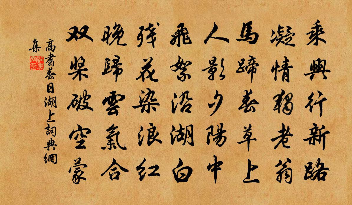 詩詞名句歷史字典書法欣賞書法字典國語詞典說文解字康熙字典古漢語字典標 題 作 者 詩 句 春日湖上作者:高翥 朝代:宋代春日湖上原文乘興行新路,凝情獨老翁。馬蹄春草上,人影夕陽中。飛絮沿湖白,殘花染浪紅。晚歸雲氣合,雙槳破空濛。詩詞問答問:春日湖上的作者是誰?答:高翥問:春日湖上寫於哪個朝代?答:宋代高翥春日湖上書法欣賞春日湖上書法作品詩詞推薦齋居春久感事遣懷白居易〔唐代〕齋戒坐三旬,笙歌發四鄰。月明停酒夜,眼暗看花人。賴學空為觀,深知念是塵。猶思閒語笑,未忘舊交親。久作苦雨范成大〔宋代〕折筍肥梅飣坐,涎蝸斗蟻上樑。雨工莫賈餘勇,留乖稻花半黃。和陶影答形蘇軾〔宋代〕丹青寫君容,常恐畫師拙。我依月燈出,相肖兩奇絕。妍媸本在君,我豈相媚悅。君如火上煙,火盡君乃別。我如次韻毛君將歸蘇轍〔宋代〕疏傅思歸不待時,孟軻出晝苦行遲。新詩尚許留章句,故事誰從問典彝。金馬尚應堪避世,石泉未信可忘飢。不才分得朝野多歡娛楊億〔宋代〕臯壞驚秋氣,倉箱有歲儲。梁園從臣頌,謝墅富人車。休沐新頒詔,珍符不絕書。天心游蠖濩,民樂在華胥。擊壤題刁光胤畫冊五羊圖宋孝宗〔宋代〕霜風不動節毛塵,同沐中原水草春。蘇武還朝典屬國,一時高爵豈庸人。過望亭六首楊萬里〔宋代〕晴河不似雨中看,晴里波紋只簟班。卻是雨河新樣巧,簟間織出小金鐶。懶性釋文珦〔宋代〕懶性難趨世,深本自養蒙。得閒真可樂,未死已知空。陰壑長留雪,喬林易有風。見聞今又絕,眼暗耳全聾。利路提刑亡伯郎中輓詞二首蘇轍〔宋代〕好學先鄉黨,登科復妙年。誰為耆舊傳,最處縉紳先。淪謝今亡矣,風流孰繼焉。魂歸食里社,世世仰仁賢。晚歲哭李實甫舒岳祥〔宋代〕帝閽嘗再叩,龍頷竟難攀。帙散螢千點,詩留豹一斑。人生會有極,吾道幾曾還。藏我擇軒記,名垂天地間。過漢州留房公湖一日戲和少陵韻二首李壁〔宋代〕西湖天下勝,賢相古來稀。汛掃邀明月,徜徉逗落暉。蒲深鸂鶒響,林靜鷓鴣飛。腳力應難遍,雕欄幸可依。初歸鹹寧宅坐北齋作二首宋庠〔宋代〕柳市西頭最遠坊,歸來先掃讀書堂。閒園別有風流意,無限苔花上石床。紹興祀大火十二首佚名〔宋代〕熒惑在天,惟火興合。翳神主火,純一不雜。作配熒惑,祀功則然。不腆之幣,於以告虔。渡揚子江孟浩然〔唐代〕桂楫中流望,京江兩畔明。林開揚子驛,山出潤州城。海盡邊陰靜,江寒朔吹生。更聞楓葉下,淅瀝度秋聲。憶秦娥曾覿〔宋代〕晴空碧。吳山染就丹青色。丹青色。西風搖落,可堪悽惻。世情冷暖君應識。鬢邊各自侵尋白。侵尋白。江南江北紹古辭鮑照〔南北朝〕橘生湘水側。菲陋人莫傳。逢君金華宴。得在玉幾前。三川窮名利。京洛富妖妍。恩榮難久恃。隆寵易衰偏。觀席木蘭花慢 滁州送范倅辛棄疾〔宋代〕老來情味減,對別酒,怯流年。況屈指中秋,十分好月,不照人圓。無情水,都不管,共西風只管送歸船。秋晚蓴詠史下王荊公陳普〔宋代〕兩鳥相酬聲沸天,治平重新一啼鵑。鴛鸞鷗鷺無棲處,緘口於今三百年。隱居雜興楊公遠〔宋代〕槎牙詩骨等梅臞,試啟青銅失故吾。啖蔗只應佳境近,解袍那想故人無。推排景物歸吟卷,安頓江山入畫圖。只此丁亥守當塗中夏有獻瑞麥者今日池中復得雙頭吳芾〔宋代〕嗟我百無能,此身仍老矣。濫此把一麾,何以慰千里。隴麥秀兩岐,池蓮綻雙蕊。斯事雖偶然,亦為邦人喜。名句推薦依舊桃花面,頻低柳葉眉。韋莊《女冠子·昨夜夜半》 霸圖今已矣,驅馬復歸來。陳子昂《燕昭王》 灼灼野花香,依依金柳黃。佚名《菩薩蠻·霏霏點點回塘雨》 禍福無門,唯人所召。左丘明《左傳·襄公·襄公二十三年》 暖風熏得遊人醉,直把杭州作汴州。林升《題臨安邸》 柳花驚雪浦,麥雨漲溪田。李賀《南園十三首》 塞上秋風鼓角,城頭落日旌旗。少年鞍馬適相宜。元好問《江月晃重山·初到嵩山時作》 人之愛子,罕亦能均;自古及今,此弊多矣。顏之推《顏氏家訓·教子篇》 滿地殘紅宮錦污,昨夜南園風雨。王安國《清平樂·春晚》 浮雲不系名居易,造化無為字樂天李忱《吊白居易》