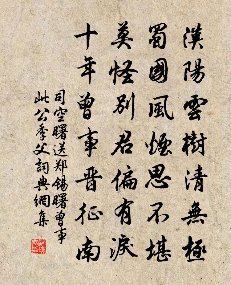 司空曙送鄭錫(曙曾事此公季父)書法欣賞