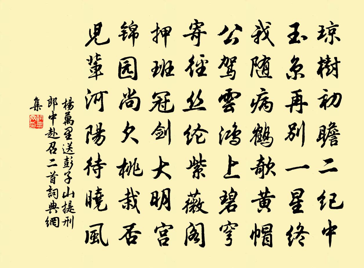 楊萬里送彭子山提刑郎中赴召二首書法欣賞