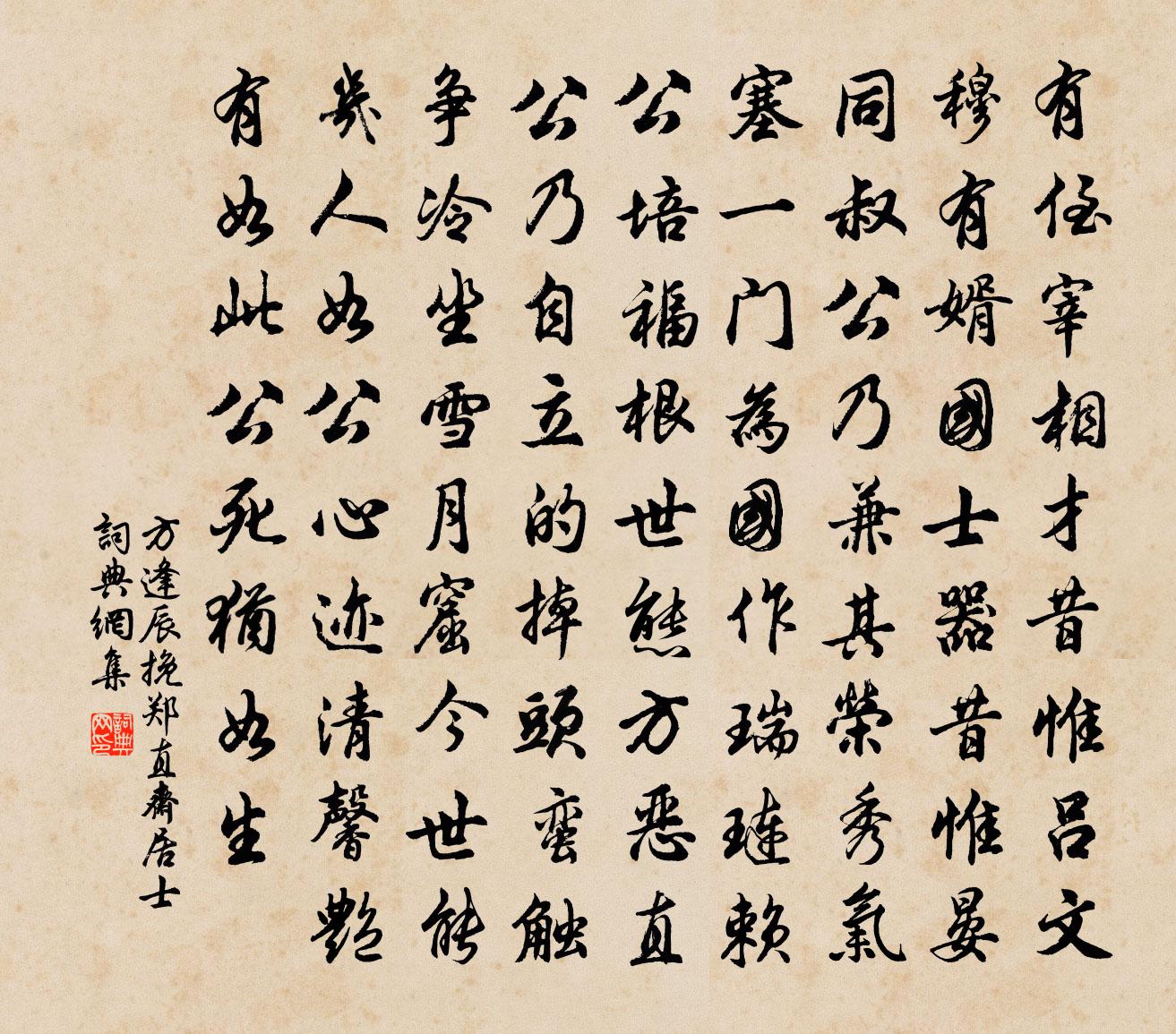 詩詞名句歷史字典書法欣賞書法字典國語詞典說文解字康熙字典古漢語字典標 題 作 者 詩 句 挽鄭直齋居士作者:方逢辰 朝代:宋代挽鄭直齋居士原文有侄宰相才,昔惟呂文穆。有婿國士器,昔惟晏同叔。公乃兼其榮,秀氣塞一門。為國作瑞璉,賴公培福根。世態方惡直,公乃自立的。掉頭蠻觸爭,冷坐雪月窟。今世能幾人,如公心跡清。馨艷有如此,公死猶如生。詩詞問答問:挽鄭直齋居士的作者是誰?答:方逢辰問:挽鄭直齋居士寫於哪個朝代?答:宋代方逢辰挽鄭直齋居士書法欣賞挽鄭直齋居士書法作品詩詞推薦句呂延嗣〔宋代〕擬向蒼梧叫虞舜,更於橘井訪蘇仙。沁園春 送鶴寄可與郎中張之翰〔元代〕鶴汝窗前來,與窗余相從,窗近乎一年。每座隅舉目,看揮大字,窗前側耳,聽誦佳篇。月白風清,天高露下,不華山慶雲見佚名〔唐代〕聖主祠名岳,高風發慶雲。金柯初繚繞,玉葉漸氛氳。氣色含珠日,光明吐翠雰。依稀來鶴態,仿佛列仙群。萬樹閒吟四首邵雍〔宋代〕居洛 * 載,投心唯二三。相逢各白首,共坐多清談。人事已默定,世情曾久諳。酒行勿相逼,徐得奉醺酣。寄題王國華環秀樓二首楊萬里〔宋代〕近山遠岫不知重,暖翠晴嵐只滿空。珍重主人將好手,盡驅秀色入樓中。丘文定公輓詞樓鑰〔宋代〕初擬文翁化,誰知懷遠圖。廟謨專制閫,世將易兵符。養虎竟遺患,斷蛇燦不殊。寧同死諸葛,空恨失吞吳。燈夕不出偶成蔡戡〔宋代〕晚歲光陰只自驚,眼中樂事嘆何曾。雕鞍繡幰多遊子,紙帳蒲龕一病僧。塵翳掃除方寸地,光明散作百千燈。維摩泝河曾鞏〔宋代〕客舟泝河西北行,日夜似與河流爭。不知洶洶竟何為,怒意彼此何時平。但疑天地送秋至,惡雨疾風相觸聲。我病小圃茅亭初成即事十絕句程公許〔宋代〕未能手劍血長鯨,只合瓜田老邵平。斗粟驅人成底事,漫將吟嘯寄高情。春日經湖上友人別業章碣〔唐代〕何處狂歌破積愁,攜觴共下木蘭舟。綠泉濺石銀屏濕,黃鳥逢人玉笛休。天借煙霞裝島嶼,春鋪錦繡作汀洲。一年謁蔣帝廟韋莊〔唐代〕建業城邊蔣帝祠,素髯清骨舊風姿。江聲似激秦軍破,山勢如匡晉祚危。殘雪嶺頭明組練,晚霞檐外簇旌旗。金陵仁宗皇帝輓辭四首王安石〔宋代〕同執群方至,因山十月催。永違天日表,空有肺肝摧。帳殿流蘇卷,鈴歌薤露哀。宮中垂曉軔,西去不更回。鬆化為石(近聞金華山古鬆化為石)齊己〔唐代〕盤根幾聳翠崖前,卻偃凌雲化至堅。乍結精華齊永劫,不隨凋變已千年。逢賢必用鐫辭立,遇聖終將刻印傳。肯似八月十日同潘王游曾城和潘韻陳宓〔宋代〕羌廬聚處秋將半,山色湖光翠映璃。河漢乘槎端可到,蓬壺跨海屹難移。織織天外知商舶,獵獵沙頭見酒旗。欲豁水仙子·樂清簫台喬吉〔元代〕枕蒼龍雲臥品清簫,跨白鹿春酣醉碧桃,喚青猿夜拆燒丹灶。二千年瓊樹老,飛來海上仙鶴。紗巾岸天風細,玉笙道經柘溪靜林寺邵棠〔宋代〕青山萬疊倚晴空,中有招提一徑通。衲子不關塵世事,黃花紅葉共秋風。登裴公亭借用杜牧之登齊山詩韻二首趙善括〔宋代〕春晚風花片片飛,登臨共惜景熹微。人生待足誰如意,官況苦無胡不歸。且向園林窮勝事,更憑山水發清暉。酒酣壬戌冬至胡季亨伯信仲威叔賢相過洛花一朵正周必大〔宋代〕霽色舒圭景,寒醅艷玉杯。關譏方且閉,國色已先開。幸有佳賓客,將何助笑咍。共言長至日,底事矮人來。白雪米友仁〔宋代〕洞天晝永,正中和時候,涼飆初起。羽扇綸巾,雲流處,水繞山重雲委。好雨新晴,綺霞明麗,全是丹青戲。豪攘感山十詠慈航姚勉〔宋代〕佛手撐慈航,尚欲濟我人。寄語作舟者,江濤渺無津。名句推薦妝罷低聲問夫婿,畫眉深淺入時無。朱慶餘《近試上張籍水部 / 近試上張水部 / 閨意獻張水部》 斷虹霽雨,淨秋空,山染修眉新綠。黃庭堅《念奴嬌·斷虹霽雨》 一水護田將綠繞,兩山排闥送青來王安石《書湖陰先生壁》 斜陽獨倚西樓。遙山恰對簾鉤。晏殊《清平樂·紅箋小字》 耐寒唯有東籬菊,金粟初開曉更清。白居易《詠菊》 行行無別語,只道早還鄉。袁凱《京師得家書》 蓋鍾子期死,伯牙終身不復鼓琴。班固《漢書·傳·司馬遷傳》 清風朗月,輒思玄度。劉義慶《世說新語·言語》 鞭影落春堤,綠錦鄣泥卷。納蘭性德《生查子·鞭影落春堤》 不是誠齋無月,隔一林修竹。楊萬里《好事近·七月十三日夜登萬花川谷望月作》