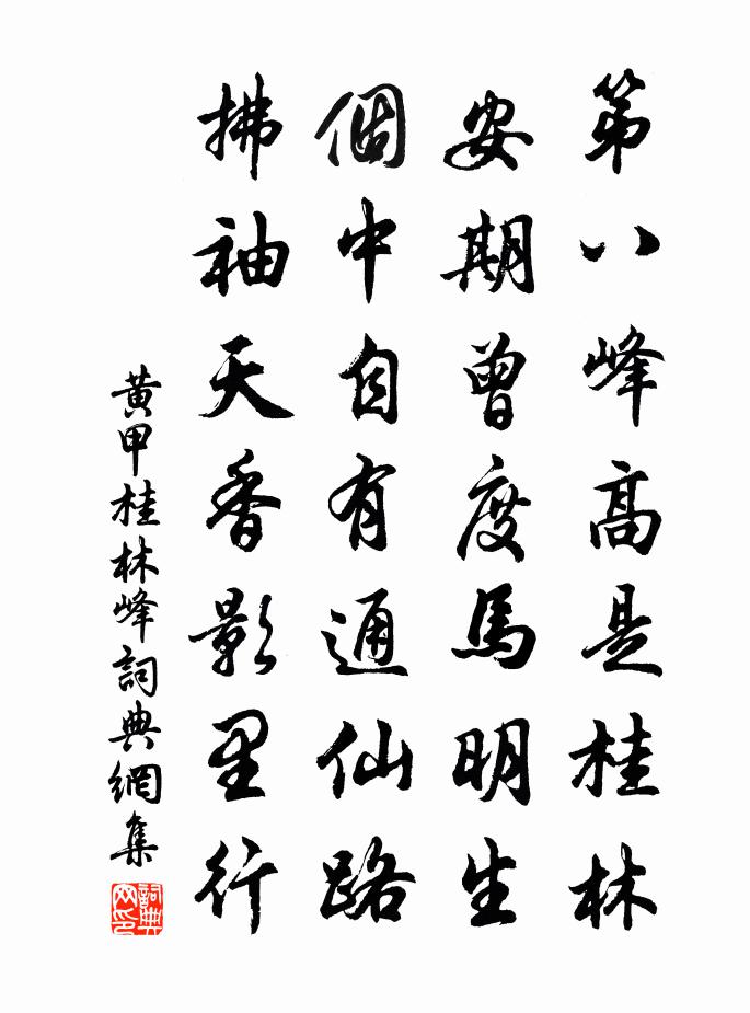 詩詞名句歷史字典書法欣賞書法字典國語詞典說文解字康熙字典古漢語字典標 題 作 者 詩 句 桂林峰作者:黃甲 朝代:宋代桂林峰原文第八峰高是桂林,安期曾度馬明生。箇中自有通仙路,拂袖天香影里行。詩詞問答問:桂林峰的作者是誰?答:黃甲問:桂林峰寫於哪個朝代?答:宋代黃甲桂林峰書法欣賞桂林峰書法作品詩詞推薦鵲橋仙·一竿風月陸游〔宋代〕一竿風月,一蓑煙雨,家在釣台西住。賣魚生怕近城門,況肯到紅塵深處?潮生理棹,潮平系纜,潮落浩歌歸去。龜堂雜興陸游〔宋代〕二三鄰曲偶相尋,小醉悠然臥竹陰。醒後自看還自笑,溪雲猶未是無心。句金梁之〔宋代〕寄語月淪朱逸士,他年同賞水仙花。夜入簡子古城劉言史〔唐代〕遠火熒熒聚寒鬼,綠焰欲銷還復起。夜深風雪古城空,行客衣襟汗如水。答問詩十二篇寄呈滿子權其二耒答鎛三首王令〔宋代〕我必為人用,不必用於人。若也責不耕,君其問諸田。踏莎行徐俯〔宋代〕素景將闌,黃花初笑。登高一望秋天杳。邀賓攜妓數能來,醉中贏得閒多少。佳氣氤氳,飛雲縹緲。竹林更著清江詠史上即墨大夫陳普〔宋代〕清淺蓬萊幾度桑,紛紛斫石底心腸。項梁劉季相逢日,即墨大夫頭未霜。一庵釋道璨〔宋代〕萬法須從皈處參,難將皈處與人談。檐頭昨夜風和雨,說得分明落二三。幾夜釋文珦〔宋代〕幾夜自聽松雪響,西峰道者不曾來。今朝擬得尋幽話,溪路清寒卻又回。頌一百則釋重顯〔宋代〕眼裡塵沙耳里土,千峰萬峰不肯住。落花流水太茫茫,剔起眉毛何處去。上湖田館南樓憶朱宴劉長卿〔唐代〕漂泊日復日,洞庭今更秋。白雲如有意,萬里望孤舟。何事愛成別,空令登此樓。天光映波動,月影隨江流。鶴唳感皇恩(庚申為大兒壽)丘崈〔宋代〕時節近中秋,桂花天氣。憶得熊羆夢呈瑞。向來三度,恨被一官縈系。今朝稱壽,也休辭醉。斑衣戲彩,薄羅初試連理枝楊維楨〔元代〕主家連理木,昨夜一枝零。野藤沿別樹,相托萬年青。天關回到世吟許學士〔唐代〕九霄雲路奇哉險,曾把沖身入太和。今日東歸渾似夢,望崖回首隔天波。拜先外舅墓坐雨用趙景文韻二首陳著〔宋代〕說著韜翁淚泫然,得來展墓及春先。松楸舊壠驚如許,風雨寒宵坐有緣。餘味淡交微醉酒,回頭流俗未烹鮮。明朝僑寄山居霍然幾月凡見之於目聞之於耳者輒綴王志道〔宋代〕樹頭桑葉似穿錢,準擬今年賤似前。誰信天公難預料,今年卻貴似常年。合江亭范成大〔宋代〕石鼓郁嵯峨,截然踞滄洲。有如古盟主,勤王會諸侯。蒸湘伯叔國,稟命會葵丘。敢不承載書,戮力朝宗周。混為春日雜詠九首李彌遜〔宋代〕幽棲足春事,晴日苦相催。屐齒穿沙隱,筇須礙竹回。風光初轉蕙,殘雪欲欺梅。自是經過少,柴門日日開。宋城者謳先秦無名〔先秦〕睅其目。皤其腹。棄甲而復。于思于思。棄甲復來。從其有皮。丹漆若何。苔錢三首釋智圓〔宋代〕鑪冶祇應憑陋巷,富饒應不是豪家。晚來雨歇茆堂外,散在閒庭買落花。名句推薦譬道之在天下,猶川谷之於江海。老子《老子·道經·第三十二章》 山上層層桃李花,雲間煙火是人家。劉禹錫《竹枝詞九首·其九》 名不正,則言不順;言不順,則事不成孔子弟子《論語·子路篇》 江闊雲低、斷雁叫西風。蔣捷《虞美人·聽雨》 漢月垂鄉淚,胡沙費馬蹄。岑參《磧西頭送李判官入京》 朝看水東流,暮看日西墜。錢福《明日歌》 遙知湖上一樽酒,能憶天涯萬里人。歐陽修《春日西湖寄謝法曹歌》 先世之吏正,故其民篤;今世之吏邪,故其民薄。政弊而不行,令倦而不聽。班固《漢書·傳·公孫弘卜式兒寬傳》 望天王降詔,早招安,心方足。宋江《滿江紅·喜遇重陽》 繡面芙蓉一笑開,斜飛寶鴨襯香腮。李清照《浣溪沙·閨情》