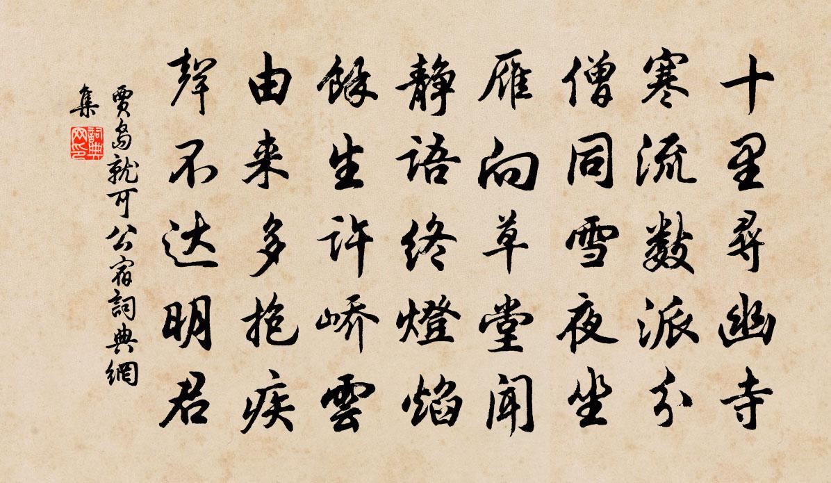 十里尋幽寺,寒流數派分。僧同雪夜坐,雁向草堂聞。
