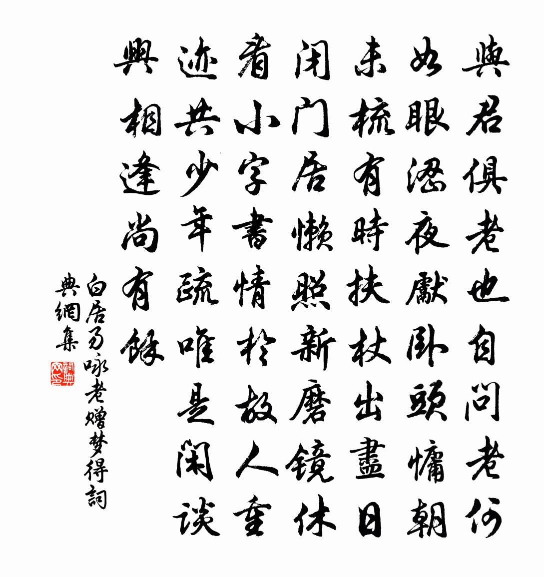 劉禹錫和白居易晚年都患眼疾、足疾,看書、行動多有不便,從這點上說,他們是同病相憐了,面對這樣的晚景,白居易產生了一種消極、悲觀的情緒,並且寫了這首《詠老贈夢得》一首給劉禹錫(字夢得)。 劉禹錫讀了白居易的詩,寫了《酬樂天詠老見示》回贈:“人誰不顧老,老去有誰憐?身瘦帶頻減,發稀帽自偏。廢書緣惜眼,多灸為隨年。經事還諳事,閱人如閱川。細思皆幸矣,下此便翛然。莫道桑榆晚,為霞尚滿天。”