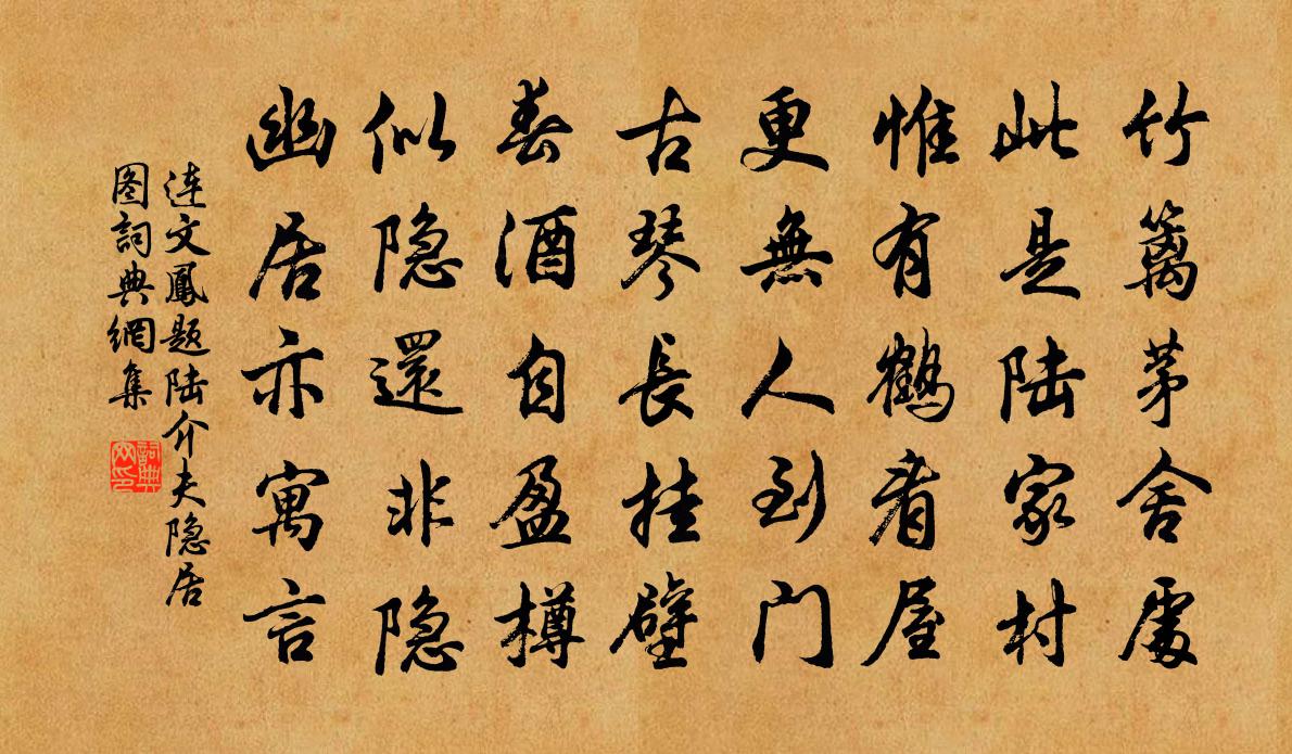 詩詞名句歷史字典書法欣賞書法字典國語詞典說文解字康熙字典古漢語字典標 題 作 者 詩 句 題陸介夫隱居圖作者:連文鳳 朝代:宋代題陸介夫隱居圖原文竹籬茅舍處,此是陸家村。惟有鶴看屋,更無人到門。古琴長掛壁,春酒自盈樽。似隱還非隱,幽居亦寓言。詩詞問答問:題陸介夫隱居圖的作者是誰?答:連文鳳問:題陸介夫隱居圖寫於哪個朝代?答:宋代連文鳳題陸介夫隱居圖書法欣賞題陸介夫隱居圖書法作品詩詞推薦和張純父霜月三首陳杰〔宋代〕天公戲劇高寒上,豈識人間有凜秋。八萬四千揮斧手,閒拋玉屑下瓊樓。感詠十解寄呈楊安撫白玉蟾〔宋代〕大隱在朝市,仙人好樓居。方平今白髮,未許見 * 。柳梢青張鎡〔宋代〕一望清溪。兩堤翠陰,半紙新詩。涼滿衣裳,香生筆硯,風動窗扉。月明撐過船兒。載龍玉、雙娥對吹。竹外山亭送費子歸武昌岑參〔唐代〕漢陽歸客悲秋草,旅舍葉飛愁不掃。秋來倍憶武昌魚,夢著只在巴陵道。曾隨上將過祁連,離家十年恆在邊。劍鋒菊花圖唐寅〔明代〕颯颯金飆拂素英,倚欄璚朵入杯明。秋光滿眼無殊品,笑傲東籬羨爾榮。柳營曲·嘆世馬謙齋〔元代〕手自搓,劍頻磨。古來丈夫天下多。青鏡摩挲,白首蹉跎,失志困衡窩。有聲名誰識廉頗?廣才學不用蕭何。忙忙送吳待制帥襄陽二首尤袤〔宋代〕欲將盤昏試餘鋒,故擁旗麾訖外庸。南峴北津形勝地,前羊後杜昔賢蹤。不妨倒載同民樂,自有輕裘折虜沖。努力偈三首釋自賢〔宋代〕不是心,不是佛,不是物。與君打破精靈窟,簸土飛揚無處尋,千山萬山突突兀。八聲甘州(送春韻)劉辰翁〔宋代〕看飄飄、萬里去東流,道伊去如風。便錦纜危潮,青山御宿,煙雨啼紅。愁是明朝酒醒,聽著返魂鍾。留得春如故句余湜〔宋代〕西母已回金殿冷,綠珠一墜玉樓空。歙縣歲寒堂蘇轍〔宋代〕檻外甘堂錦繡屏,長松何者擅亭名。浮花過眼無多日,勁節凌寒盡此生。暗長茯苓根自大,旋收金粉氣尤清。長官說謎三絕吳儆〔宋代〕奔波來往一生忙,方寸包藏不可量。用盡心機還骨立,為他人作嫁衣裳。烏鹽角行舒岳祥〔宋代〕山中一種烏鹽樹,剝皮為角開春路。牧童把去上牛吹,菸草茫茫沒遠陂。一聲兩聲兮桑青柘綠,三聲四聲兮麥綻秧再和文同〔宋代〕問子梯瞻,何江梯湖,乃心梯魏闕君豈梯無。胡為放浪檢束外,日與隱者相招呼。籃輿往往從以孥,靈運石壁無此秋日即事八首郭印〔宋代〕一片澄心似太清,浮雲了不礙虛明。夜深人寂渾無寐,時聽空庭落葉聲。松竹詹初〔宋代〕青翠春來未見奇,麗紅正是夭夭時。霜寒十月花開盡,只有松筠秀舊枝。參部至三山簡王宗教子文野二首仍寄觀潮拙稿王邁〔宋代〕別來雙鬢忽驚秋,一笑喔詩寬百憂。草舍繩樞聊爾爾,如何比得碧雲樓。中和樂九章總歌第九盧照鄰〔唐代〕明明天子兮聖德揚,穆穆皇后兮陰化康。登若木兮坐明堂,池濛汜兮家扶桑。武化偃兮文化昌,禮樂昭兮股肱良。入省陸游〔宋代〕點點輕花墮綠槐,翩翩羸馬犯黃埃。眼邊好句等閒過,夢裡故人時一來。玉塞請行狂故在,霜髭自照老相催。今朝送葉都官赴蜀州倅梅堯臣〔宋代〕每有人之蜀,先憑問海棠。徒知花底醉,不報樹頭芳。上馬秋風急,登山古路長。西南生片月,遙想見清光。名句推薦午夢扁舟花底,香滿西湖煙水。楊萬里《昭君怨·詠荷上雨》 黃師塔前江水東,春光懶困倚微風。杜甫《江畔獨步尋花·其五》 不畏浮雲遮望眼,自緣身在最高層。王安石《登飛來峰》 王師北定中原日,家祭無忘告乃翁。陸游《示兒》 恃人不如自恃也,明於人之為己者不如己之自為也。韓非及後人《韓非子·外儲說右下》 白髮悲花落,青雲羨鳥飛。岑參《寄左省杜拾遺》 求財恨不多,財多害自己。佚名《增廣賢文·上集》 親戚不附,無務外交。墨子《墨子·02章 修身》 飛雲當面化龍蛇,夭矯轉空碧。秦觀《好事近·夢中作》 尚想舊情憐婢僕,也曾因夢送錢財。元稹《遣悲懷三首·其二》