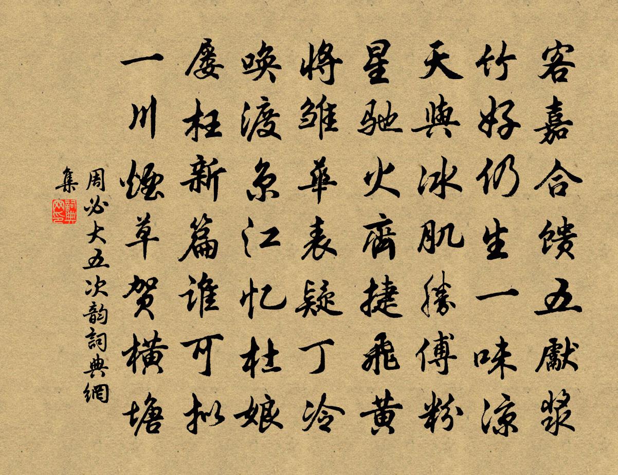 詩詞名句歷史字典書法欣賞書法字典國語詞典說文解字康熙字典古漢語字典標 題 作 者 詩 句 五次韻作者:周必大 朝代:宋代五次韻原文客嘉合饋五先漿,竹好仍生一味涼。天與冰肌勝傅粉,星馳火齊捷飛黃。將雛華表疑丁冷,喚渡京江憶杜娘。屢枉新篇誰可擬,一川菸草賀橫塘。詩詞問答問:五次韻的作者是誰?答:周必大問:五次韻寫於哪個朝代?答:宋代周必大五次韻書法欣賞五次韻書法作品詩詞推薦訴衷情 贈魏老王丹桂〔元代〕壽高由是耽家。斜日對餘霞。不覺盡成皓鬢,難得再如鴉。牙漸朽,眼蒙紗。少光華。殘年何異,雨打衰桐,風永嘉即事寄贛縣袁少府瓘張子容〔唐代〕山繞樓台出,谿通里閈斜。曾為謝客郡,多有逐臣家。海氣朝成雨,江天晚作霞。題書報賈誼,此濕似長沙。寄題何戢秀才琬琰堂張耒〔宋代〕幽人築淇澳,不與世相聞。獨攜千卷書,過於骨肉親。辛苦作室堂,插架如魚鱗。時時體不住,一遇千載人。山川春薺陸游〔宋代〕食案何蕭然,春薺花若雪;從今日老硬,何以供採擷?山翁垂八十,忍貧心似鐵,那須萬錢箸,養此三寸舌?軟炊夜思陸游〔宋代〕風掃浮雲作快晴,窗聲終夜雜簾聲。月明滿院鵲驚起,霜冷壓棲雞嬾鳴。名字虛稱舊朝士,門庭元是老書生。尚余賀新郎(代寄)周端臣〔宋代〕怕聽黃昏雨。到黃昏、陡頓瀟瀟,雨聲不住。香冷羅衾愁無寐,難奈淒淒楚楚。暗試把、佳期重數。樓外一行征雁湘中酬張十一功曹韓愈〔唐代〕休垂絕徼千行淚,共泛清湘一葉舟。今日嶺猿兼越鳥,可憐同聽不知愁。江城子(再和呈馬守)王庭珪〔宋代〕天回北斗欲中宵。屢移杓。客魂消。記得皇州,燈火虹成橋。異俗西南開萬里,冠帶盡,百蠻徭。盧溪太守未還朝蕙蘭芳引 秋思張玉娘〔元代〕星轉曉天,戍樓聽、單于吹徹。擁翠被香殘,霜杵尚喧落月。楚江夢斷,但帳底、暗流清血。看臂銷金釧,一寸眉枯樹韓愈〔唐代〕老樹無枝葉,風霜不復侵。腹穿人可過,皮剝蟻還尋。寄託惟朝菌,依投絕暮禽。猶堪持改火,未肯但空心。喜晴陸游〔宋代〕澤國風雨多,春盡尚裘褐;閉門不能出,飽受鳩婦聒。今朝雲忽歸,溝水清活活。偶為東園行,魚鳥間何闊?婦女初入西州境述懷陸游〔宋代〕我無飛仙術,御氣周八極;寸步常依人,艱哉萬里役。自行劍關南,大道平如席,日高徐駕車,薄暮亦兩驛。及茲瀟湘八景圖江天暮雪葉茵〔宋代〕痴雲貼水天四垂,寒鴉凍雀無樹棲。紛紛萬頃水花亂,光眩銀海迷東西。中有輕舠移斷浦,玉笠瓊蓑一漁父。鼓枻宿正覺寺曾季貍〔宋代〕古寺荒涼甚,秋風更颯然。殿焚猶有礙,僧老不知年。但可扶藜至,無因假榻眠。鍾魚久寂寞,誰施囊錢。蓬萊客馬鈺〔元代〕熬煎急。熬煎煎逼熬煎客。熬煎客。妻男魔障,妙玄牆隔。遇予便把清涼測。清涼路上難緣溺。難緣溺。氣通和氣戲答山人趙潁憶山居李復〔宋代〕綠髮年來改,相看憶去頻。青山不厭客,黃屨自迷塵。耳冷泉聲淡,松殘藥灶貧。白雲他日見,應問世間春。再病書懷呈仲良楊萬里〔宋代〕病中嫌雨又嫌晴,自是情懷未若平。兩日雨多端不惡,市聲洗盡只檐聲。釣魚姚寬〔宋代〕自小弄絲來,驚多去復回。沙頭晚風起,波上夕陽開。頌十玄談祖意釋印肅〔宋代〕十聖那能達此宗,要須歷劫道方通。饑寒不認燈為火,空守門前草屋中。兩翁歌陸游〔宋代〕君不廢見塞上失廢馬翁,馬廢去安知不為福;又不見新豐折臂翁,臂廢身全老鄉國。陸翁多難類兩翁,著廢滿屋身名句推薦何處合成愁。吳文英《唐多令·惜別》 以國為國,以天下為天下。劉向 編《六親五法》 銅鑄金鏞振紀綱,聲傳海外播戎羌。曹雪芹《交趾懷古》 玄都觀里桃千樹,儘是劉郎去後栽。劉禹錫《元和十年自朗州至京戲贈看花諸君子 / 玄都觀桃花》 以小人之慮,度君子之心。劉義慶《世說新語·雅量》 春思亂,芳心碎。惠洪《千秋歲·半身屏外》 得十良馬,不若得一伯樂;得十良劍,不若得一歐冶;得地千里,不若得一聖人。呂不韋《呂氏春秋·論·不苟論》 勞歌一曲解行舟,紅葉青山水急流。許渾《謝亭送別》 東風吹柳日初長,雨余芳草斜陽。秦觀《畫堂春·春情》 菡萏香銷翠葉殘,西風愁起綠波間。李璟《攤破浣溪沙·菡萏香銷翠葉殘》