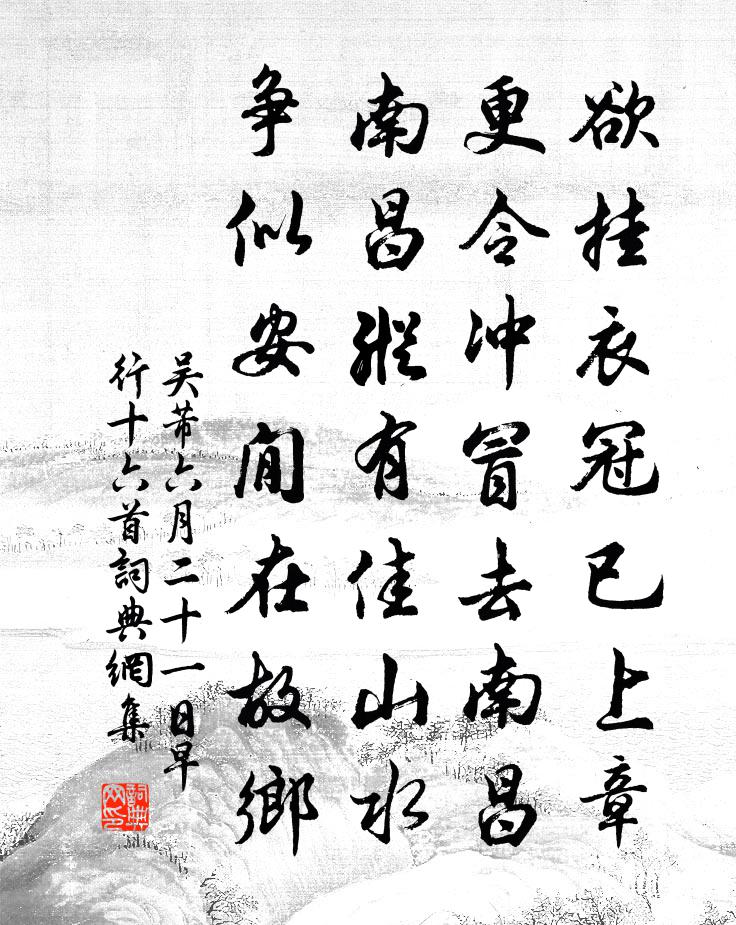 - 無限傷心夕照中,故國淒涼,剩粉余紅。