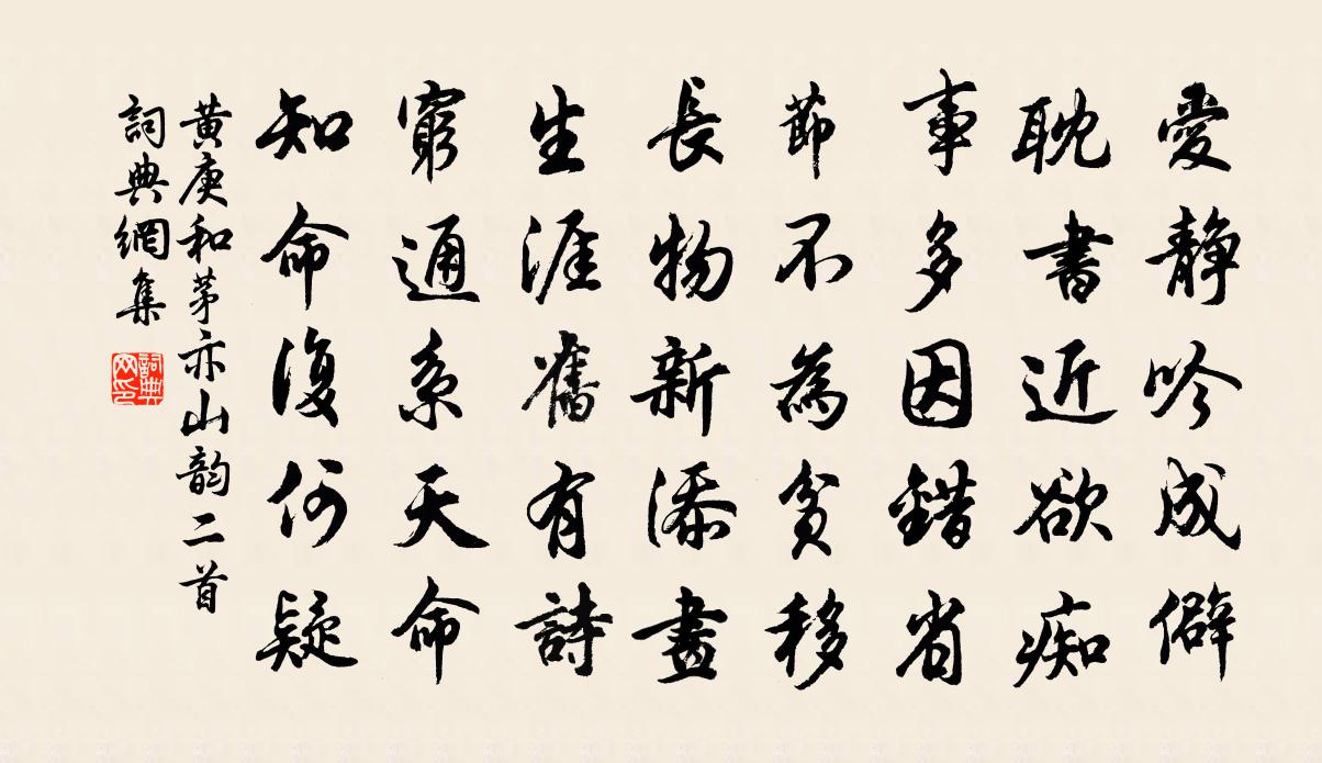 詩詞名句歷史字典書法欣賞書法字典國語詞典說文解字康熙字典古漢語字典標 題 作 者 詩 句 和茅亦山韻二首作者:黃庚 朝代:宋代和茅亦山韻二首原文愛靜吟成僻,耽書近欲痴。事多因錯省,節不為貧移。長物新添畫,生涯舊有詩。窮通系天命,知命復何疑。詩詞問答問:和茅亦山韻二首的作者是誰?答:黃庚問:和茅亦山韻二首寫於哪個朝代?答:宋代黃庚和茅亦山韻二首書法欣賞和茅亦山韻二首書法作品詩詞推薦訪印老宿寺中值雪曹勛〔宋代〕白項鴉兒啼遠林,怪來新冷透重衾。僮奴竊語若為去,雪滿前山數寸深。十報恩馬鈺〔元代〕一從得遇樂清貧。忻住環牆怕惹塵。鍊氣氣和神戀氣,願神神爽氣安神。宰公請我求追薦,小子慈心奉善因。救拔寄李群玉姚合〔唐代〕九衢名與利,無計擾閒人。道遠期輕世,才高貴重身。石脂稀勝乳,玉粉細於塵。骨換肌膚膩,心靈氣色真。嵩山江城子 和蒼蓋郭秀才韻尹志平〔元代〕乘車坐馬走東西。論玄規。入幽微。天下崢嶸,隨分立階梯。吾教流通天地*,無不喜,盡歸依。其中訊息與誰期感逝寄遠白居易〔唐代〕昨日聞甲死,今朝聞乙死。知識三分中,二分化為鬼。逝者不復見,悲哉長已矣。存者今如何?去我皆萬里。平生懷友人趙蹈中周南〔宋代〕妙質端能勁,除官正爾遲。和歌誰與共,摻別可無飢。俗學訾豪奪,家人怨絕痴。相看又秋暮,未敢嘆余衰。聞魯望游顏家林園病中有寄皮日休〔唐代〕一夜韶姿著水光,謝家春草滿池塘。細挑泉眼尋新脈,輕把花枝嗅宿香。蝶欲試飛猶護粉,鶯初學囀尚羞簧。分明漁家傲馬鈺〔元代〕七十光陰能幾日。大都二萬五千日。過了一日無一日。無一日。看看身似西山日。不做修行虛度日。悟來豈肯經終雁門太守行李賀〔唐代〕黑雲壓城城欲摧,甲光向日金鱗開。角聲滿天秋色里,塞上燕脂凝夜紫。半卷紅旗臨易水,霜重鼓寒聲不起。報君南鄉子 風琴王哲〔元代〕妙手喜新成。十六條弦別有名。掛在宮中雲外路,風迎。便許能招自己聲。不入俗人聆。占得仙音講道經。唯我傍句李若水〔宋代〕功名今晚矣。山花子·風絮飄殘已化萍納蘭性德〔清代〕風絮飄殘已化萍,泥蓮剛倩藕絲縈;珍重別拈香一瓣,記前生。人到情多情轉薄,而今真箇悔多情;又到斷腸回首聖明樂令狐楚〔唐代〕海浪恬月徼,邊塵靜異山。從今萬里外,不復鎖蕭關。有感蘇泂〔宋代〕滯不求通任布衣,山 * 上玩春暉。每逢到處花開謝,轉覺人生萬事非。春日雜詠九首李彌遜〔宋代〕役役炎涼態,悠悠道路賒。情懷知老大,夢幻閱紛華。攪思雲邊樹,供愁雨外花。生涯書一束,到處即為家。送李際可婺源學錄牟巘五〔宋代〕乃祖當年洗日功,特書賴有紫陽翁。此邦況是淵源地,好玩遺編振緒風。次韻王龜齡侍御不欺室喻良能〔宋代〕與玄雖非童九齡,向來亦既許攀鱗。從容撰屨飽言論,我知公直社稷臣。此心炯炯貫白日,何止不欺尋丈室。霜台定風波 三鄉光武廟,懷故人劉公景玄元好問〔金代〕熊耳東原漢故宮。登臨猶記往年同。底事愛君詩句好。解道。河山浮動酒杯中。存沒悠悠三十載。誰會。白頭孤客木蘭花慢(追和晁次膺)王之道〔宋代〕對春光淡沲,煙冉冉、日遲遲。漸紅入桃溪,青回柳陌,鶯刷金衣。差池。競求友去,惱佳人、幽恨上蛾眉。應念西江月李之儀〔宋代〕醉透香濃斗帳,燈深月淺迴廊。當時背面兩倀倀,何況臨風懷想。舞柳經春只瘦,遊絲到地能長。鴛鴦半調已無腸名句推薦世路之蓁蕪當剔,人心之茅塞須開。程登吉《幼學瓊林·卷四·花木》 行到小溪深處,有黃鸝千百。秦觀《好事近·夢中作》 便縱有千種風情,更與何人說?柳永《雨霖鈴·寒蟬淒切》 內官初賜清明火,上相閒分白打錢。韋莊《長安清明》 分明小像沉香縷,一片傷心欲畫難。納蘭性德《於中好·送梁汾南還為題小影》 小住京華,早又是,中秋佳節。秋瑾《滿江紅·小住京華》 白日不到處,青春恰自來。袁枚《苔》 休問梁園舊賓客,茂陵秋雨病相如。李商隱《寄令狐郎中》 言不可盡信,必揆諸理;事未可遽行,必問諸心。王永彬《圍爐夜話·第二OO則》 凍臉有痕皆是血,酸心無恨亦成灰。曹雪芹《詠紅梅花得“梅”字》