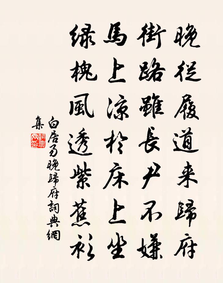 晚從履道來歸府,街路雖長尹不嫌。馬上涼於床上坐,綠槐風透紫蕉衫。