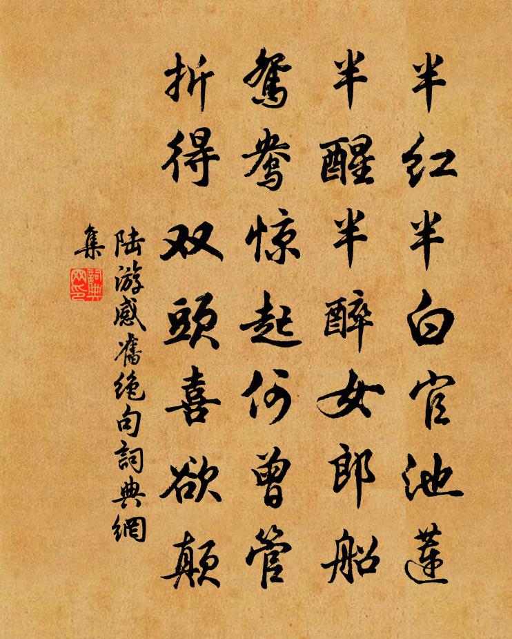 半紅半白官池蓮,半醒半醉女郎船。鴛鴦驚起何曾管,折得雙頭喜欲顛。