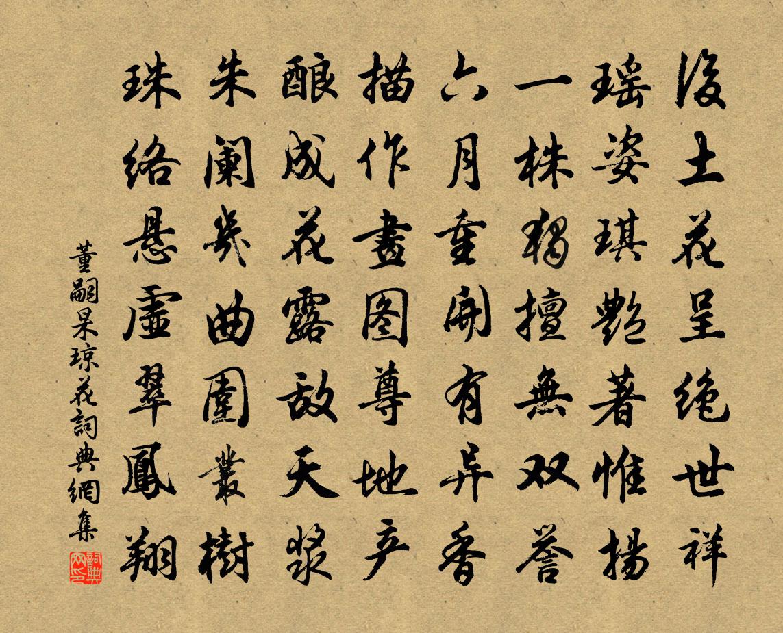 詩詞名句歷史字典書法欣賞書法字典國語詞典說文解字康熙字典古漢語字典標 題 作 者 詩 句 瓊花作者:董嗣杲 朝代:宋代瓊花原文后土花呈絕世祥,瑤姿琪艷著惟揚。一株獨擅無雙譽,六月重開有異香。描作畫圖尊地產,釀成花露敵天漿。朱闌幾曲圍叢樹,珠絡懸虛翠鳳翔。詩詞問答問:瓊花的作者是誰?答:董嗣杲問:瓊花寫於哪個朝代?答:宋代董嗣杲瓊花書法欣賞瓊花書法作品詩詞推薦七夕韋應物〔唐代〕人世拘形跡,別去間山川。豈意靈仙偶,相望亦彌年。夕衣清露濕,晨駕秋風前。臨歡定不住,當為何所牽。村舍陸游〔宋代〕山高正對燒畲火,溪近時聞戽水聲。破屋已斜猶可住,老牛雖瘠尚能耕。木蘭花慢 贈吹觱篥者張嘴兒暨乃婦田氏合曲元好問〔金代〕要新聲陶寫,奈聲外有聲何。愴銀字安清,珠繩瑩滑,怨感相和。風流故家人物,記諸郎、吹管念奴歌。落日邯鄲折楊柳歌辭五首佚名〔南北朝〕上馬不捉鞭,反折楊柳枝。蹀座吹長笛,愁殺行客兒。腹中愁不樂,願作郎馬鞭。出入擐郎臂,蹀座郎膝邊。放馬次韻宋構朝請歸守彭城蘇轍〔宋代〕得郡迎親願不違,書來無復寄當歸。馬馳未覺西南遠,烏哺何辭日夜飛。湖水欲平官舍好,茶征初復訟氓稀。平反拄笏亭晚望范成大〔宋代〕林泉隨處有清涼,山繞闌乾客自忙。溪雨不飛虹尚飲,亂蟬高柳滿斜陽。二月四日雪梅堯臣〔宋代〕前日春風初擺條,昨夜雪飛深一尺。北帝及臘不行令,東皇發煦遭爾厄。侵時奪氣四時錯,欲問上天何不責。天高酬葉縣劉明府避地廬山言懷詒鄭錄事昆季苟尊師兼見贈之吳筠〔唐代〕明哲良罕遇,遇君輒思齊。挺生著天爵,自可析人珪。河洛初沸騰,方期掃虹霓。時命竟未合,安能親鼓鼙。從此金丹詩四十八首張繼先〔宋代〕瞥然光景幾時休,出入輪迴去復收。只為含痴緣底事,不思清靜學真修。虎龍便是升天駕,鉛汞元為出世舟。多少送僧歸廬山趙嘏〔唐代〕禪棲忽憶五峰游,去著方袍謝列侯。經啟樓台千葉曙,錫含風雨一枝秋。題詩片石侵雲在,洗缽香泉覆菊流。卻憶冬夜讀几案間雜書得六言二十首劉克莊〔宋代〕巢居吸景休糧,壁觀入定放光。三萬里隔弱水,六千劫坐道場。山寺題壁羊士諤〔唐代〕物外真何事,幽廊步不窮。一燈心法在,三世影堂空。山果青苔上,寒蟬落葉中。歸來還閉閣,棠樹幾秋風。天開畫樓圖白玉蟾〔宋代〕層檐疊巘入蒼冥,千山萬山相送迎。晴雲一抹收未了,溪尾更濯餘霞明。化工朝暮費點染,丹青變態隨深淺。憑欄題王校書山齋劉滄〔唐代〕猿鳥無聲晝掩扉,寒原隔水到人稀。雲晴古木月初上,雪滿空庭鶴未歸。藥囿地連山色近,樵家路入樹煙微。棲遲詠史下慕容恪陳普〔宋代〕傅說濟川空道在,彥方販鬻嘆時難。年來惟有樽空慮,一任滔滔溉倒瀾。情詩其十三倉央嘉措〔清代〕明眸皓齒艷無雙,比擬圓月兩相仿。惆悵嬋娟多寂寞,歡情只供一夜長。更漏子馮延巳〔唐代〕雁孤花飛,人獨花坐,看卻花一秋空過花。瑤草短,菊花殘,蕭條漸向寒。簾幕里,青苔地,誰信閒愁如醉。星移西江月薛式〔宋代〕一氣初回遇朔,鼎中神水溫溫。剛柔相會氣均勻。妙在無過渾沌。八卦循回循繞,推排九竅追奔。東西沈靜合朝昏寄毛都官張伯玉〔宋代〕寄問副車毛國鎮,別來風味久如何。蓬萊閣上誰同飲,宛委山前幾番歌。應向蘭亭摛彩筆,曾教西子畫清蛾。若還鵲橋仙·七夕送陳令舉蘇軾〔宋代〕緱山仙子,高清雲渺,不學痴牛騃女。鳳簫聲斷月明中,舉手謝、時人慾去。客槎曾犯,銀河微浪,尚帶天風海雨名句推薦驅馬天雨雪,軍行入高山。杜甫《前出塞九首》 本理則國固,本亂則國危。管仲《管子·霸言》 似此星辰非昨夜,為誰風露立中宵。黃景仁《綺懷》 滿地殘紅宮錦污,昨夜南園風雨。王安國《清平樂·春晚》 縱使有花兼有月,可堪無酒又無人。李商隱《春日寄懷》 永豐柳,無人盡日飛花雪。張先《千秋歲·數聲鶗鴂》 雲間連下榻,天上接行杯。李白《與夏十二登岳陽樓》 風起,雪飛炎海變清涼。蘇軾《定風波·南海歸贈王定國侍人寓娘》 芳樹籠秦棧,春流繞蜀城。李白《送友人入蜀》 行舟逗遠樹,度鳥息危檣。陰鏗《渡青草湖》