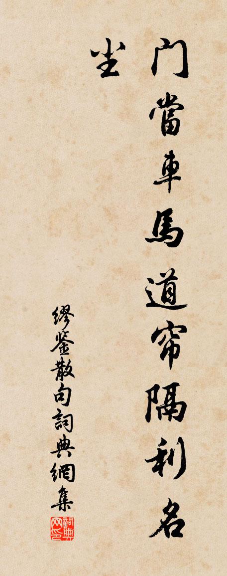 詩詞名句歷史字典書法欣賞書法字典國語詞典說文解字康熙字典古漢語字典標 題 作 者 詩 句 句作者:繆鑒 朝代:宋代句原文門當車馬道,簾隔利名塵。詩詞問答問:句的作者是誰?答:繆鑒問:句寫於哪個朝代?答:宋代繆鑒句書法欣賞句書法作品詩詞推薦詔授同州刺史病不赴任因詠所懷白居易〔唐代〕同州慵不去,此意復誰知。誠愛俸錢厚,其如身力衰。可憐病判案,何似醉吟詩?勞逸懸相遠,行藏決不疑。徒煩舟中作陸游〔宋代〕山蔬藥曲滿箸香,超然下視太官羊。更憑語與劉文叔,豆鬻從來味最長。別僧(一作留別蘭若僧)陳琡〔唐代〕行若獨輪車,常畏大道覆。止若員底器,常恐他物觸。行止既如此,安得不離俗。蜀僧明操思歸書龍丘子壁蘇軾〔宋代〕久厭勞生能幾日,莫將歸思擾衰年。片雲會得無心否,南北東西只一天。景祐祀社稷三首佚名〔宋代〕五祀之本,百貨何極。道著開闢,惠周動植。國崇美彀,民資力檣。奠獻惟寅,神靈來格。南中書來劉禹錫〔唐代〕君書問風俗,此地接炎州。淫祀多青鬼,居人少白頭。旅情偏在夜,鄉思豈唯秋。每羨朝宗水,門前盡日流。萍趙企〔宋代〕斑斑染黛色差勻,個個微圓類綠萍。不比榆錢鋪砌白,未饒荷葉點溪青。陶鎔盡出春工巧,磨就多應雨夜零。好與妻兄任以道生朝項安世〔宋代〕月律從渠大小旬,先生隨意作生辰。以謙自養何嫌晦,與復俱來特地新。千歲日將宮線數,五方雲作壽香陳。葭灰晚歸早出白居易〔唐代〕筋力年年減,風光日日新。退衙歸逼夜,拜表出侵晨。何處台無月,誰家池不春。莫言無勝地,自是少閒人。坐厭勸農有感三首高斯得〔宋代〕井卦分明說勞農,周人田制寓其中。但令此念純無已,可使吾民養不窮。數豆荒餐延野老,一篇腐語誨村童。爾忱樂府雜曲。鼓吹曲辭。巫山高皇甫冉〔唐代〕巫峽見巴東,迢迢半出空。雲藏神女館,雨到楚王宮。朝暮泉聲落,寒暄樹色同。清猿不可聽,偏在九秋中。雜興六言十首劉克莊〔宋代〕直翁壽甫逾八,叔方年不及希。即今高冢麟臥,何時華表鶴歸。寄題極星亭章甫〔宋代〕杜陵白首尚書郎,一見瀼西春草長。忽思蒼梧叫虞舜,翩然短棹下瞿塘。晚泊江亭生暝色,野服出船烏帽側。南極叔存侄伯仲拉登平蓋觀程公許〔宋代〕彭模來往無虛歲,平度山纏一度游。卜宅舊傳楊蜀郡,題詩宛在薛嘉州。江雲杳藹吞天遠,松檻蕭寒喚客留。欲與次韻劉莘老學士惜別言懷兼呈次中察院二首蘇頌〔宋代〕梁園寒早雪霏微,親友將分一棹歸。客舍蕭條風送柳,離筵悽慘酒沾衣。霜台二妙君相繼,幕府三端我所依。況是緣識宋太宗〔宋代〕心專慕道真空法,恬澹清虛好到頭。如此修行皆盡達,十洲仙侶道相求。次韻孫小隱九日趙文〔宋代〕壯老相催已久知,逢秋正自不須悲。向來蟻國一場夢,此去牛山幾首詩。且共黃花嬉晉晚,懶攜白髮過燕垂。江南吏上宋祁〔宋代〕吏上重門鑰,樓喧疊鼓撾。翠沈遙嶺樹,紅斂暝叢花。杼促蟲聲急,眉拖月魄斜。煩心銷熱盡,不待鎮嘉瓜。登幽州台歌陳子昂〔唐代〕前不見古人,後不見來者。念天地之悠悠,獨愴然而涕下。冬盡難離和丘長史詩江淹〔南北朝〕閒居深悵悵。颸寒拂中閨。寶禮自千里。縑書果君題。山川吐幽氣。雲景抱長懷。茲別亦為遠。潮瀾郁東西。汀皋名句推薦斬草除根,萌芽不發馮夢龍《警世通言·卷三十七》 行多有病住無糧,萬里還鄉未到鄉。盧綸《逢病軍人》 凡事謹守規模,必不大錯;一生但足衣食,便稱小康。王永彬《圍爐夜話·第五三則》 今歲早梅開,依舊年時月。張孝祥《卜運算元·雪月最相宜》 紗窗日落漸黃昏,金屋無人見淚痕。劉方平《春怨》 婿為燕國王,身被詔獄加。李白《秦女休行》 君行四月草萋萋,柳花桃花半委泥。納蘭性德《送蓀友》 人不能不樂,樂則不能無形,形而不為道,則不能無亂。荀子《荀子·樂論》 共眠一舸聽秋雨,小簟輕衾各自寒。朱彝尊《桂殿秋·思往事》 脅肩諂笑,病於夏畦。孟子《孟子·滕文公章句下·第七節》
