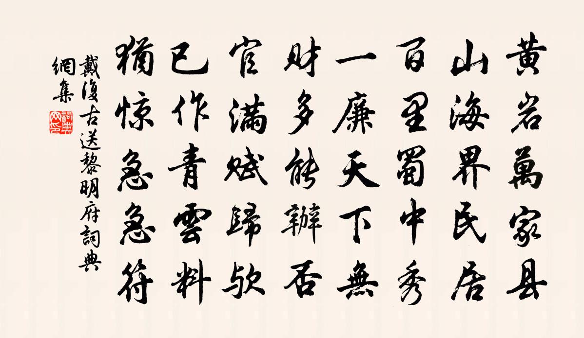 黃岩萬家縣,山海界民居。百里蜀中秀,一廉天下無。