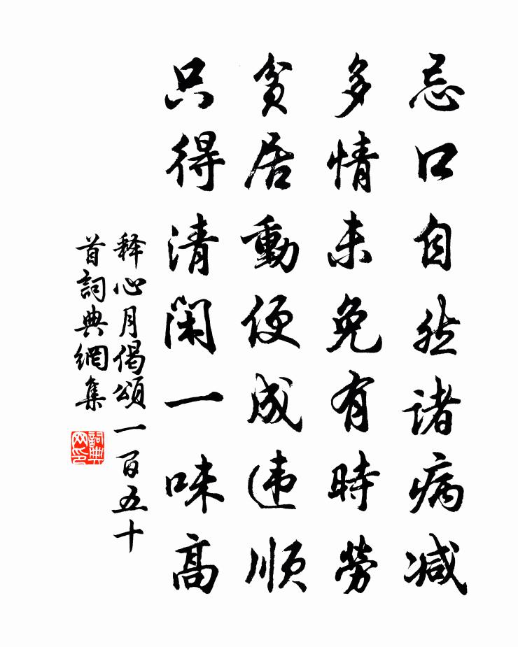 詩詞名句歷史字典書法欣賞書法字典國語詞典說文解字康熙字典古漢語字典標 題 作 者 詩 句 偈頌一百五十首作者:釋心月 朝代:宋代偈頌一百五十首原文忌口自然諸病減,多情未免有時勞。貧居動便成違順,只得清閒一味高。詩詞問答問:偈頌一百五十首的作者是誰?答:釋心月問:偈頌一百五十首寫於哪個朝代?答:宋代釋心月偈頌一百五十首書法欣賞偈頌一百五十首書法作品詩詞推薦憶山姚合〔唐代〕閒處無人到,乖疏稱野情。日高搔首起,林下散衣行。泉引窗前過,雲看石罅生。別來愁欲老,虛負出山名。益昌霪雨逾月負郭皆浸禱祠之後倉廩何全居民鄭剛中〔宋代〕朝遷德澤偏對畿,避水人家即日歸。獨愧因漂如木偶,未還田舍理柴扉。遣心四首蘇泂〔宋代〕秋暘如火灼肌膚,世念功名一點無。晚洞龍歸帶飛雨,臥看檐溜落階除。領客賞梅吳芾〔宋代〕經年相別阻傳杯,忽見梅枝入眼來。今日勸君休惜醉,不應辜負臘前梅。眼兒媚·樓上黃昏杏花寒阮閱〔宋代〕樓上黃昏杏花寒。斜月小欄乾。一雙燕子,兩行征雁,畫角聲殘。綺窗人在東風裡,灑淚對春閒。也應似舊,盈盈史清翁次前韻覓酒以金川玉友一枕瓶西安酒一樓鑰〔宋代〕社中日相從,此意豈不真。其初定要約,深期往來頻。今年苦多故,孤負四郊春。清和到新秋,其間足良辰。而我途次三絕寇準〔宋代〕大澤荒草闊,行人心慘淒。邊雲時斷續,流水自東西。孟子自得陳普〔宋代〕勿助勿忘隨所事,潛心積慮孰加功。待須默識心融後,左右逢原觸處通。贈陸冰蕭崱〔宋代〕標格真清挾雪霜,母聽新詠覺神傷。茶分鴻漸經中味,菊愛龜蒙賦時香。圃積玉多知學飽,囊裝金少為貪忙。向來感皇恩(竹坡老人步上南岡,得堂基於孤峰絕頂間,喜甚,戲作長短句)周紫芝〔宋代〕無事小神仙,世人誰會。著甚來由自縈系。人生須是,做些閒中活計。百年能幾許,無多子。近日謝天,與片閒田上閩帥范石湖五首敖陶孫〔宋代〕今代論文更是非,賞音誰復得牙夔。直從長慶成編日,便到先生晚歲時。萬馬蕭蕭閒律令,孤峰隱隱出旌旗。了知覆杯池楊修〔宋代〕金杯覆處舊池枯,此後還曾一醉無。東晉中興股肱力,元皇也學管夷吾。醉落魄/一斛珠王仲甫〔宋代〕醉醒醒醉。憑君會取皆滋味。濃斟琥珀香浮蟻。一入愁腸,便有陽春意。須將席幕為天地。歌前起舞花前睡。從他會稽偶作二首李洪〔宋代〕去年行遍浙東山,越絕重來豈偶然。秦望雲深縈客恨,鏡湖月白結詩緣。鷓鴣處處啼篁竹,舴艋家家泛釣船。行役題城南書院三十四詠張栻〔宋代〕拍堤水滿草茸茸,盡日野航西復東。欲去未須愁日暮,月明波面更溶溶。飲酒 其一陶淵明〔魏晉〕衰榮無定在,彼此更共之。邵生瓜田中,寧似東陵時!寒暑有代謝,人道每如茲。達人解其會,逝將不復疑;忽與別鄒秀才釋正覺〔宋代〕聲利明來若夢遊,肯迂征家宿雲棲。情高素抱山樊志,性淡幽尋松石儔。愛我家風清入眼,問伊時事默搖頭。今朝齋中雜題陸游〔宋代〕西窗日過中,飢坐生眼花。援筆課小詩,墨燥字傾斜。須臾忽滿紙,翩翩若風鴉。雖無古人法,簡拙自一家,乃知武陵春王吉昌〔元代〕一氣始方離混沌,八卦九宮期。羅絡壺中媾坎離。訊息浩充肌。斡轉璇璣神寂定,龍虎甲庚頤。性普三宮造化奇。請代陳杰〔宋代〕郡小凋殘最,兵余旱疫仍。不能無獄訟,但見可哀矜。卿自別利器,吾猶冶亂繩。新林有孳尾,珍重莫呼鷹。名句推薦可憐今夕月,向何處、去悠悠。辛棄疾《木蘭花慢·中秋飲酒將旦客謂前人詩詞有賦待月無送月者因用天問體賦》 滿地蘆花和我老,舊家燕子傍誰飛?文天祥《金陵驛二首·其一》 它山之石,可以攻玉。佚名《鶴鳴》 持斧伐遠揚,荷鋤覘泉脈。王維《春中田園作》 二月春花厭落梅。仙源歸路碧桃催。渭城絲雨勸離杯。晏幾道《浣溪沙·二月春花厭落梅》 初報邊烽照石頭,旋聞胡馬集瓜州。陸游《送七兄赴揚州帥幕》 幾度思歸還把酒,拂雲堆上祝明妃。杜牧《題木蘭廟》 赤壁磯頭,一番過、一番懷古。戴復古《滿江紅·赤壁懷古》 明者防於無形,治者制其未亂魏徵《隋書·列傳·卷四》 雲里帝城雙鳳闕,雨中春樹萬人家。王維《奉和聖制從蓬萊向興慶閣道中留春雨中春望之作應制》