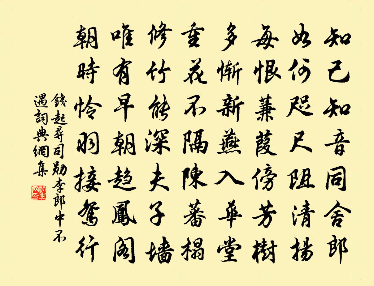 知己知音同舍郎,如何咫尺阻清揚。每恨蒹葭傍芳樹,多慚新燕入華堂。