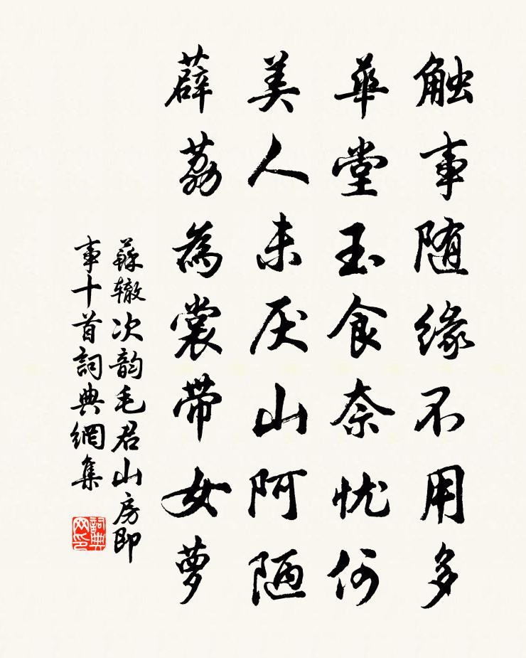 詩詞名句歷史字典書法欣賞書法字典國語詞典說文解字康熙字典古漢語字典標 題 作 者 詩 句 次韻毛君山房即事十首作者:蘇轍 朝代:宋代次韻毛君山房即事十首原文觸事隨緣不用多,華堂玉食奈憂何。美人未厭山阿陋,薜荔為裳帶女蘿。詩詞問答問:次韻毛君山房即事十首的作者是誰?答:蘇轍問:次韻毛君山房即事十首寫於哪個朝代?答:宋代問:蘇轍的名句有哪些?答:蘇轍名句大全蘇轍次韻毛君山房即事十首書法欣賞次韻毛君山房即事十首書法作品詩詞推薦守歲五首薛嵎〔宋代〕平日過從乏貴游,更來湖上棹扁舟。除將兒女年年拜,鄰舍相逢坐即休。郊廟歌辭。周宗廟樂舞辭。善慶舞佚名〔唐代〕卜世長,帝祚昌。定中國,服四方。修明祀,從舊章。奏激楚,轉清商。羅俎豆,列簪裳。歌累累,容皇皇。望來和芙蓉和尚四句偈頌妙唱不乾舌釋慧暉〔宋代〕如如寂滅自無情,一句從來本見成。舌運廣長元不間,雪峰相見望州亭。偈頌二十二首釋道生〔宋代〕雨雪落紛紛,檐頭水滴滴。良哉觀世音,草里跳不出。跳不出,也大屈,水裡烏龜鑽鐵壁。德陽林梅麓太守挽章陳普〔宋代〕殷士皆周裸,南音獨楚冠。寢車人更怒,負俎我何安。義合雍容就,名應久遠看。梅花真鐵石,耐得許多寒。拾得贊釋可湘〔宋代〕生苕箒,提在手。放下絕諸塵,轉掃復轉有。松門十里春如晝。逍遙詠宋太宗〔宋代〕還元到即見真歸,不是虛傳羽化飛。大道勿將閒設用,精修別得便忘機。安排穩入龍宮內,變易終藏虎鼎威。豁達送僧南遊鮑溶〔唐代〕且攀隋宮柳,莫憶江南春。師有懷鄉志,未為無事人。和陸務觀用張季長吏部韻,寄季長兼簡老夫補楊萬里〔宋代〕別去公懷我,詩來我夢公。半輪笠澤月,一信鏡湖風。豈有詩名世,而無鬼作窮。管城言曉事,猶欲策元功。送李文明下第鄜州覲兄許渾〔唐代〕征夫天一涯,醉贈別吾詩。雁迥參差遠,龍多次第遲。寧歌還夜苦,宋賦更秋悲。的的遙相待,清風白露時。老農十首曾協〔宋代〕聞說邊隅長草萊,漢家膚使漠南回。黍苗正自歸倉廩,不怕西風捲地來。寄杜員外(員外垂示詩,因作此寄上)郭受〔唐代〕新詩海內流傳久,舊德朝中屬望勞。郡邑地卑饒霧雨,江湖天闊足風濤。松花酒熟傍看醉,蓮葉舟輕自學操。春興晚春葉茵〔宋代〕游事一番了,愁多鎖書長。因思來歲賞,未必少年狂。野鳥學蠻語,岸花浮楚香。魚應知我者,圉圉到池塘。題法相岩鄭域〔宋代〕法相具諸相,寶方無定方。突兀虎豹立,嵌空蛟龍藏。入地轉輪遠,透天圓竇光。何人鑒混沌,擲棄官路傍。摸魚兒(紫雲山房擬賦蓴)王易簡〔宋代〕怪鮫宮、水晶簾卷,冰痕初斷香縷。澄波盪槳人初到,三十六陂煙雨。春又去。伴點點荷錢,隱約吳中路。相思日阮郎歸(壬辰邵武試燈夕)洪瑹〔宋代〕東風吹破藻池冰。晴光開五雲。綠情紅意兩逢迎。扶春來遠林。花艷艷,玉英英。羅衣金縷明。鬧蛾兒簇小蜻蜓。再如蒲圻二首王炎〔宋代〕雲暝雨將雪,天低風正寒。簡書端可畏,行李不遑安。要路飛騰好,窮途進取難。折腰徒自苦,吾亦悔儒冠。柳宋祁〔宋代〕濯濯縈春晚,依依帶暝饒。楚宮皆餓死,無計學織腰。過桐廬邑二首張景脩〔宋代〕隱君無姓字,何代至今存。數里山為宅,兩株桐是孫。人煙半峰碧,溪水帶潮渾。多少來遊客,茫茫蹋藥根。句諶祜〔宋代〕看翻後夜月回照,夢憶前生地不同。名句推薦故鄉歸去千里,佳處輒遲留。蘇軾《水調歌頭·安石在東海》 君子之言寡而實,小人之言多而虛。劉向《說苑·談叢》 海闊山遙,未知何處是瀟湘柳永《玉蝴蝶·望處雨收雲斷》 玉璫緘札何由達,萬里雲羅一雁飛。李商隱《春雨》 莫道桑榆晚,為霞尚滿天。劉禹錫《酬樂天詠老見示》 竹色溪下綠,荷花鏡里香。李白《別儲邕之剡中》 一月不讀書,耳目失精爽。蕭掄謂《讀書有所見作》 小橋橫截,缺月初弓。辛棄疾《沁園春·靈山齋庵賦時築偃湖未成》 龍馬花雪毛,金鞍五陵豪。李白《白馬篇》 明月照高樓,流光正徘徊。曹植《七哀》
