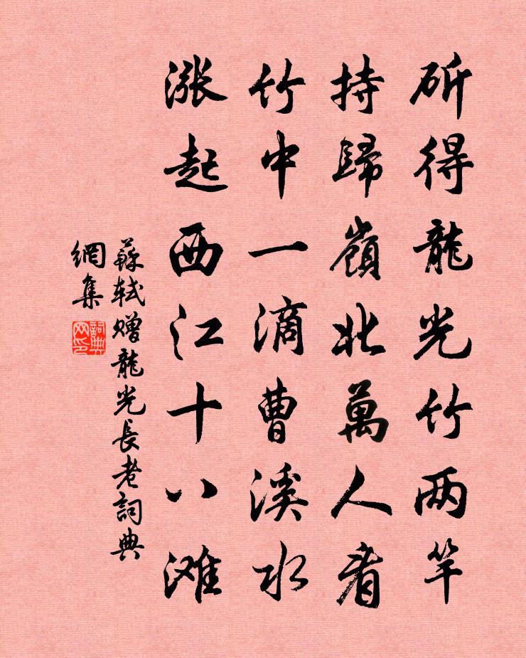 斫得龍光竹兩竿,持歸嶺北萬人看。竹中一滴曹溪水,漲起西江十八灘。