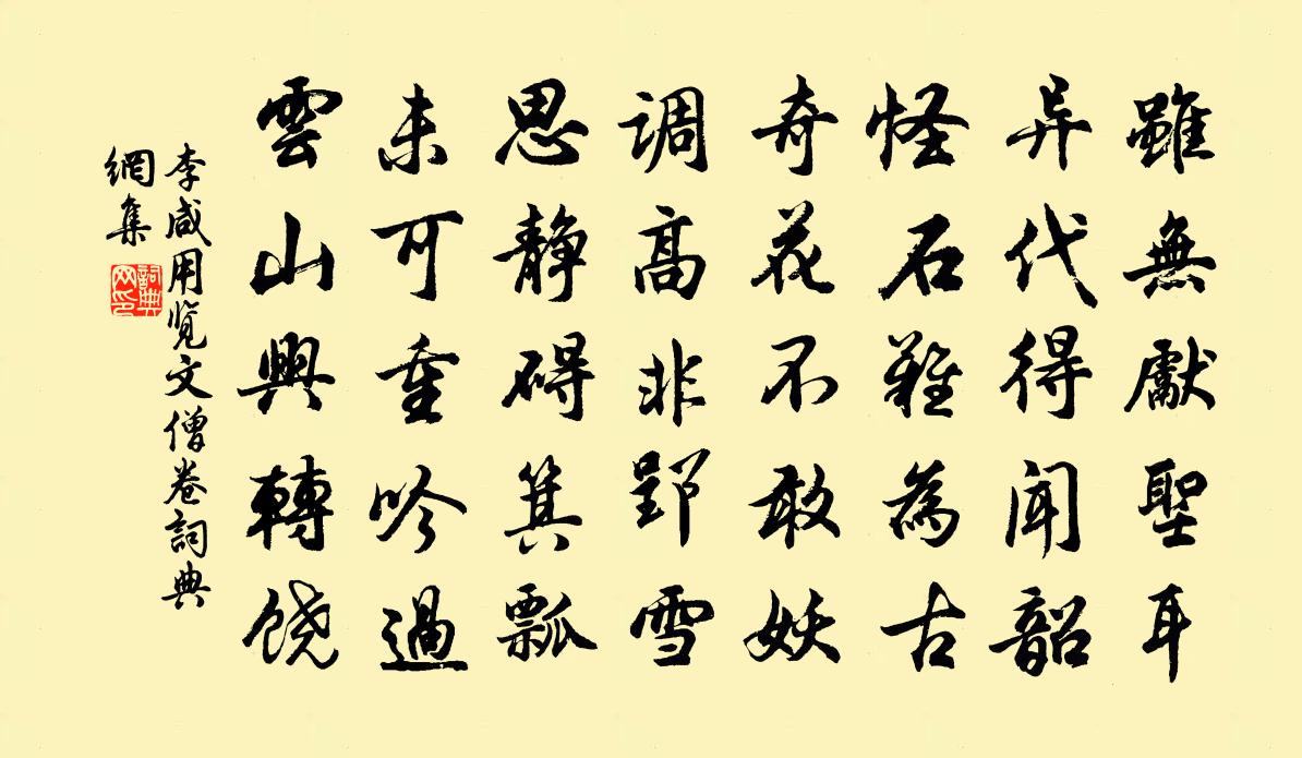 詩詞名句歷史字典書法欣賞書法字典國語詞典說文解字康熙字典古漢語字典標 題 作 者 詩 句 覽文僧卷作者:李鹹用 朝代:唐代覽文僧卷原文雖無先聖耳,異代得聞韶。怪石難為古,奇花不敢妖。調高非郢雪,思靜礙箕瓢。未可重吟過,雲山興轉饒。詩詞問答問:覽文僧卷的作者是誰?答:李鹹用問:覽文僧卷寫於哪個朝代?答:唐代問:覽文僧卷是什麼體裁?答:五律李鹹用覽文僧卷書法欣賞覽文僧卷書法作品注釋全唐詩:卷645-37詩詞推薦齋中讀書罷有感陸游〔宋代〕少時學問苦匆匆,弦誦光陰轉手空。聖域淵源雖自力,故交零落與誰同?荒村莫恨身垂老,後世元知論自公。但掩憶越州張士遜〔宋代〕稽山岩壑深復高,思之誰妙丹青毫。霜縑若得一千幅,伻圖何必乘蘭舠。暑夕泛次王令君韻史彌寧〔宋代〕趁涼延客早,待月放船遲。河朔一尊酒,湘乾六月時。鶯喉翻白佇,兔穎掃烏絲。羨殺王明府,長城五字詩。和江上雙舟摧發趙希逢〔宋代〕滄茫萬頃不計闊,仙槎曾泛天宮闕。至今風浪卷長空,破浪飛帆何處發。落鷹飛兔注急湍,千丈皚皚涌雪山。相忘挽柯東海劉克莊〔宋代〕不持寸鐵霸斯文,疇昔曾將膽許君。撰出騷詞奴宋玉,寫成帖字婢羊欣。喪無歸費人爭賻,詩有高名虜亦聞。昨覽喜雨口號呈陳守伯固十二首陳造〔宋代〕貸絕交通腹殷雷,人家一雨便春台。即看商販接踵集,已有米船銜尾來。次韻梅花四首陳棣〔宋代〕鏤玉凝酥若未勻,南枝仿佛露天真。橫陳月下無雙影,占斷人間第一春。屈子浪吟蘭畹佩,韓公羞卜杏花隣。廣平宿山觀余靖〔宋代〕孤枕秋宵永,山寒夢不成。殘燈背窗影,急雨帶溪聲。未分山中老,空思日下名。區區如逆旅,此際若為情。菩薩蠻·闌風伏雨催寒食納蘭性德〔清代〕闌風伏雨催寒食,櫻桃一夜花狼藉。剛與病相宜,鎖窗薰繡衣。畫眉煩女伴,央及流鶯喚。半晌試開奩,嬌多直自鹹陽劉棐〔宋代〕玉殿珠樓二世中,楚人一炬逐煙空。卻緣火是秦人火。只與焚書一樣紅。冬日作二首張耒〔宋代〕澤國久還雨,頻妨裘褐溫。羇懷常悄悄,醉眼任昏昏。雲赴荊王夢,天迷楚客魂。飄萍惟泥酒,吾事肯輕論。奉寄黃任道王令〔宋代〕蒿萊日日沒幽居,時得新詩亦自娛。為有遠懷希稷高,或時飛夢見唐虞。久諳末俗難謀道,益厭庸兒妄問儒。絕筆別秀亭五首方回〔宋代〕作郡說貧人肯信,屋今售矣亦無田。囊中詩稿三千首,案上書燈十二年。馬死尚難求別馬,船歸不過駕空船。秀亭春愁陸游〔宋代〕春愁茫茫塞天地,我行未到愁先至。滿眼如雲忽復生,尋人似瘧何由避。客來勸我飛觥籌,我笑謂客君罷休。醉自送張和叔兼簡魯直秦觀〔宋代〕汝南如一器,百千聚飛蚊。終然鼓狂鬧,啾啾竟誰聞。議郎盛德後,清修繼先芬。未試霹靂手,低回從此君。學官溫陵太守趙右司惠詩求荔子適大風雨掃盡輒和劉克莊〔宋代〕吾家皺玉玉堂紅,粹美寧非間氣鍾。絕喜詩來相品藻,安知物有不遭逢。敬酬楊僕射山齋獨坐詩薛道衡〔隋代〕相望山河近。相思朝夕勞。龍門竹箭急。華岳蓮花高。岳高嶂重疊。鳥道風煙接。遙原樹若薺。遠水舟如葉。葉舟寄題喻叔奇國傅郎中園亭二十六詠花屏楊萬里〔宋代〕錦障豪舉笑騃童,松圖冷淡惱山翁。玉山頹處誰扶著,花作屏風倚暖紅。久雨阻西郊之游黃公度〔宋代〕忽忽春將半,冥冥雨未休。過從喧屐齒,追賞負觥籌。詩句那排悶,鶯聲巧喚愁。晴郊饒勝概,何日許同游。過武夷陳淳〔宋代〕武夷山下幾回過,未暇於中賞一遭。獅鶴諸仙知我意,故將青靄淡遮羅。名句推薦量大禍不在,機深禍亦深。佚名《增廣賢文·下集》 湖水無端浸白雲,故人書斷孤鴻沒。黃庭堅《秋懷二首》 美人結長想,對此心悽然。李白《折楊柳》 草木秋死,松柏獨在劉向《說苑·談叢》 江豚吹浪立,沙鳥得魚閒。薛時雨《臨江仙·大風雨過馬當山》 倒言反事以嘗所疑。韓非及後人《韓非子·內儲說上七術》 城中桃李愁風雨,春在溪頭薺菜花。辛棄疾《鷓鴣天·陌上柔桑破嫩芽》 友者、所以相有也。道不同,何以相有也?荀子《荀子·大略》 明足以察秋毫之末,而不見輿薪,則王許之乎?孟子《孟子·梁惠王章句上·第八節》 柴門寂寂黍飯馨,山家煙火春雨晴。貫休《春晚書山家屋壁二首》