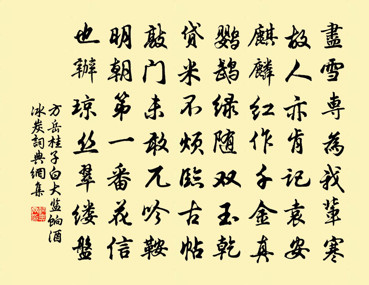 詩詞名句歷史字典書法欣賞書法字典國語詞典說文解字康熙字典古漢語字典標 題 作 者 詩 句 桂子白大監餉酒冰炭作者:方岳 朝代:宋代桂子白大監餉酒冰炭原文盡雪專為我輩寒,故人亦肯記袁安。麒麟紅作千金真,鸚鵡綠隨雙玉乾。貸米不煩臨古帖,敲門未敢兀吟鞍。明朝第一番花信,也辦瓊絲翠縷盤。詩詞問答問:桂子白大監餉酒冰炭的作者是誰?答:方岳問:桂子白大監餉酒冰炭寫於哪個朝代?答:宋代方岳桂子白大監餉酒冰炭書法欣賞桂子白大監餉酒冰炭書法作品詩詞推薦次韻和馬都官宛溪浮橋梅堯臣〔宋代〕在昔當陽侯,建橋臨大川。洪波不為阻,馳道南北連。何此小溪上,擬象坦且平。馬頭分朱欄,水底裁碧天。白雨括酹江月林正大〔宋代〕杏花春晚散餘芳、著處縈簾穿箔。喚起幽人明月夜,步月褰衣行樂。置酒花前,清香爭發,雪挽長條落。山城薄酒送徐生之澠池歐陽修〔宋代〕河南地望雄西京,相公好賢天下稱。吹噓死灰生氣焰,談笑暖律回嚴凝。曾陪◇俎被顧盻,羅列台閣皆名卿。徐生夜飲彥博家歸而作此李流謙〔宋代〕故人留飲歸夜深,銅瓶唧唧蟲微吟。一燈猶照讀書眼,半紙忽生懷古心。亦知所貴何必用,魚目驪珠自輕重。人間題仙槎寄呈王待制白玉蟾〔宋代〕道人身世已盟鷗,便好乘雲御氣休。何足風波吾一點,盍思舟楫彼迷流。從教水擊三千里,別是煙飄十二樓。松以夜坐有感范成大〔宋代〕靜夜家家閉戶眠,滿城風雨驟寒天。號呼賣卜誰家子,想欠明朝糶米錢!東城趙孟頫〔元代〕野店桃花紅粉姿,陌頭楊柳綠菸絲。不因送客東城去,過卻春光總不知。晚眺崔耿〔唐代〕江溶流落景,山色凝暮煙。衰發照秋日,壯心減昔年。愁吟長抱膝,孰訴高高天。送鄭君舉宣城教諭方回〔宋代〕宣城畫虎遍天下,葉公好龍龍之假。百儒願陶一真者。紅花木瓜銀杏園,年年包貢入中原,何如興賢起邱樊。學徒奉和知縣兄蘇泂〔宋代〕蒼煙濕濕雨微微,一榼山醪手自提。看了梅花來看竹,春寒如水不曾知。十月六日園丁置墨紫方岳〔宋代〕已是年時欲雪天,誰回冷落作芳妍。極知品在群葩上,忽與梅爭一著先。顏色依然香墨重,花頭不減暮春圓。人言題招題院靜照堂馮浩〔宋代〕寶坊新構斷塵飛,宴坐朝朝內外宜。一自覺來無相見,久忘言後少人知。天中月滿雲收夜,海底珠明浪靜時。頓向二月將半寒暄不常楊萬里〔宋代〕南中冷暖直難齊,一日之間具四時。脫了又添添又脫,寒衣暑服鎮相隨。霜天曉角(和劉架閣自昭韻)吳潛〔宋代〕杯中吸月,桂樹飛瓊屑。莫道胡床老子,怕風露、向淒冽。回首雲娥折,老大成痴絕。且醉今宵光景,莫容易、向欲到東洛得楊使君書因以此報白居易〔唐代〕向公心切向財疏,淮上休官洛下居。三郡政能從獨步,十年生計復何如?使君灘上久分手,別駕渡頭先得書。且喜奉題林稚春菊花枕子歌林亦之〔宋代〕故人所說菊花枕,似把冰丸月下飲。秋水一雙明炯炯,數在青囊第一品。狂風江上吹蒹葭,此物往往得之嵇康阮籍最高樓劉克莊〔宋代〕周郎後,直數到清真。君莫是前身。八音相應諧韶樂,一聲未了落梁塵。笑而今,輕郢客,重巴人。只少個、綠珠酬章水知己齊己〔唐代〕新吟忽有寄,千里到荊門。落日雲初碧,殘年眼正昏。已為難敵手,誰更入深論。後信多相寄,吾生重此言。落花陸游〔宋代〕朱朱白白不禁吹,老未忘情作許悲!瑞錦已殘猶有夢,明霞初散可無詩?人應偷樣傳圖本,天亦收香付蜜脾。榮悴寒食日過棗團店白居易〔唐代〕寒食棗團店,春低楊柳枝。酒香留客住,鶯語和人詩。困立攀花久,慵行上馬遲。若為將此意,前字與僧期。名句推薦以身教者從,以言教者訟。范曄《後漢書·列傳·第五鍾離宋寒列傳》 玉階空佇立,宿鳥歸飛急。李白《菩薩蠻·平林漠漠煙如織》 貧居往往無煙火,不獨明朝為子推。孟雲卿《寒食》 唯仁者能好人,能惡人。孔子弟子《論語·雍也篇》 功名祗向馬上取,真是英雄一丈夫岑參《送李副使赴磧西官軍》 花近高樓傷客心,萬方多難此登臨。杜甫《登樓》 看風流慷慨,談笑過殘年辛棄疾《八聲甘州·故將軍飲罷夜歸來》 春酒香熟鱸魚美,誰同醉?纜卻扁舟篷底睡。李珣《南鄉子·雲帶雨》 憶得盈盈拾翠侶,共攜賞、鳳城寒食。李甲《帝台春·芳草碧色》 雪虐風饕愈凜然,花中氣節最高堅。陸游《落梅》