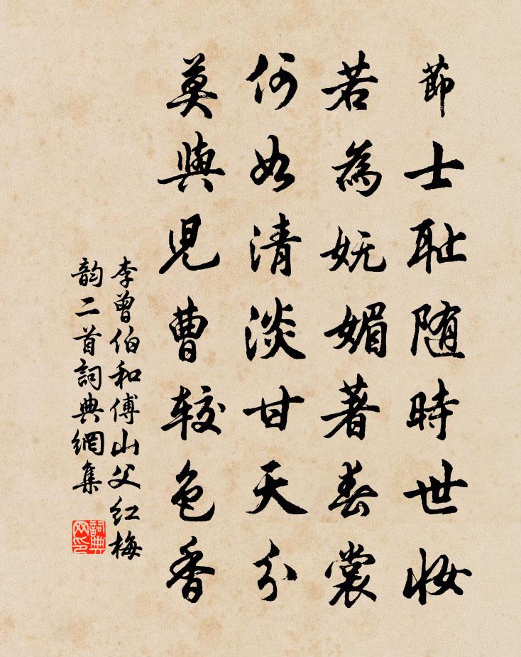 詩詞名句歷史字典書法欣賞書法字典國語詞典說文解字康熙字典古漢語字典標 題 作 者 詩 句 和傅山父紅梅韻二首作者:李曾伯 朝代:宋代和傅山父紅梅韻二首原文節士恥隨時世妝,若為嫵媚著春裳。何如清淡甘天分,莫與兒曹較色香。詩詞問答問:和傅山父紅梅韻二首的作者是誰?答:李曾伯問:和傅山父紅梅韻二首寫於哪個朝代?答:宋代李曾伯和傅山父紅梅韻二首書法欣賞和傅山父紅梅韻二首書法作品詩詞推薦代人上師垣生辰仲並〔宋代〕清風孤映紫宸班,平立伊周伯仲間。幾歲苦心扶國步,今年喜色到天顏。羽書已靜淮西報,翟輅初從塞北還。式廓思柳亭陶弼〔宋代〕羅池刺史寡塵緣,畫戰牆頭築望仙。黃鶴與誰同一去,碧桃無主又千年。哭劉仲邍司馬光〔宋代〕昔醉金明渚,今來慧辯祠。當年笑相親,此日哭殊悲。天迥種原淨,風高草木衰。江梅靈氣在,泉下復相知。閒吟陸游〔宋代〕閒吟可是治愁藥,一展吳牋萬事忘。不惜暮年酬倡絕,猶能作意答秋光。和弟邦佐邦達賀得節姜特立〔宋代〕初出鄉關嘆屢空,行人愁見暮雲重。倦投山館憐吾足,踏遍千峰與萬峰。書田舍所見劉克莊〔宋代〕漠漠晴埃起遠疇,占相雲日幾家愁。細民方慮填中壑,巨室何心堰上流。斬木由來基小釁,澆瓜誰為解私仇。寧知瓦店雨作四首楊萬里〔宋代〕近岸人家欲閉門,遠林煙樹半昏昏。鸕鶿白鷺歸何晚,今夜定投何處村。贈筆工王諶〔宋代〕試子玉簪筆,他工總不如。毫長宜貯墨,管淨可抄書。汝自誇淮兔,吾猶註魯魚。鬢毛斑白盡,心折正緣渠。香林四首陳與義〔宋代〕丈人延客非俗物,百和香中進一杯。乞取齊奴錦步障,與春遮斷曉風來。憶金門舊遊奉寄江西沈大夫李德裕〔唐代〕東望滄溟路幾重,無因白首更相逢。已悲泉下雙琪樹,又惜天邊一臥龍。人事升沉才十載,宦遊漂泊過千峰。思君紹興別廟樂歌五首真宗〔宋代〕仙馭弗返,眇邈清都。肆此嘉肴,既豐既腴。奠享有成,鼓樂愉愉。入我豆籩,率禮無逾。少年游晁補之〔宋代〕如今田野謾拋春。紅雨掩衡門。懶讀詩書,欠伸扶杖,几案任生塵。縱教便向東山老,誰知是箇中人。莫怪年來,代上時相生辰陳棣〔宋代〕中興事業耀無前,明聖相逢運半千。盡納有生歸禮樂,全提鴻化入陶甄。八風自轉成天籟,五緯更調祚有年。體物黃鶴洞中仙 繼重陽韻 藏頭馬鈺〔元代〕日風仙活。我惺惺灑。去關西闡妙玄,么馬。宅須當舍。利子無價。事心難掛。德方而著德圓,口馬。月齊高下。送昂維那出嶺兼呈應庵釋鹹傑〔宋代〕福城是得來相訪,象骨岩前話別時。驚起石人開鐵眼,倚筇遙聽老猿啼。崇德廟范成大〔宋代〕雪山酒南風融雪酒汁,化作酒岷江江水酒來。不知新漲高几畫,但覺樓前奔萬雷。天教此水入中國,兩山辟易分道洞仙歌晏幾道〔宋代〕春殘雨過,綠暗東池道。玉艷藏羞媚赬笑。記當時、已恨飛鏡歡疏,那至此,仍苦題花信少。連環情未己,物是人偶書黃庚〔宋代〕老眼看書暗,桑榆景漸催。文章身後貴,懷抱酒邊開。燈火夢猶在,功名心已灰。客來休問字,且覆掌中杯。項亭汪遵〔唐代〕不修仁德合文明,天道如何擬力爭。隔岸故鄉歸不得,十年空負拔山名。贊林黛玉曹雪芹〔清代〕兩彎似蹙非蹙肙煙眉,一雙似喜非喜含露目。態生兩靨之愁,嬌襲一身之病。淚光點點,嬌喘微微。嫻靜時如姣花名句推薦洛陽城裡春光好,洛陽才子他鄉老。韋莊《菩薩蠻》 夫淺知之所爭者,末矣。列子及其弟子《列子·說符》 冬無愆陽,夏無伏陰,春無淒風,秋無苦雨左丘明《左傳·昭公·昭公四年》 明朝又是孤舟別,愁見河橋酒幔青。竇叔向《夏夜宿表兄話舊》 山檣谷塹依然在,弱吐強吞盡已空。杜牧《題武關》 念蘭堂紅燭,心長焰短,向人垂淚。晏殊《撼庭秋·別來音信千里》 雲雷,屯;君子以經綸。佚名《易傳·象傳上·屯》 攜扙來追柳外涼,畫橋南畔倚胡床。秦觀《納涼》 改章難於造篇,易字艱於代句劉勰《文心雕龍·附會》 獨立揚新令,千營共一呼。盧綸《和張僕射塞下曲·其一》