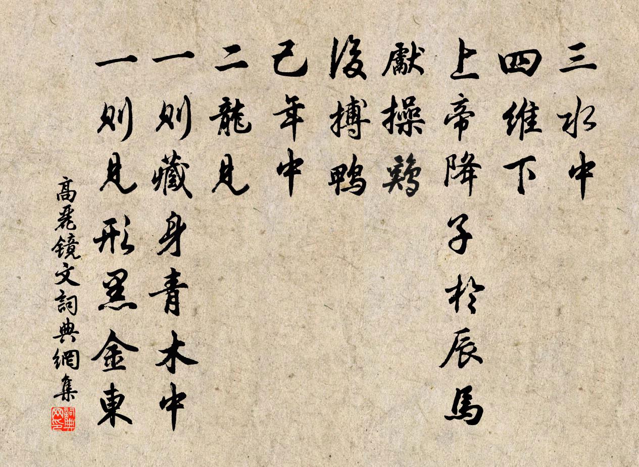 三水中,四維下,上帝降子於辰馬。先操雞,後搏鴨。