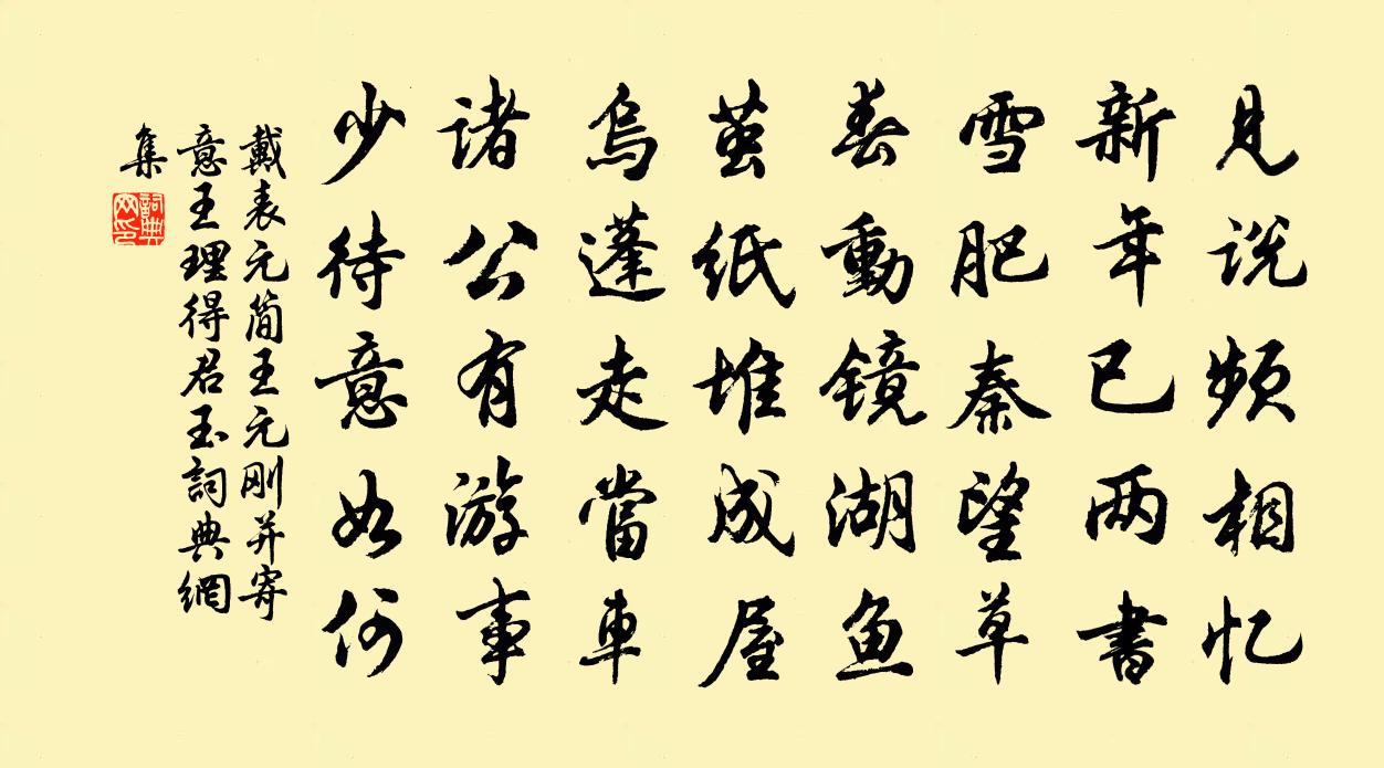 詩詞名句歷史字典書法欣賞書法字典國語詞典說文解字康熙字典古漢語字典標 題 作 者 詩 句 簡王元剛並寄意王理得君玉作者:戴表元 朝代:宋代簡王元剛並寄意王理得君玉原文見說頻相憶,新年已兩書。雪肥秦望草,春動鏡湖魚。繭紙堆成屋,烏蓬走當車。諸公有游事,少待意如何。詩詞問答問:簡王元剛並寄意王理得君玉的作者是誰?答:戴表元問:簡王元剛並寄意王理得君玉寫於哪個朝代?答:宋代戴表元簡王元剛並寄意王理得君玉書法欣賞簡王元剛並寄意王理得君玉書法作品詩詞推薦送錢文季國博赴召曹彥約〔宋代〕沖暑相迎慰寂寥,忍寒為別助蕭條。笑談但喜頻揮麈,夢想何嘗到續貂,已辨犁鋤供老圃,尚乘軺傳吒公朝。班聯次韻德麟植檜陳師道〔宋代〕種木待成材,聊為十年事。日中趨百里,寧問萬牛費。植檜三尺強,已有凌雲氣。生世能幾何,擬作千歲計。眾人送千乘千能兩侄還鄉蘇軾〔宋代〕治生不求富,讀書不求官。譬如飲不醉,陶然有餘歡。君看龐德公,白首終泥蟠。豈無子孫念,顧獨遺以安。鹿門轉運度支得青州資政黃素書韓吏部伯夷頌許昌晏殊〔宋代〕首陽垂範遠,吏部屬辭深。梁翰著嘉尚,系言光德音。褒崇亘千{左礻右冀},精妙極雙金。題詠益珍秘,用昭賢夢江南屈大均〔清代〕悲落葉,葉落絕歸期。縱使歸來花滿樹,新枝不是舊時枝。且逐水流遲。次韻二首葉茵〔宋代〕難把來箋向後黏,載持珠玉傍風檐。吟根此性辭平易,學本於經意簡嚴。未遜彌明聯石鼎,還嗤韓渥賦香奩。陽春枕上聞雪復作,方以為喜,起岩再示新詩,復范成大〔宋代〕三白何憂稼穡艱,天於玉粒未吾慳。不知夜色明空外,但覺朝寒到夢間。誰子騎驢吟灞上,何人跋馬客藍關。爭如同裴少府安居寺對雨皇甫冉〔唐代〕共結尋真會,還當退食初。爐煙雲氣合,林葉雨聲餘。溽暑銷珍簟,浮涼入綺疏。歸心從念遠,懷此復何如。偈頌二十一首釋普寧〔宋代〕青州布衫重七斤,由來錯認定盤星。那知富士山孤峻,到頂須行三日程。答趙景猷曹攄〔魏晉〕翟長載離。陳張終辱。交以時利。胡能不黷。竊怪吾子。自疑末巫。愧以沙礫。何言金玉。雜詠三首王安石〔宋代〕先生善鼓瑟,齊國好吹竽。操竽入齊人,雅鄭亦復殊。豈不得祿賜,歸臥自郗歔。寥寥朱絲弦,老矣誰與娛。春遊陸游〔宋代〕杏花天氣喜新晴,白首書生樂太平。小陌鞦韆雖隔世,名園祓禊尚關情。山林自古流觴地,弦管誰家送酒聲?蓴菜秋中夜坐姚合〔唐代〕疏散永無事,不眠常夜分。月中松露滴,風引鶴同聞。嚴維石端研詩釋文珦〔宋代〕端溪下岩石,縋鑿出重淵。溫澤非人力,精華得自然。龍涎紫霞聚,鵒眼碧光圓。玉德終無變,斯文萬古傳。醉落魄/一斛珠王沂孫〔宋代〕小窗銀燭。輕鬟半擁釵橫玉。數聲春調清真曲。拂拂朱簾,殘影亂紅撲。垂楊學畫蛾眉綠。年年芳草迷金谷。如今贈郭承務蘆雁白玉蟾〔宋代〕畫士郭熙畫之冠,郭熙去後名未斷。其裔復有郭萬里,胸中丹青飽無限。為誰作此蘆雁圖,傑出南齊宇文煥。煙水相撲兒趙文〔宋代〕一兒攀肩猿上枝,一兒接臂倒立之。立者忽作踞地伏,攀者引頭立其足。飛跳倏忽何輕翾,憐爾骨節柔如綿。少年如夢令許有壬〔元代〕火榻只宜春早。紙張不知天曉。枕上問山童,門外雪深多少。休掃。休掃。收拾老夫茶灶。隋煬帝衛宗武〔宋代〕方其為儲貳,用智固已譎。及夫據大器,為謀抑何逆。龍舟及鳳{榻木換舟},無歲不游適。離宮與別殿,快意事梅花引 贈白先生馬鈺〔元代〕脫塵子。逃生死。物外逍遙雲水似。起真慈。起真慈。暗助真功,常常得自知。逗引蛟龍歸虎兕。水裡燈光明久視名句推薦臣敢竭股肱之力,效忠貞之節,繼之以死!陳壽《三國志·蜀書·諸葛亮傳》 兒女已在眼,眉目略不省。陳師道《示三子》 山高月小,水落石出。蘇軾《後赤壁賦》 千淘萬漉雖辛苦,吹盡狂沙始到金。劉禹錫《浪淘沙九首》 曲港跳魚,圓荷瀉露,寂寞無人見。蘇軾《永遇樂·彭城夜宿燕子樓》 鳥向檐上飛,雲從窗里出。吳均《山中雜詩》 明月照高樓,流光正徘徊。曹植《七哀》 我報路長嗟日暮,學詩謾有驚人句。李清照《漁家傲·天接雲濤連曉霧》 安得倚天劍,跨海斬長鯨。李白《臨江王節士歌》 寂歷秋江漁火稀,起看殘月映林微。湯顯祖《江宿》