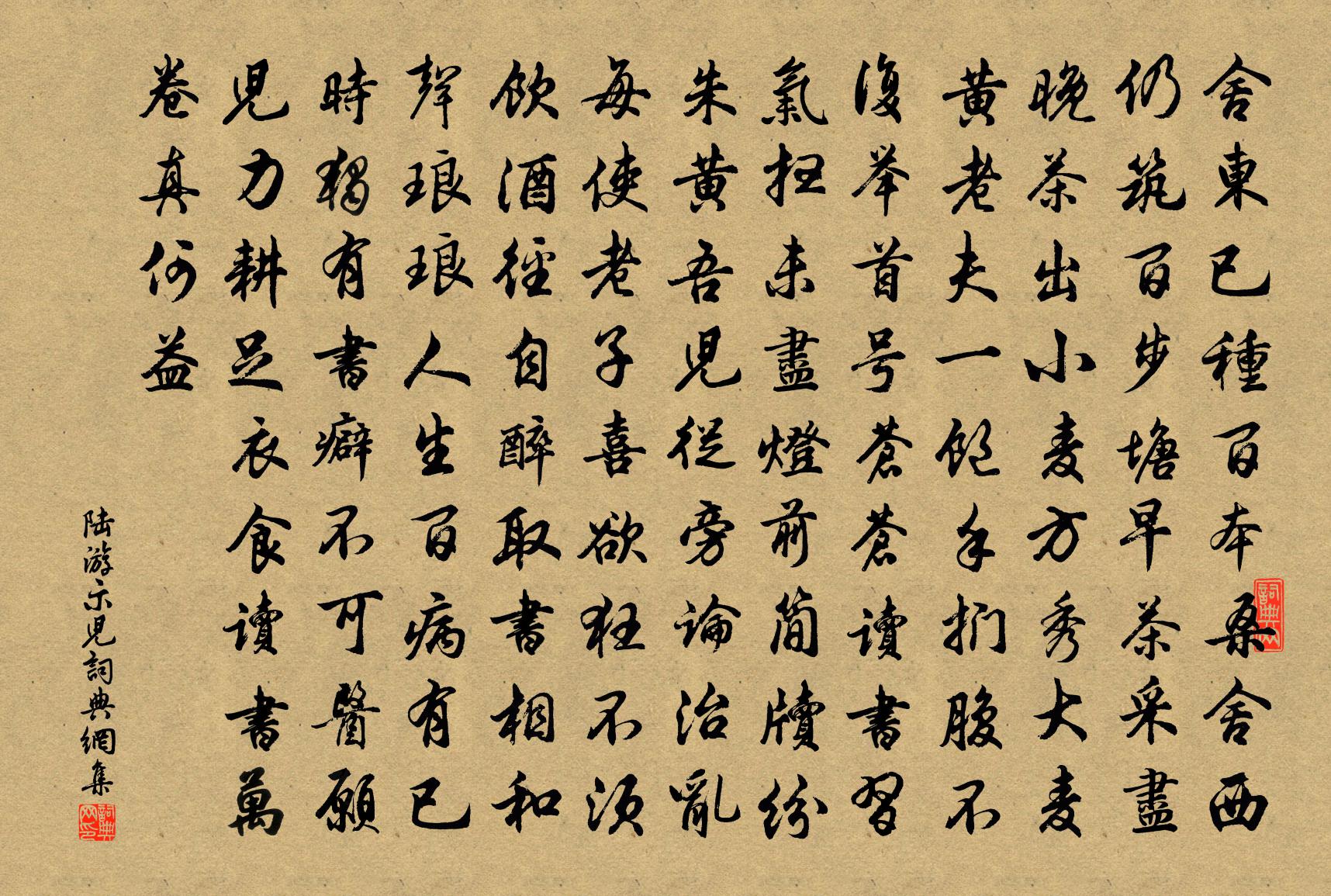 舍東已種百本桑,舍西仍築百步塘,早茶采盡晚茶出,小麥方秀大麥黃。老夫一飽手捫腹,不復舉首號蒼蒼。