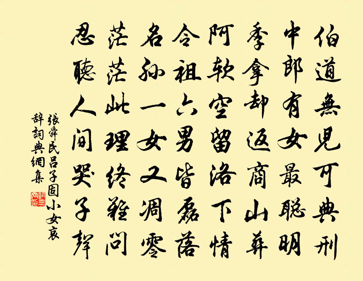 詩詞名句歷史字典書法欣賞書法字典國語詞典說文解字康熙字典古漢語字典標 題 作 者 詩 句 呂子固小女哀辭作者:張舜民 朝代:宋代呂子固小女哀辭原文伯道無兒可典刑,中郎有女最聰明。季拿卻返商山葬,阿軟空留洛下情。令祖六男皆磊落,名孫一女又凋零。茫茫此理終難問,忍聽人間哭子聲。詩詞問答問:呂子固小女哀辭的作者是誰?答:張舜民問:呂子固小女哀辭寫於哪個朝代?答:宋代張舜民呂子固小女哀辭書法欣賞呂子固小女哀辭書法作品詩詞推薦贈顧令文為宜春令詩陸機〔魏晉〕藹藹芳林。有集惟岳。亹亹明哲。在彼鴻族。淪心渾無。游精大朴。播我徽猷。□彼振玉。彼玉之振。光於厥潛。荔枝香近·七夕吳文英〔宋代〕睡輕時聞,晚鵲噪庭樹。又說今夕天津,西畔重歡遇。蛛絲暗鎖紅樓,燕子穿簾處。天上、未比人間更情苦。秋鬢偈頌一百六十首釋宗杲〔宋代〕庭前柏樹子,今日重新舉。打破趙州關,特地尋言語。錦樹行(因篇內有錦樹二字摘以為題非正賦錦樹也)杜甫〔唐代〕今日苦短昨日休,歲雲暮矣增離憂。霜凋碧樹待錦樹。萬壑東逝無停留。荒戍之城石色古,東郭老人住青丘。飛書遊仙詞三十三首王鎡〔宋代〕西母瑤池宮殿高,夜明簾卷玉絲絛。隔雲聽得東方笑,三度曾偷碧樹桃。讀王元之後集題於卷末祖無擇〔宋代〕提筆幾回書誥命,剖符長是守方州。未能抗表分司去,終老為郎謫宦休。歌舞懶呼寒食節,醉吟孤會月波樓。文章祭靜江帥曾吏部釋善珍〔宋代〕公掾富沙,來就師語。少服師訓,稱公膏舉。後二十年,麾節煌煌。老客輦寺,傳公除郎。桂聯荊渚,朔風孔棘。周先生元稹〔唐代〕寥寥空山岑,冷冷風松林。流月垂鱗光,懸泉揚高音。希夷周先生,燒香調琴心。神力盈三千,誰能還黃金。冬至四絕劉克莊〔宋代〕獻壽上公先入閣,書雲太史亦登台。惟應閒殺明農叟,起晏柴門曉未開。感遇之五陳子昂〔唐代〕市人矜巧智。於道若童蒙。傾奪相夸侈。不知身所終。曷見玄真子。觀世玉壺中。窅然遺天地。乘化入無窮。題詩屏風絕句白居易〔唐代〕相憶采君詩作障,自書自勘不辭勞。障成定被人爭寫,從此南中紙價高。忠孝亭周洎〔宋代〕晉鼎臲卼奸人窺,孰謀國者如兒嬉。陷穽弗設延虎貔,虓闞搏噬嬰者摧。群公奔潞峭敢誰,卞公力疾起督師。謂事送從善雲遊薛師石〔宋代〕雁盪天台去,閒尋倚杖藤。路邊應得句,禪坐似無能。頂笠偏愁雪,山猿不畏僧。儻逢清塞伴,休原入傳燈。七歌效杜陵體丘葵〔宋代〕十家九室廚無煙,兒夫仆後妻僵前。米珠薪桂內如玉,野無青草飛烏鳶。手持空券向何許,官司有印儂無錢。嗚呼送外兄方卿公美赴廣東憲十絕黃公度〔宋代〕怪底青雲懶著鞭,年來餘事覺真詮。圜扉晝辟庭無訟,時訪曹溪六祖禪。桃源憶故人王丹桂〔元代〕桃源憶故人來少。獨占洞天清曉。追想從前失笑。謾惹閒縈惱。琴書活計端然好。一曲山堂了了。保護胎仙常少。紅娘子/連理枝程垓〔宋代〕小小閒窗底。曲曲深屏里。一枕新涼,半床明月,留人歡意。奈梅花引里喚人行,苦隨他無計。幾點清觴淚。數曲聞雁艾性夫〔宋代〕枯樹淡秋影,濕雲凜夕陰。江天一聲雁,世事百年心。端嘉雜詩二十首劉克莊〔宋代〕說向丁男與小姑,各勤耕織了軍需。莫教塞北同文軌,卻為江南減賦輸。賦壬一侄孫破硯艾性夫〔宋代〕山翁手持青石骨,疑是元寶瘞中物。支床搗練應不然,中裂何由半存沒。冰池既決不可隄,鏡面已破那能規。達人名句推薦烹羊宰牛且為樂,會須一飲三百杯。李白《將進酒》 去年射虎南山秋,夜歸急雪滿貂裘。陸游《三月十七日夜醉中作》 小荷才露尖尖角,早有蜻蜓立上頭。楊萬里《小池》 世事短如春夢,人情薄似秋雲。朱敦儒《西江月·世事短如春夢》 池塘過雨急鳴蛙。酒醒明月照窗紗。夏言《浣溪沙·庭院沉沉白日斜》 梅子黃時日日晴,小溪泛盡卻山行曾幾《三衢道中》 五月雖熱麥風清,檐頭索索繰車鳴。王建《田家行》 黃葉覆溪橋,荒村唯古木。柳宗元《秋曉行南谷經荒村》 提出西方白帝驚,嗷嗷鬼母秋郊哭。李賀《春坊正字劍子歌》 白髮悲明鏡,青春換敝裘。岑參《武威春暮聞宇文判官西使還已到晉昌》