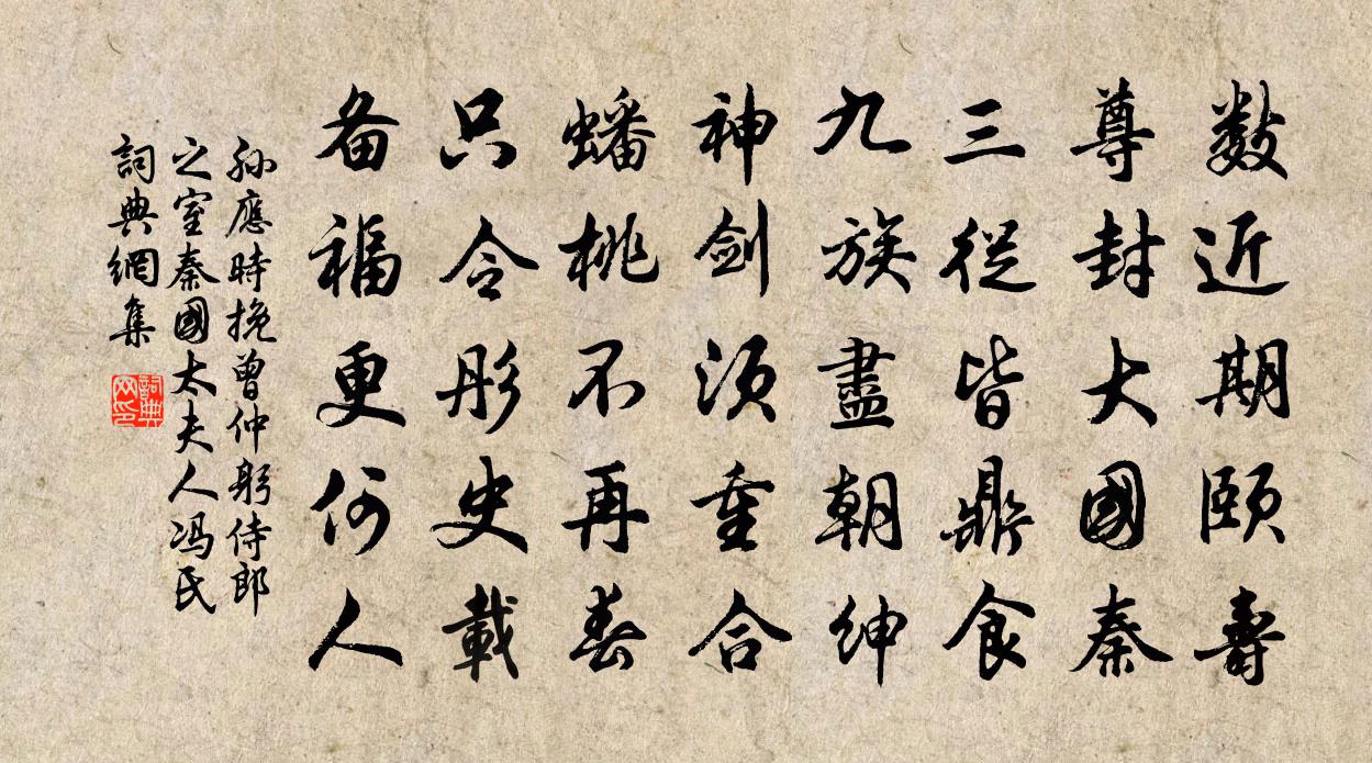 詩詞名句歷史字典書法欣賞書法字典國語詞典說文解字康熙字典古漢語字典標 題 作 者 詩 句 挽曾仲躬侍郎之室秦國太夫人馮氏作者:孫應時 朝代:宋代原文數近期頤壽,尊封大國秦。三從皆鼎食,九族盡朝紳。神劍須重合,蟠桃不再春。只令彤史載,備福更何人。詩詞問答問:《挽曾仲躬侍郎之室秦國太夫人馮氏》的作者是誰?答:孫應時問:該詩寫於哪個朝代?答:宋代書法欣賞挽曾仲躬侍郎之室秦國太夫人馮氏書法作品詩詞推薦唐書局叢莽中得芸香一本梅堯臣〔宋代〕有芸如苜蓿,生在蓬藋中。草盛芸不長,馥烈隨微風。我來偶見之,乃穉彼蘙蒙。上當百雉城,南接文昌宮。借問梅花絕句陸游〔宋代〕錦城梅花海,十里香不斷。醉帽插花歸,銀鞍萬人看。題碧沼裴極〔宋代〕一沼光涵四座寒,夕陽回首更憑欄。憑師早把香蓮種,他日期來結社看。水調歌頭·我飲不須勸辛棄疾〔宋代〕我飲不須勸,正怕酒尊空。別離亦復何恨,此別恨匆匆。頭上貂蟬貴客,花外麒麟高冢,人世竟誰雄。一笑出門去淳熙十六年皇后冊寶十三首佚名〔宋代〕魚軒鼎來,象服是宜。班於內庭,率禮惟祗。化以婦道,時惟母德。是慶是類,於能樂兮。頌古五十七首釋道昌〔宋代〕至道無難,萬水千山。唯嫌揀擇,鵠墨烏白。才有是非還護惜,不會不知全得力。明白裡頭如放行,腰金猶頌青青減字木蘭花侯善淵〔元代〕功名富貴。致使沉淪空手去。改面回頭。一失人身永劫休。歸純返樸。背境滌塵真正覺。一顆圓光。煥煥煌煌入大王德言樞密生日十首曹勛〔宋代〕皇華臨遣下彤墀,雨臥風餐益自怡。口伐可汗初不識,得陪後乘始應知。扈蹕霸州納蘭性德〔清代〕霸山重鎮奠神京,鸞輅春遊淑景明。萬呱銀濤沖古岸,四圍玉甃護嚴城。花乘暖日迎來騎,柳帶新膏綰去旌。八寨再和孫應時〔宋代〕袞袞諸公鴛鷺群,年來看熟已忘情。四明相尋風雨過,一丘一壑便慳盟。尹陽尉耿傳惠新栗梅堯臣〔宋代〕金行氣已勁,霜實繁林梢。尺素走下隸,一奩來遠郊。中黃比玉質,外刺同芡苞。野人寒齋會,山爐夜火炮。梨慚督幾先畫曾協〔宋代〕北固江山自有餘,不分清景到繩樞。憑君筆底真三昧,幻出雲煙入坐隅。斷橋薛師石〔宋代〕獨扶瘦杖欲經過,為問高僧意若何。自倚神通能渡水,卻言佛法本無多。勉千里侄秋試六言四首劉克莊〔宋代〕而翁二子絕奇,其季虎中最怒。期此郎甲科郎,跨王父曾王父。偈頌二十三首釋雲岫〔宋代〕世尊雙眼明,看天上星。智門雙眼明,看天上星。智門雙眼瞎,世尊雙眼明。世尊雙眼瞎,智門雙眼明。滿江紅劉克莊〔宋代〕嫌殺雙輪,駕行客、之燕適粵。也不喜、船兒無賴,載他江浙。盪子不歸鴛被冷,昭君遠嫁氈車發。嘆子規、閒管上高息軒起亭二絕蘇轍〔宋代〕山下清溪溪上市,溪光山色映人煙。幽亭正在人聲里,長與溪山共寂然。溪父起收罾下鯉,山翁起賣焙中茶。長官庭草姜特立〔宋代〕一簇牆陰綠正繁,不依朱戶傍雕欄。竹光苔色深相映,只許閒人靜處看。光霽閣晚望真山民〔宋代〕一閣納萬象,危闌俯渺茫。白沙難認月,黃葉易為霜。宿鳥投煙嶼,歸樵趁野航。孤吟誰是伴,漁笛起滄浪。孤梅詠王冕〔元代〕孤梅在空谷,瀟灑如幽人。不同桃李花,那知艷陽春。冰霜歲年晚,苔蘚青滿身。鼎鼐既不辱,風味良自珍。孰信名句推薦今我來思,雨雪載途。佚名《出車》 萬物同宇而異體,無宜而有用為人,數也。荀子《荀子·富國》 日日雨不斷,愁殺望山人。賈島《望山》 目失鏡,則無以正鬚眉;身失道,則無以知迷惑。韓非及後人《韓非子·觀行》 所作福德不應貪著。鳩摩羅什譯《金剛經·不受不貪》 高岸為谷,深谷為陵。佚名《十月之交》 洞房昨夜停紅燭,待曉堂前拜舅姑。朱慶餘《近試上張籍水部 / 近試上張水部 / 閨意獻張水部》 惟有兩行低雁,知人倚、畫樓月。范成大《霜天曉角·梅》 長相思,長相思。晏幾道《長相思·長相思》 提三尺劍以定四海吳兢《貞觀政要·卷八·論貢賦》