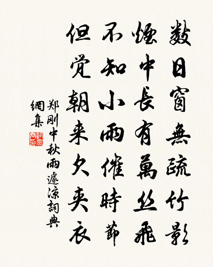 詩詞名句歷史字典書法欣賞書法字典國語詞典說文解字康熙字典古漢語字典標 題 作 者 詩 句 秋雨遽涼作者:鄭剛中 朝代:宋代秋雨遽涼原文數日窗無疏竹影,煙中長有萬絲飛。不知小雨催時節,但覺朝來欠袷衣。詩詞問答問:秋雨遽涼的作者是誰?答:鄭剛中問:秋雨遽涼寫於哪個朝代?答:宋代鄭剛中秋雨遽涼書法欣賞秋雨遽涼書法作品詩詞推薦汴河直進船李敬方〔唐代〕汴水通淮利最多,生人為害亦相和。東南四十三州地,取盡脂膏是此河。偈傾一百三十三首釋法薰〔宋代〕東頭貴買,西頭賤賣。田地穩密衲僧,不妨遊戲自在。中書遇雨錢起〔唐代〕濟旱惟宸慮,為霖即上台。雲銜七曜起,雨拂九門來。綸閣飛絲度,龍渠激霤回。色翻池上藻,香裛鼎前杯。湘燕峨嵋山(一作雪)鄭谷〔唐代〕萬仞白雲端,經春雪未殘。夏消江峽滿,晴照蜀樓寒。造境知僧熟,歸林認鶴難。會須朝闕去,只有畫圖看。仁座主自西山來求語釋紹曇〔宋代〕燈窗苦讀覺身癯,暫握筇枝訪野夫。愛竹勁思持玉節,看梅閒共數銀須。西山月冷歸招隱,南嶽風清欲步趨。靈利仙湖歌趙汝鐩〔宋代〕湖之綠兮如藍,湖之明兮如鏡。藍染晴空晚色鮮,鏡照天宇秋毫淨。乾坤兩間共開避,魚鳥四時自飛泳。炎州著腳見梁檢法書懷八絕句於廣文尉曹處次韻趙蕃〔宋代〕修眉畫就莫求工,自昔常聞妒入宮。不為無人芳自吐,也勝能白又能紅。句成銳〔宋代〕彩檻應無分,春風不借恩。贈清涼寺和長老蘇軾〔宋代〕代北初辭沒馬塵,江南來見臥雲人。問禪不契前三語,施佛空留丈六身。老去山林徒夢想,雨餘鐘鼓更清新。會須再次竹溪韻劉克莊〔宋代〕聊為湯餅會親賓,豈敢誇張墮張麟。汝若上扳曾大父,翁堪下見我先人。善和書即傳家寶,儒行篇方聘度珍。莫遣偈頌二十一首釋堅璧〔宋代〕寰中獨照萬機息,壺外分權六國清。四海晏然王化里,不須當道話昇平。平日遊園常策筇杖秋來發篋復出貂褥二物皆景司馬光〔宋代〕筇杖攜已久,貂褥展猶新。漸染岷山雪,拂除京國塵。危扶醉歸路,穩稱病來身。賴此齋中物,時如見故人。酬白太傅元稹〔唐代〕太空秋色涼,獨鳥下微陽。三徑池塘靜,六街車馬忙。漸能高酒戶,始是入詩狂。官冷且無事,追陪慎莫忘。盧龍塞行送韋掌記錢起〔唐代〕雨雪紛紛黑山外,行人共指盧龍塞。萬里飛沙咽鼓鼙,三軍殺氣凝旌旆。陳琳書記本翩翩,料敵張兵奪酒泉。聖主賀新郎 送別韓奕〔元代〕煙雨楓橋路。算年來、幾番送別,故人千里。君亦當初緣底事,不念平生儔侶。容易把、幽歡間阻。歲晚卻思來訪夏日登葉氏山亭朱翌〔宋代〕雲氣向曉不待族,風伯忽來吹使醨。溪南溪北半篙碧,荷葉荷花一段。旋扣柴荊行問道,少休松檻坐移時。淵明志余所寓僧舍蜂簡忽散去僅留其半僧雲分蜂時每張嵲〔宋代〕每逢晴日競飛翻,忽為群居負責言。甘美日充辭豢養,蟠藏歲久念騰騫。趨衙乍覺朋曹少,分邑疑因支庶繁。莫使搗衣杜甫〔唐代〕亦知戍不返,秋至拭清砧。已近苦寒月,況經長別心。寧辭搗熨倦,一寄塞垣深。用盡閨中力,君聽空外音。巫山高沈佺期〔唐代〕巫山高不極,合沓狀奇新。暗谷疑風雨,陰崖若鬼神。月明三峽曙,潮滿九江春。為問陽台客,應知入夢人。宿倍儡店感舊王柏〔宋代〕諸老皆仙去,遺蹤歲月深。主人今易姓,客子亦傷心。來燕傳新話,群蛙試鬧音。欲將興廢事,歷歷問雲岑。名句推薦勸我早還家,綠窗人似花。韋莊《菩薩蠻·紅樓別夜堪惆悵》 遙憐小兒女,未解憶長安。杜甫《月夜》 古人今人若流水,共看明月皆如此。李白《把酒問月·故人賈淳令予問之》 令必行,禁必止。韓非及後人《韓非子·飾邪》 有美一人,清揚婉兮。佚名《野有蔓草》 舜其大知也與!舜好問而好察邇言。隱惡而揚善。子思《中庸·第六章》 海棠枝上立多時,飛向小橋西畔去。宋徵輿《玉樓春·燕雕樑畫棟原無數》 棲霞山裂;沂水陷穴,廣數畝蒲松齡《地震》 雲橫秦嶺家何在?雪擁藍關馬不前。韓愈《左遷至藍關示侄孫湘》 王母歡闌瓊宴罷,仙人淚滿金盤側。文天祥《滿江紅·代王夫人作》
